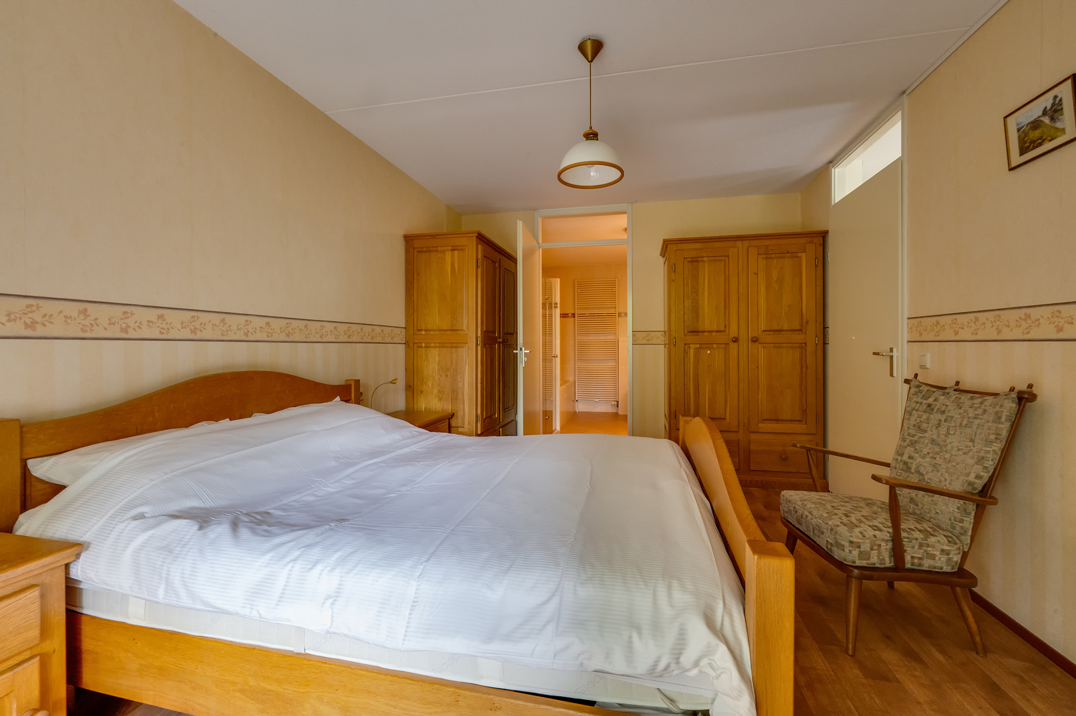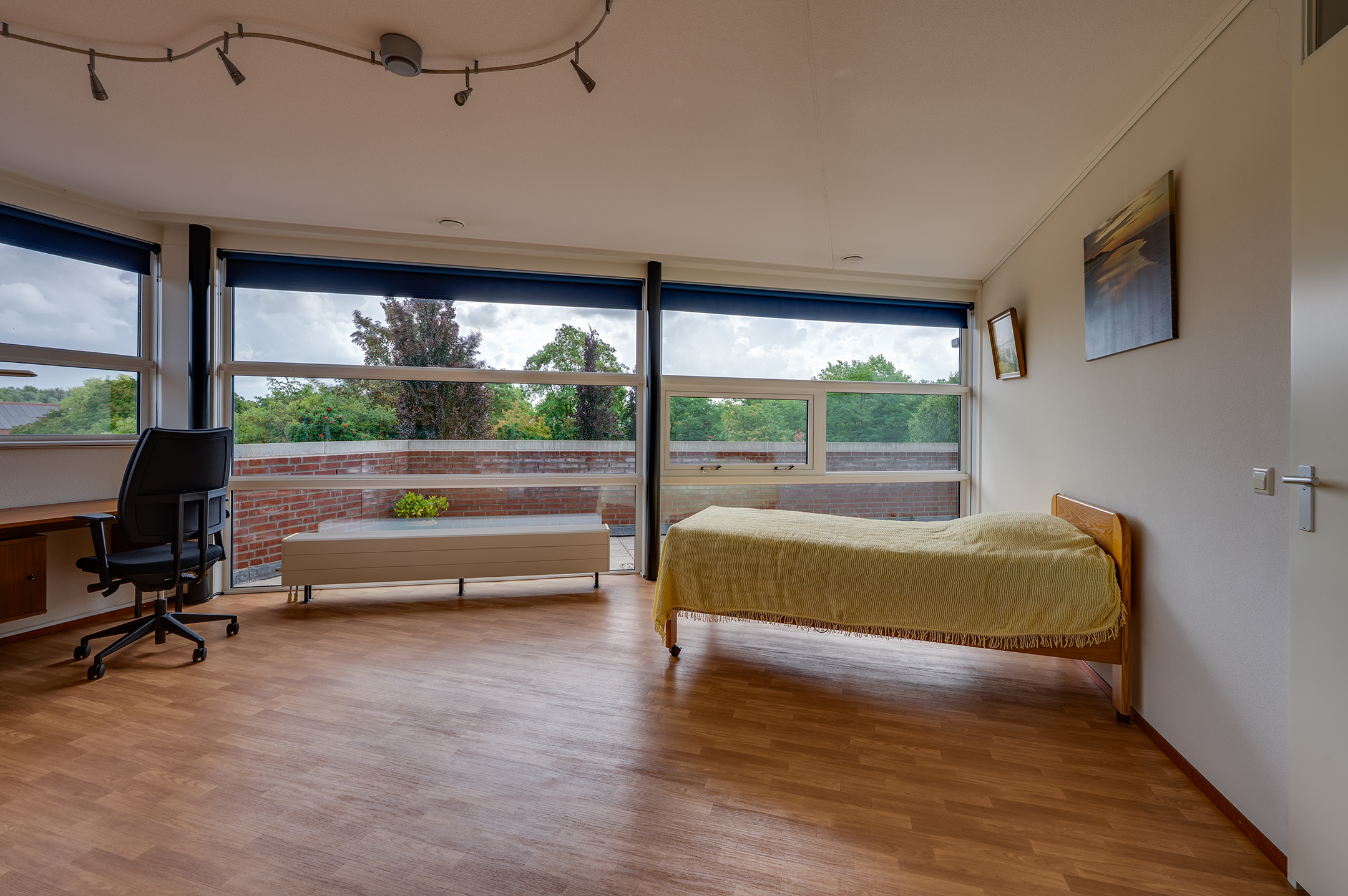 Het penthouse beschikt over drie volwaardige slaapkamers. De hoofdslaapkamer is royaal en heerlijk licht dankzij de vele ramen. De tweede slaapkamer heeft directe toegang tot zowel de badkamer als het balkon, wat zorgt voor extra comfort. De derde slaapkamer is voorzien van een ingebouwde kastenwand en is perfect als logeer-, werk- of hobbykamer.