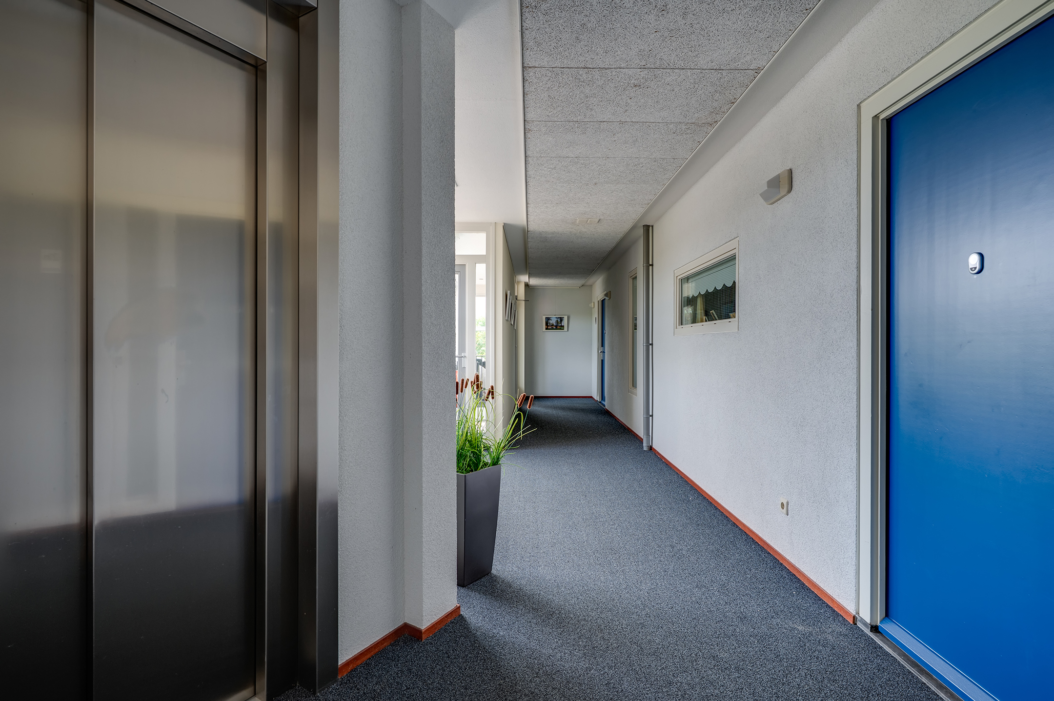 Via de lift bereik je de derde verdieping, waar je direct uitkomt bij de entree van het appartement. De royale hal geeft toegang tot alle vertrekken en zet meteen de toon: licht, ruim en verzorgd.