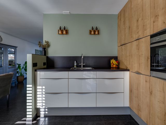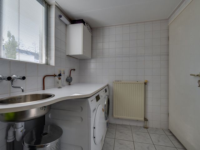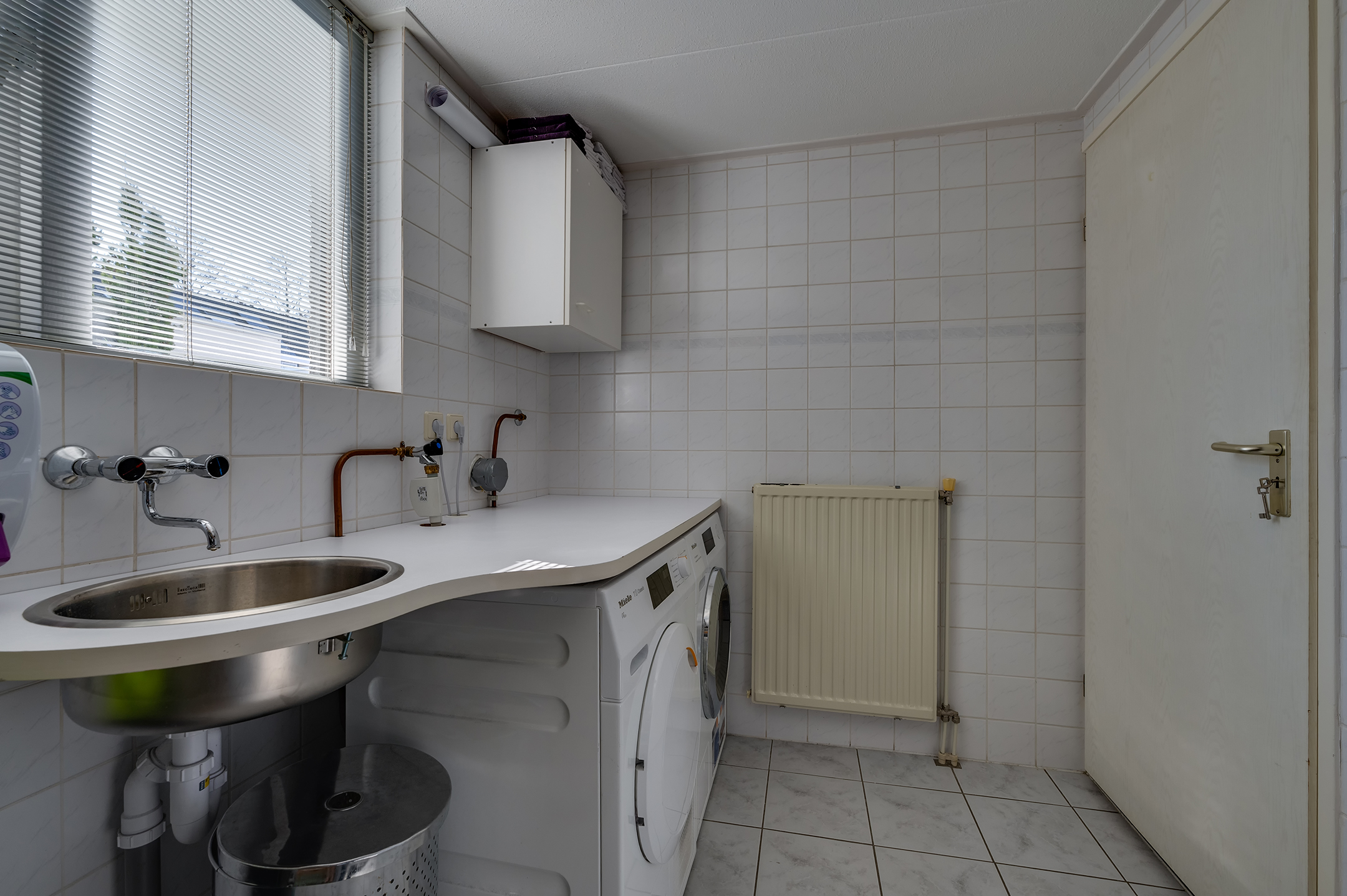 In de praktische bijkeuken bevinden zich de aansluitingen voor het witgoed. Ook is hier een aanrechtblokje aanwezig.
