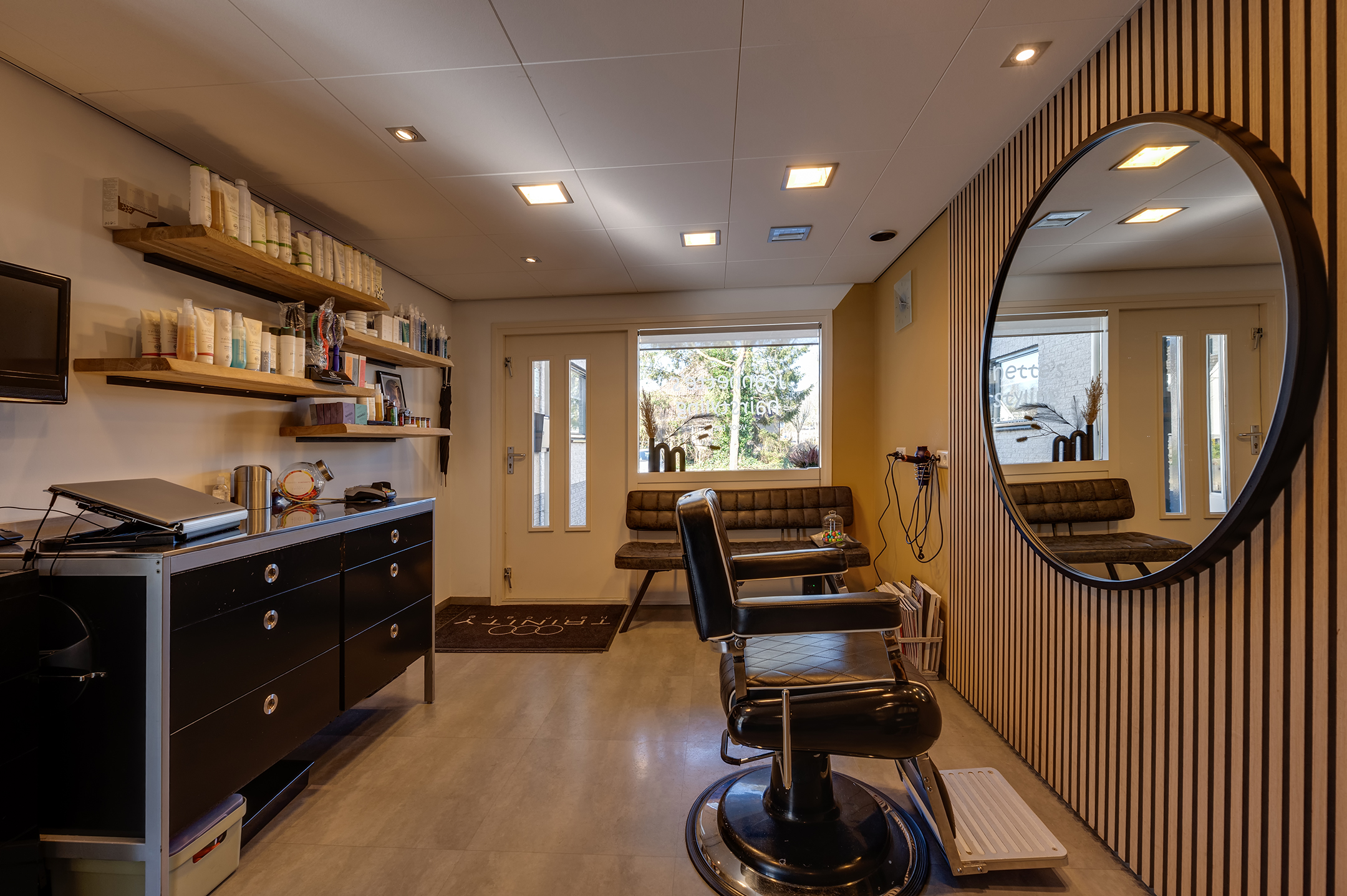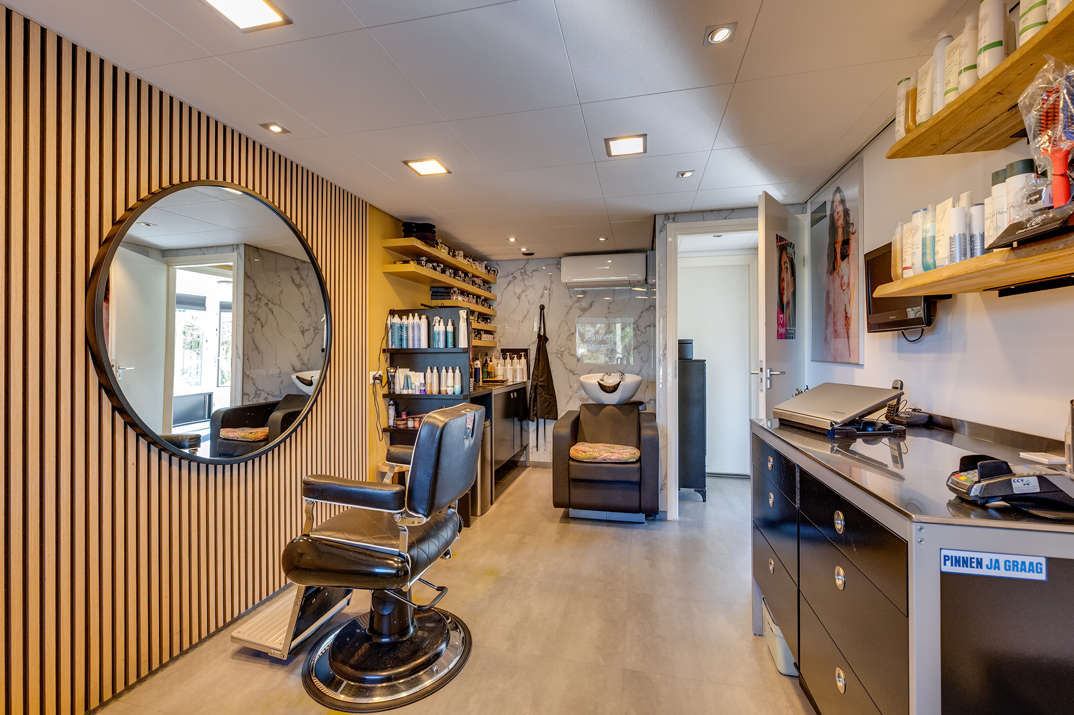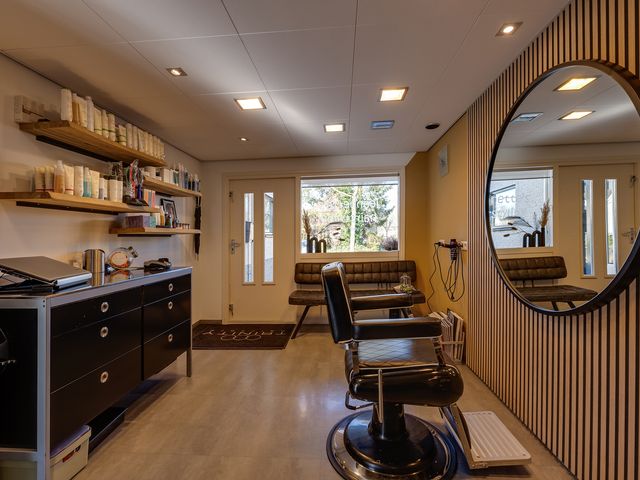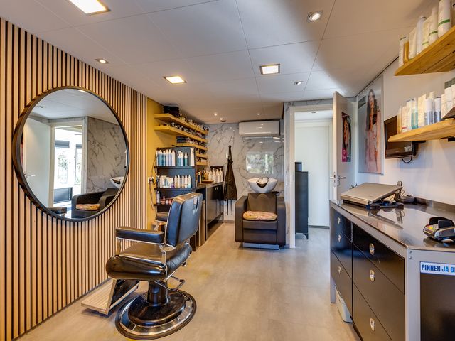 De voormalige garage is door de huidige eigenaren in gebruik als kapsalon, maar kan ook gebruikt worden als extra slaapkamer of kantoorruimte. Hier is airconditioning aanwezig.