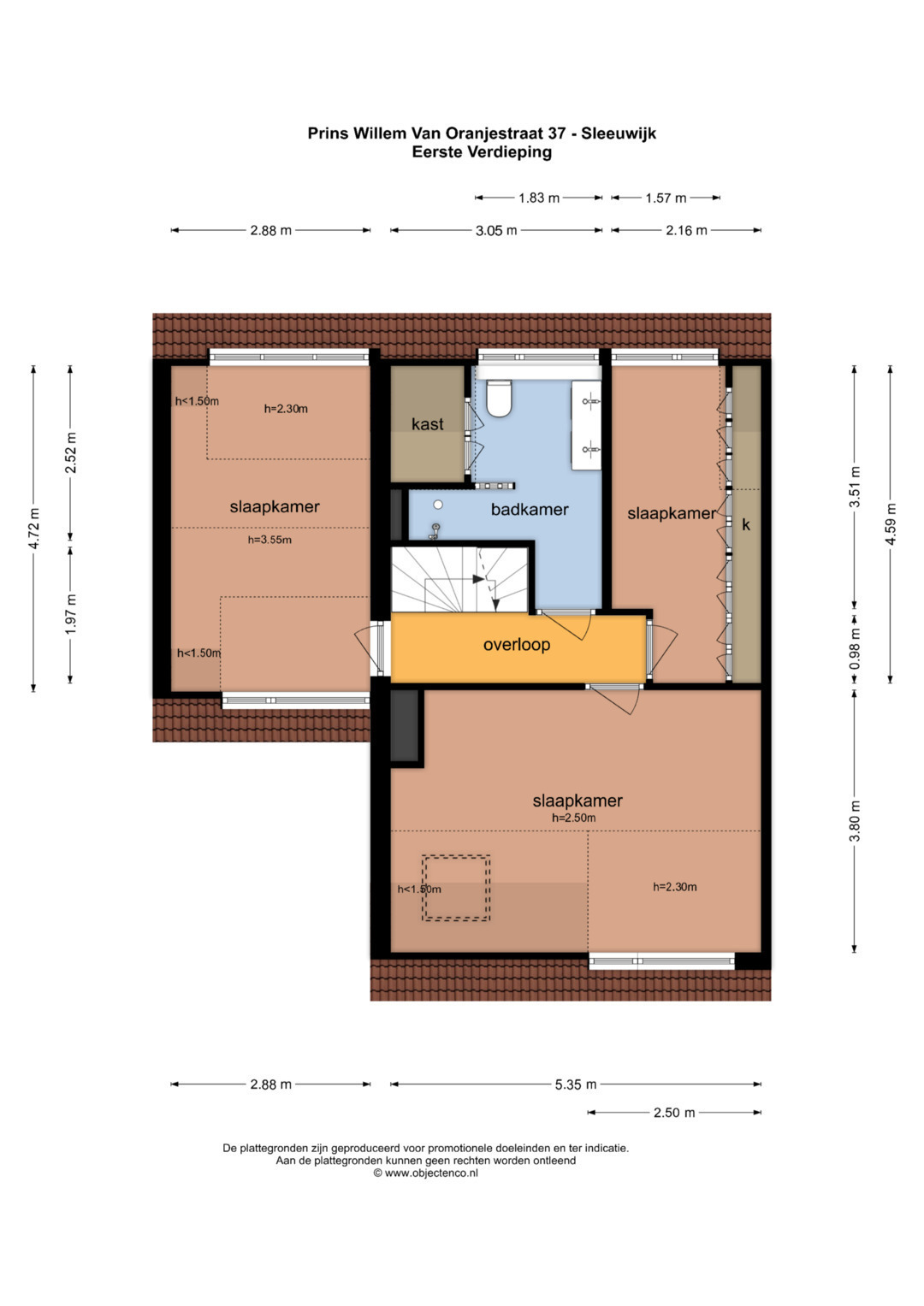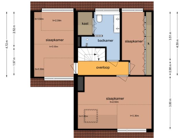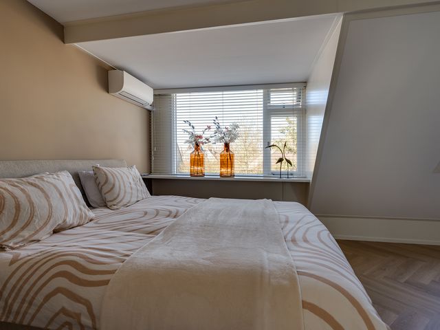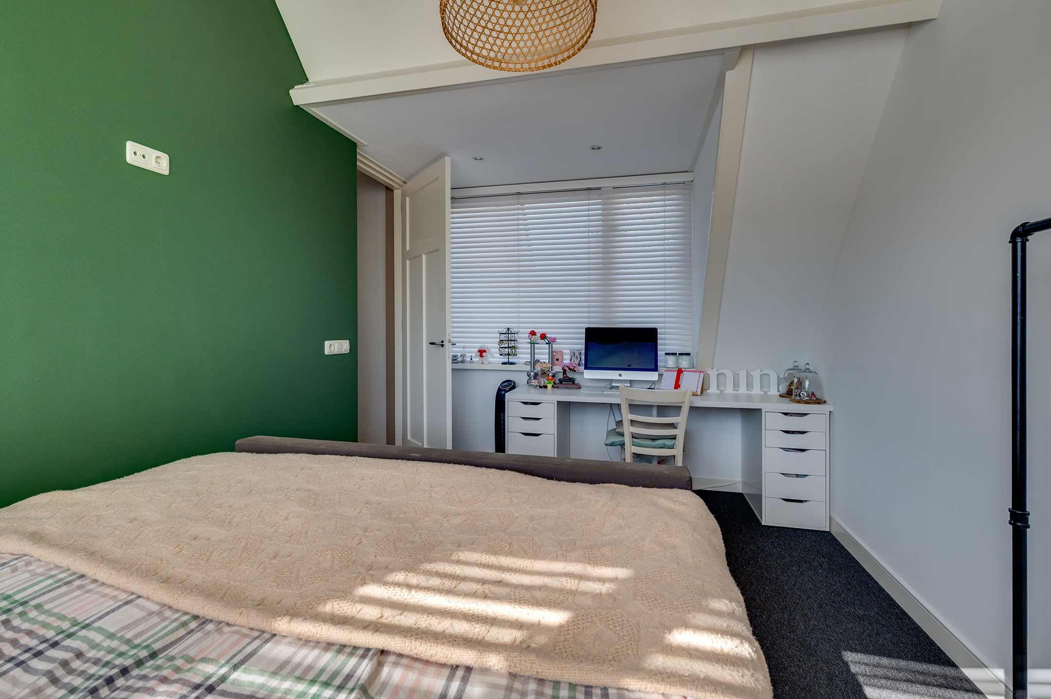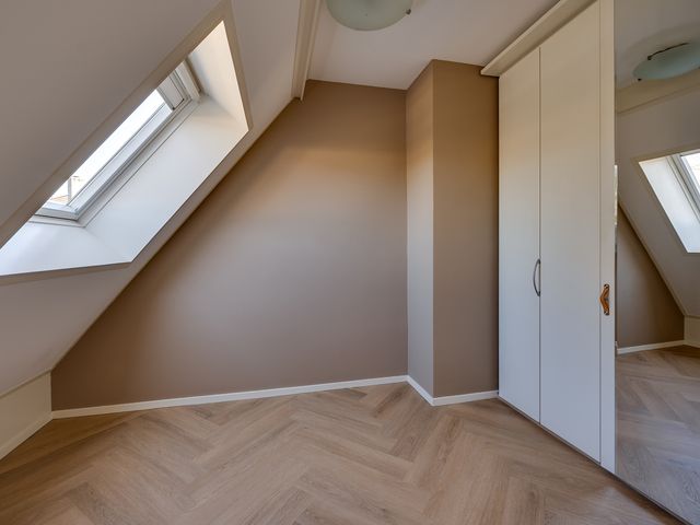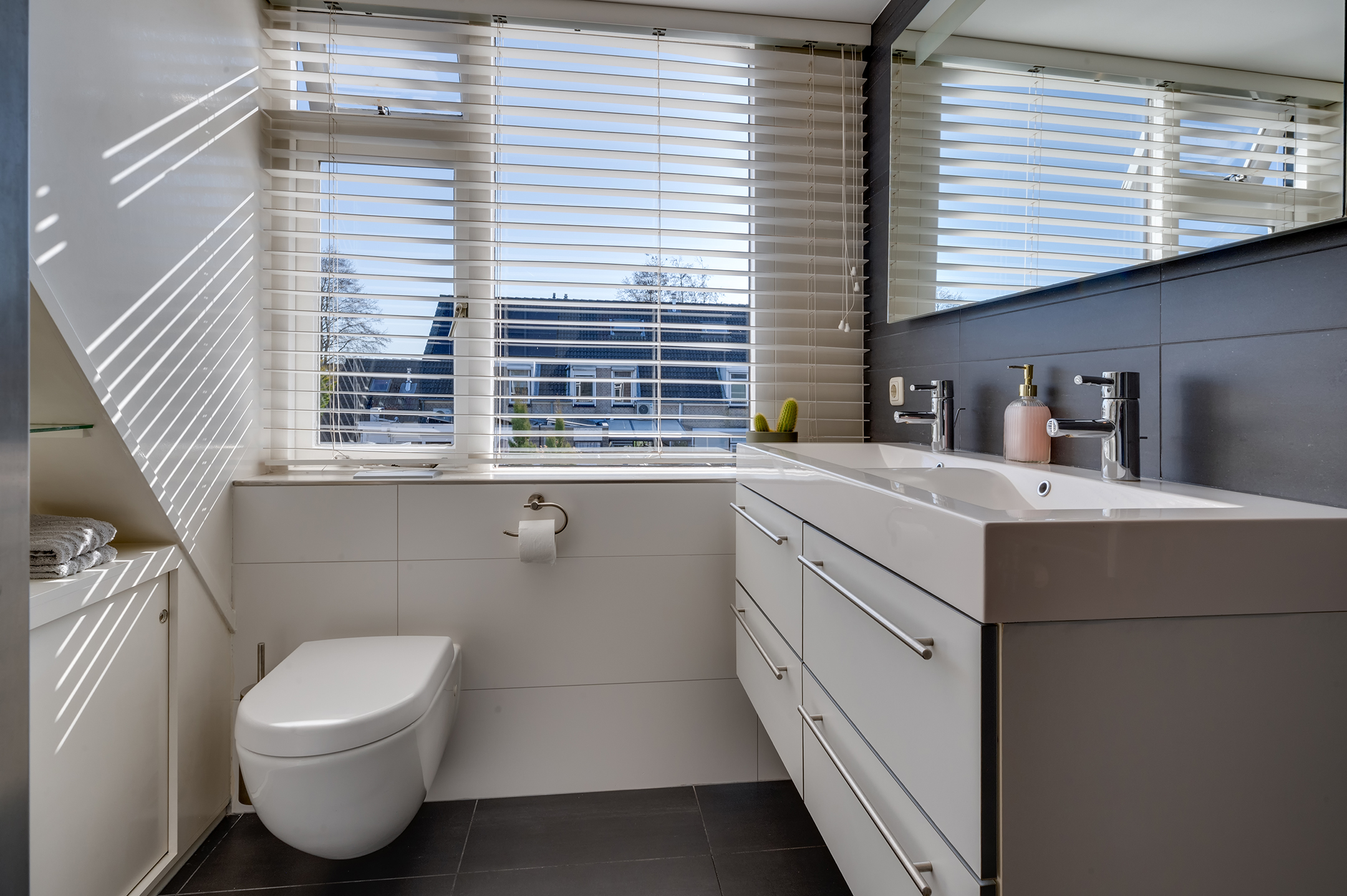 Op de verdieping treft u de overloop, drie slaapkamers en de badkamer. De ouderslaapkamer ligt aan de voorzijde van de woning en is voorzien van airconditioning, een Velux dakraam en een dakkapel met rolluik. Slaapkamer twee is gesitueerd boven de garage en is voorzien van een dakkapel aan de voorzijde én aan de achterzijde. De kleinste slaapkamer is momenteel ingericht als kleedkamer, met een grote inbouw kastenwand en met dakkapel met rolluik. De luxe badkamer is voorzien van een inloopdouche, dubbele wastafelmeubel, toilet en handdoekradiator.
