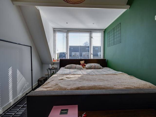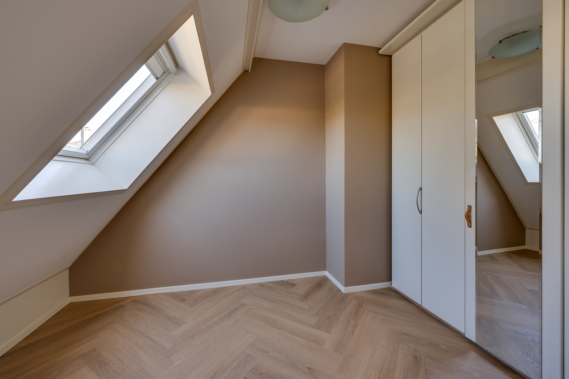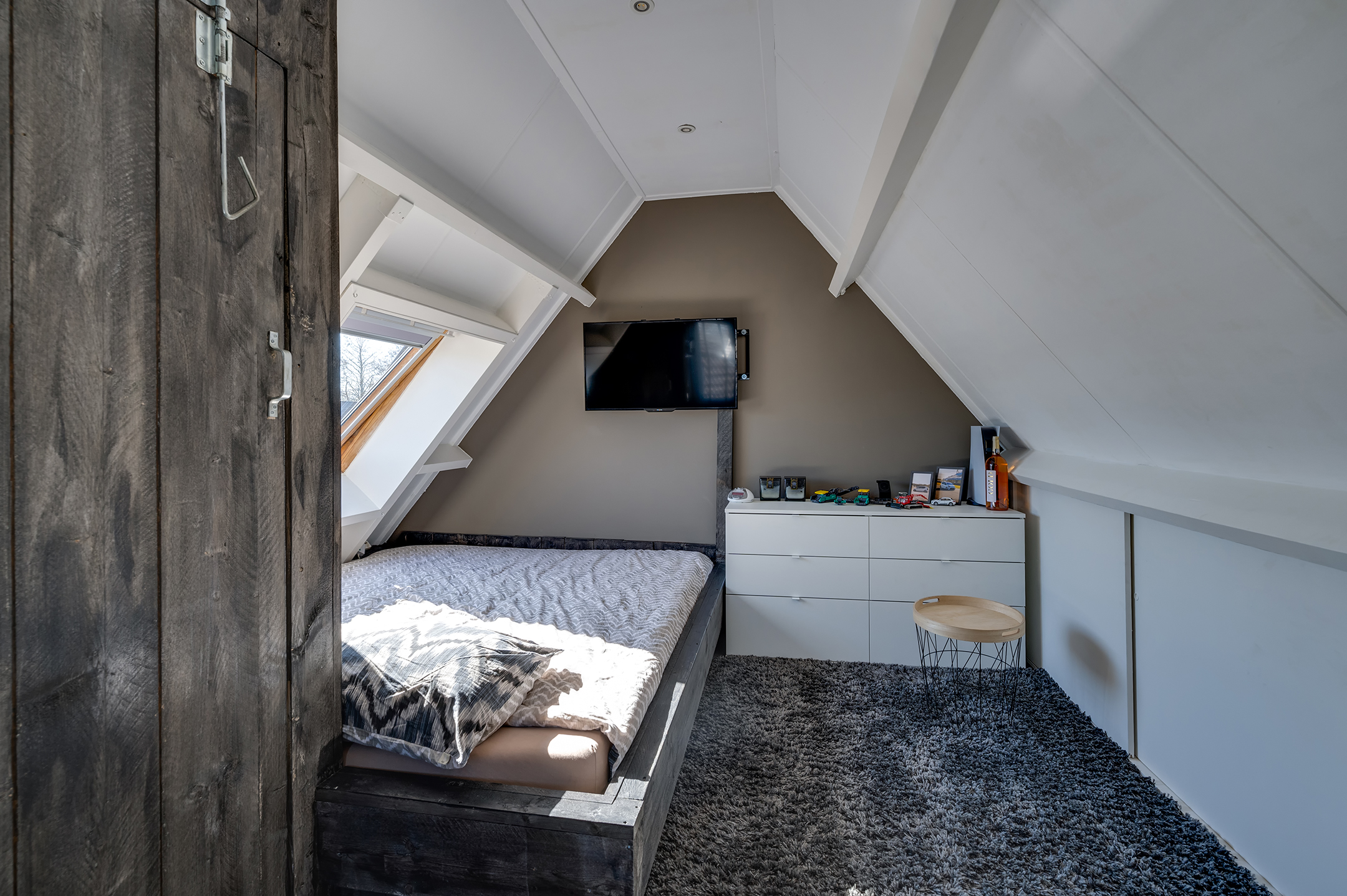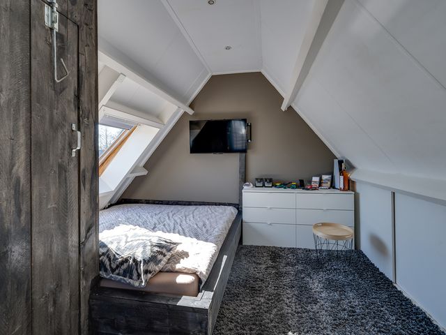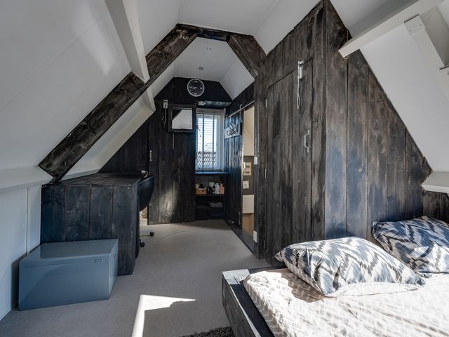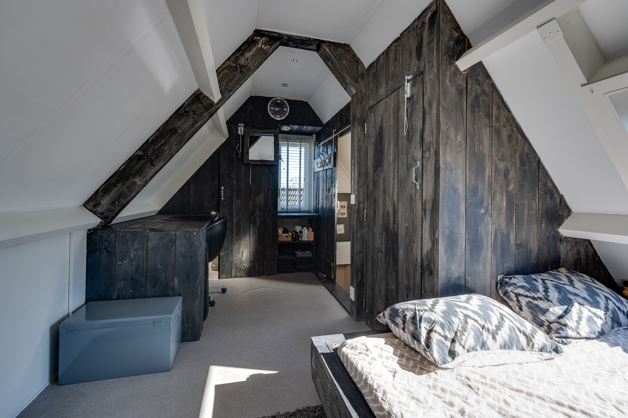 Op de bovenste verdieping is een ruime 4e slaapkamer gesitueerd, met een Velux dakraam. Tevens is hier de opstelplaats voor de CV-installatie Remeha Quinta HR uit 2007.