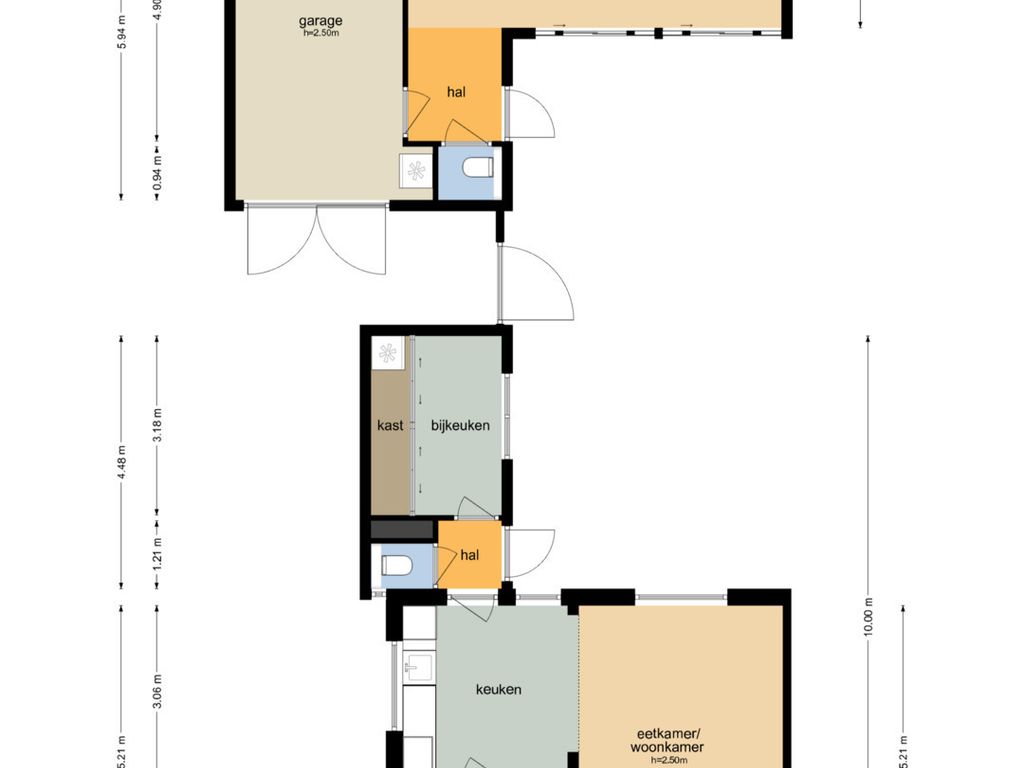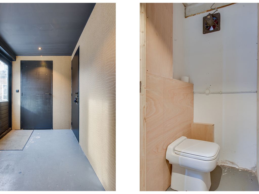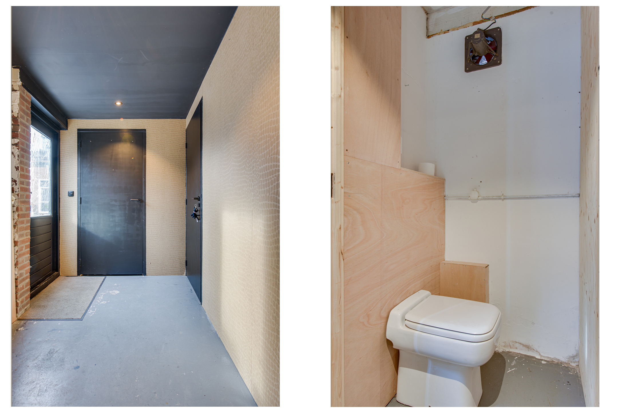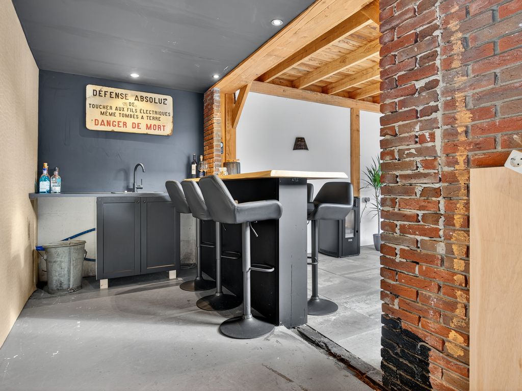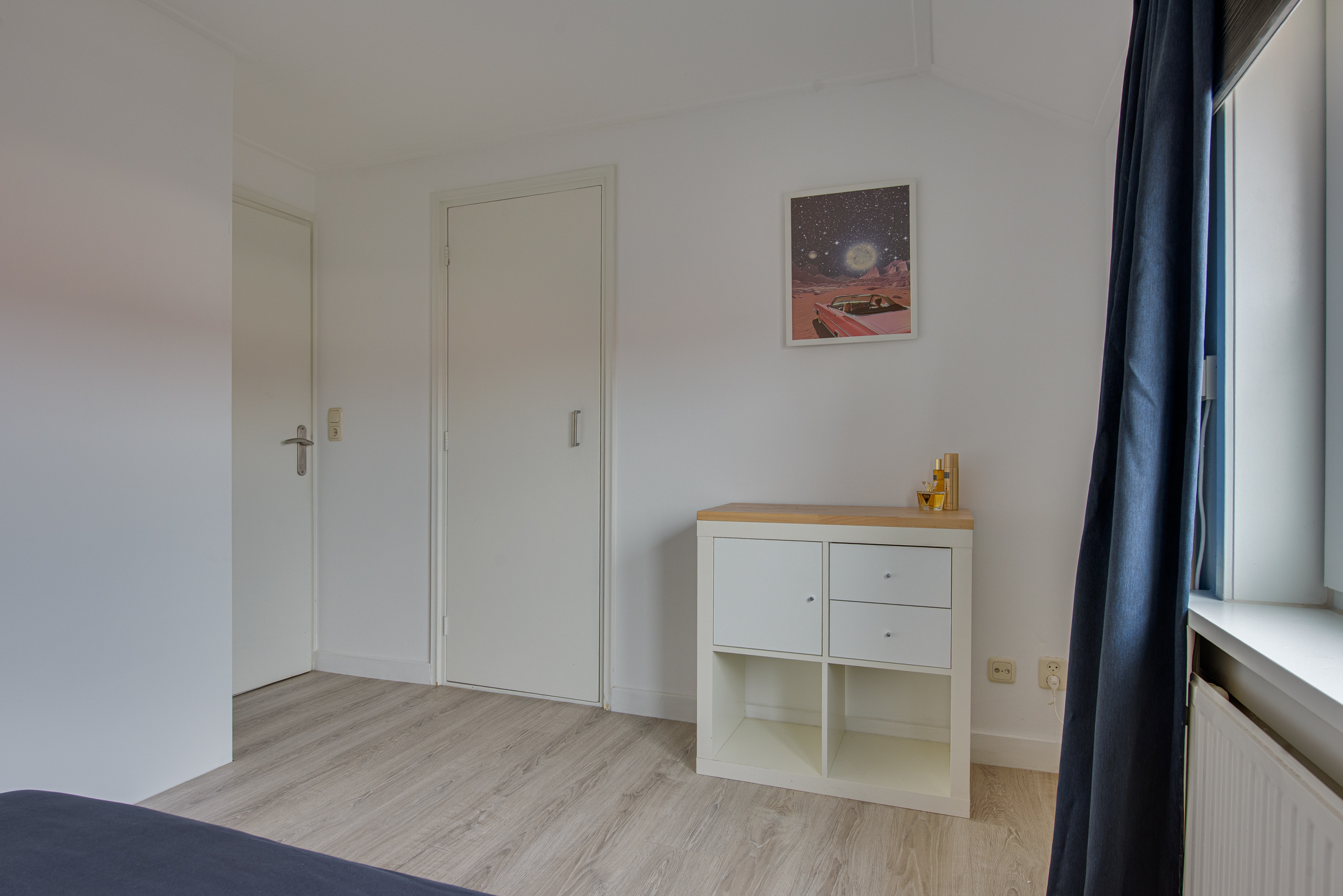 De open keuken is praktisch én stijlvol ingericht met een inductiekookplaat, afzuigkap, spoelbak, vaatwasser en koelkast. Vanuit de keuken bereik je de achterhal met een apart toilet en toegang tot de tuin. Aangrenzend bevindt zich de bijkeuken met handige extra bergruimte en een plek voor de wasmachine, netjes weggewerkt achter schuifdeuren.