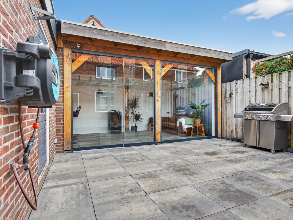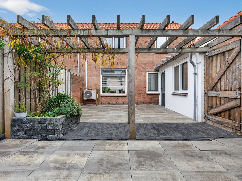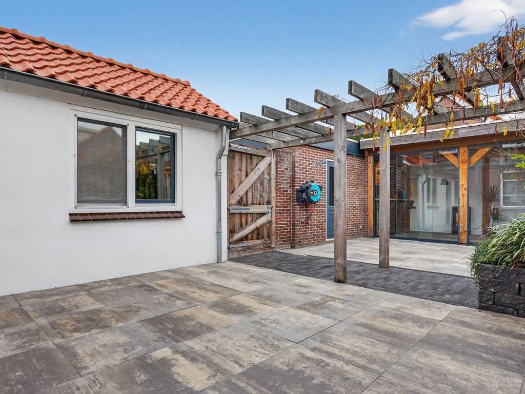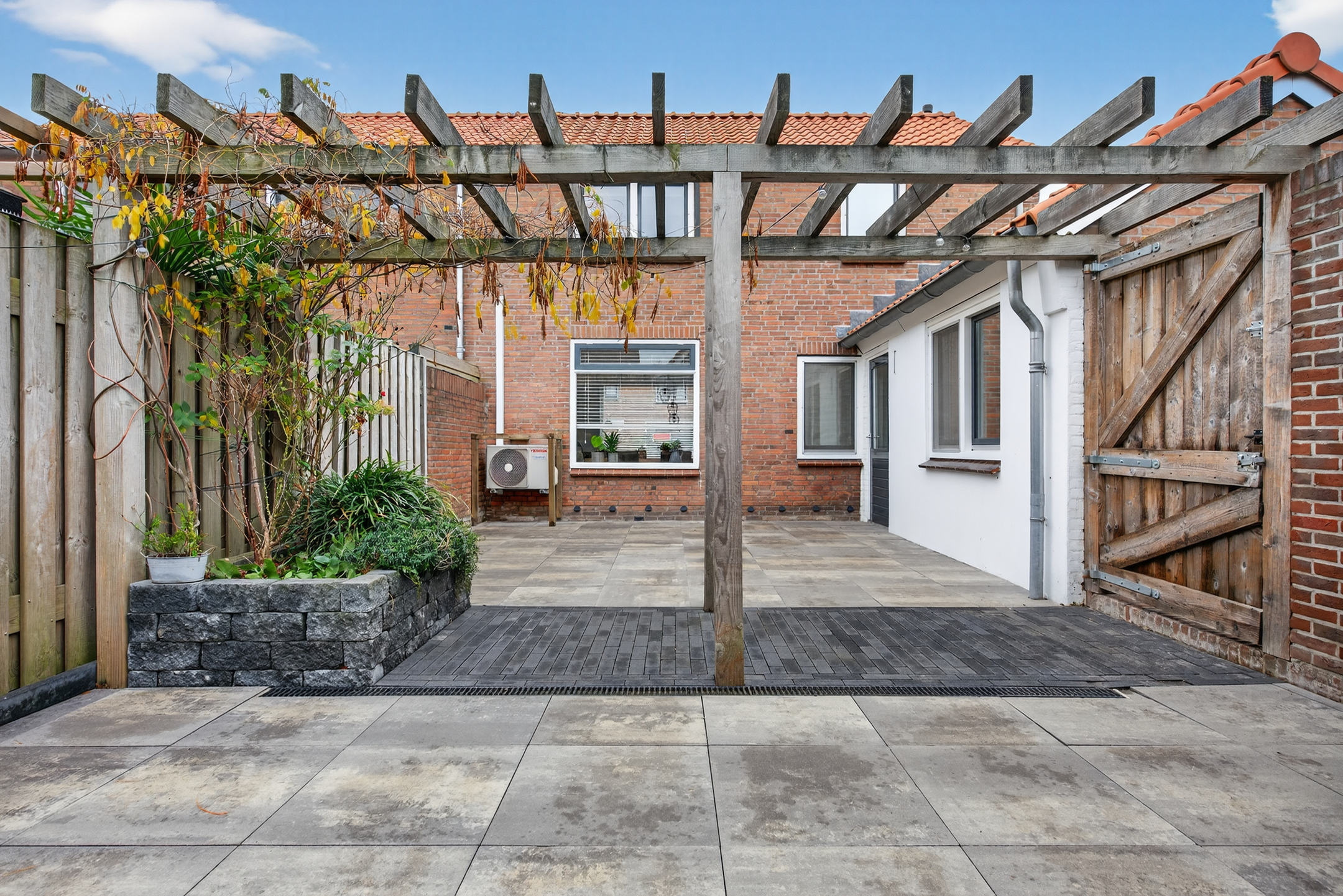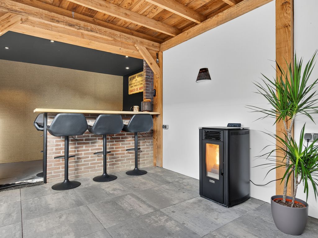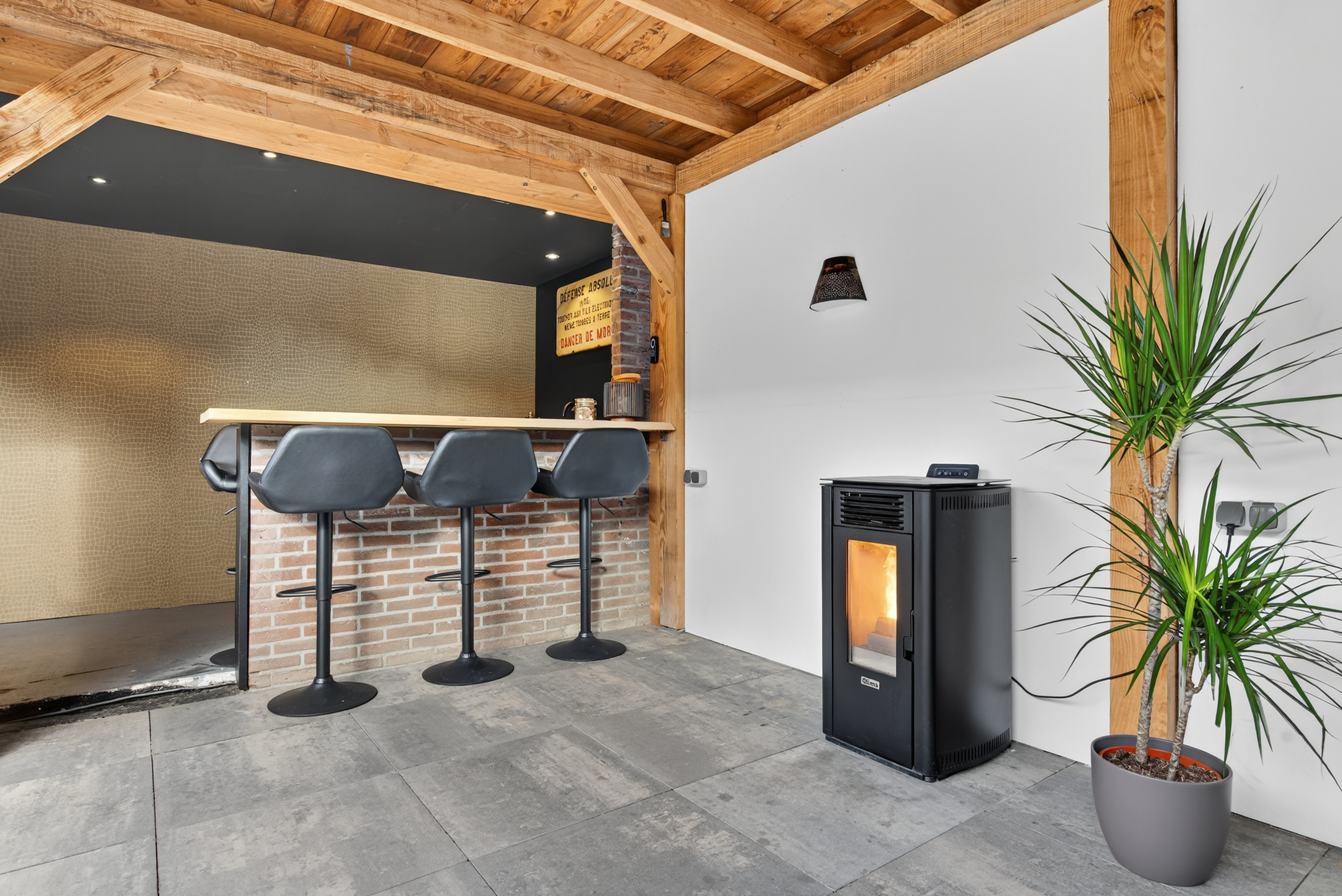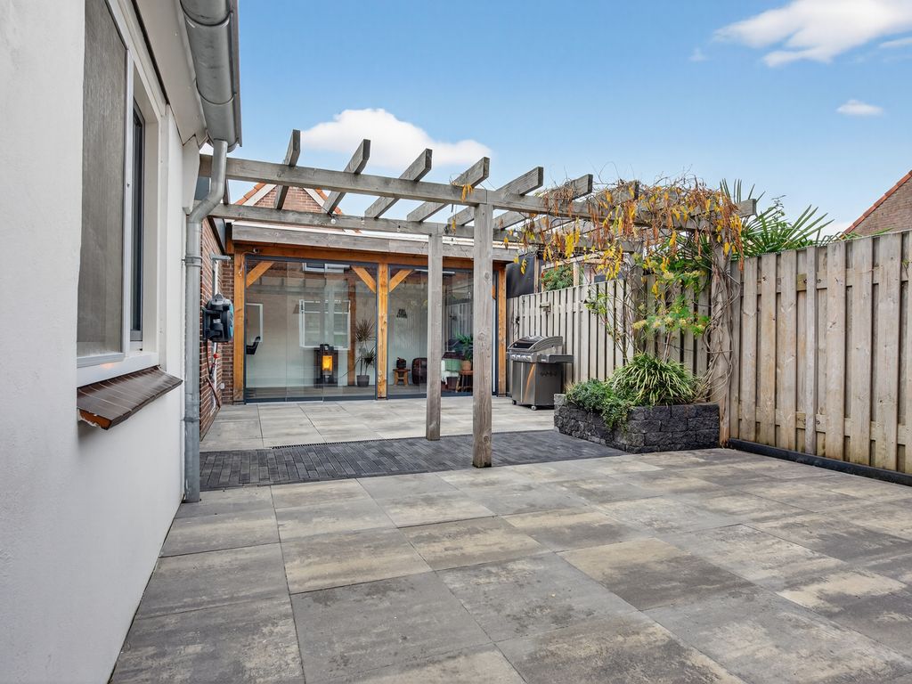 De ruime achtertuin is een heerlijke plek om te ontspannen of gezellig samen te zijn. Achterin de tuin vind je een sfeervolle veranda met glazen schuifpui – perfect om open te zetten op warme zomerdagen of juist dicht te houden tijdens koelere avonden. Hier is bovendien een toilet, bar en zithoek aanwezig: ideaal voor gezellige borrels of een ontspannen avond.