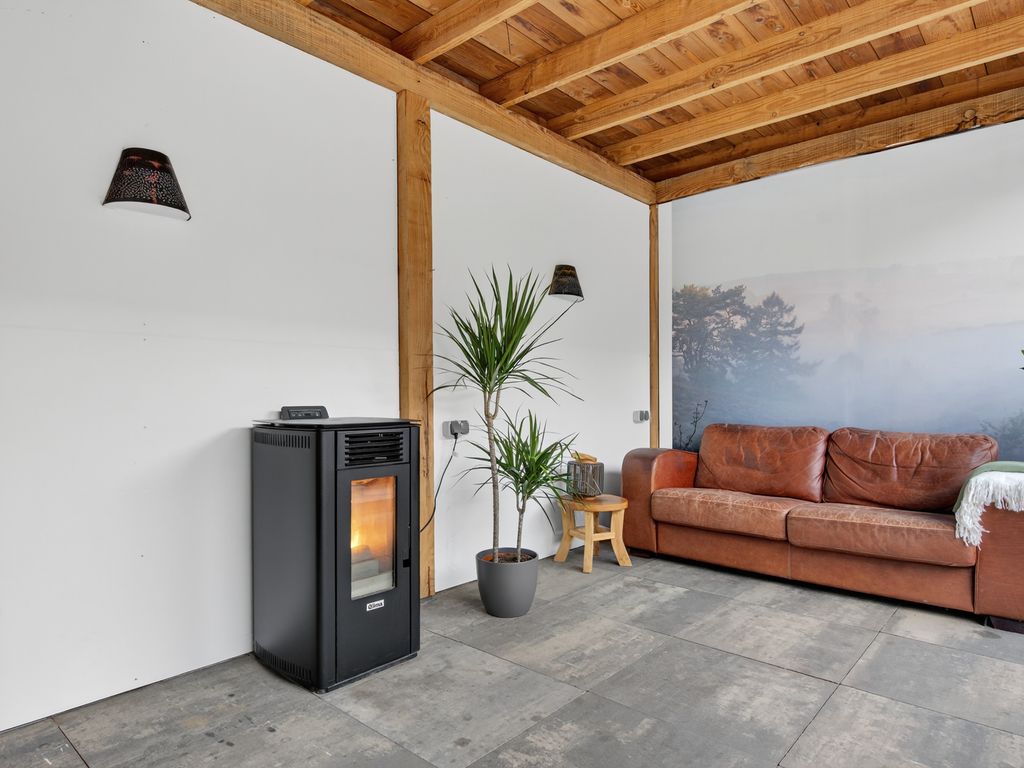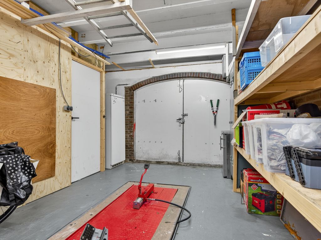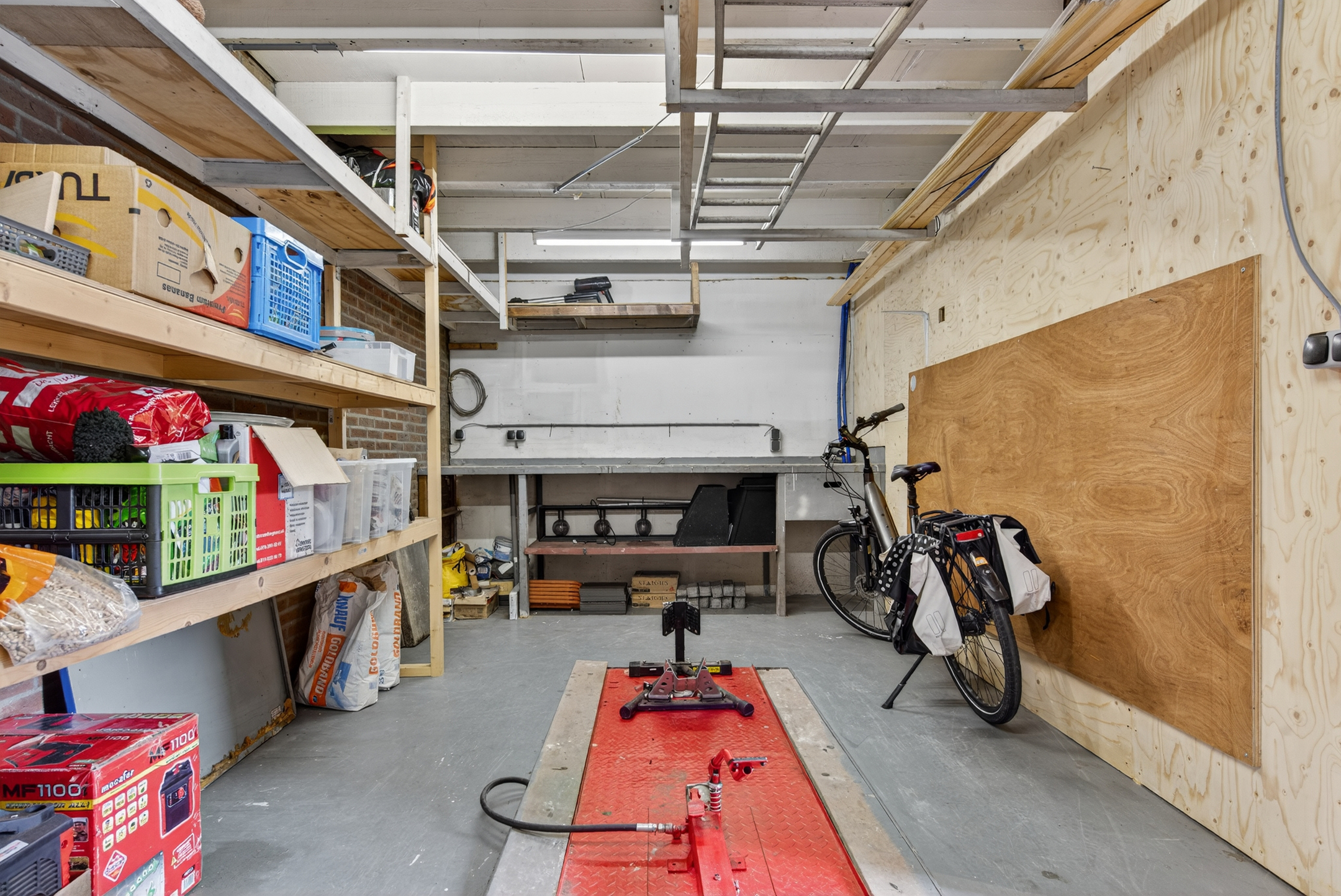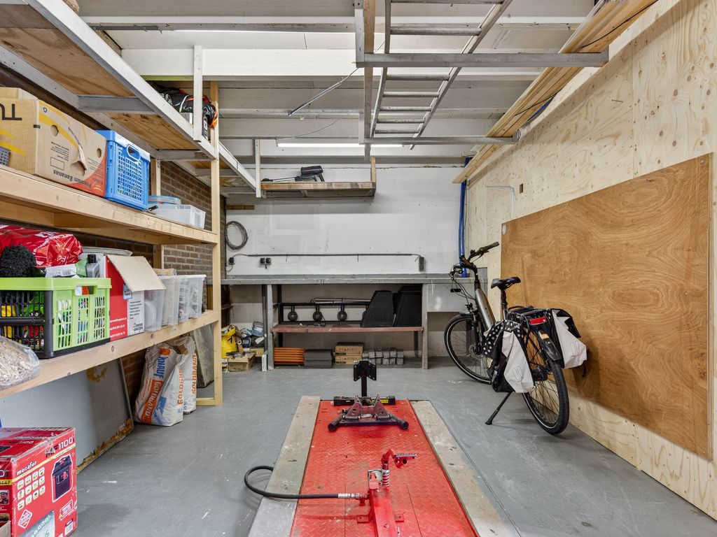 De vrijstaande stenen garage biedt volop ruimte voor het stallen van fietsen of tuinspullen. Daarnaast heeft de garage een hydraulische motor brug, perfect voor wie van sleutelen houdt.