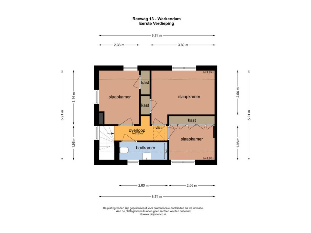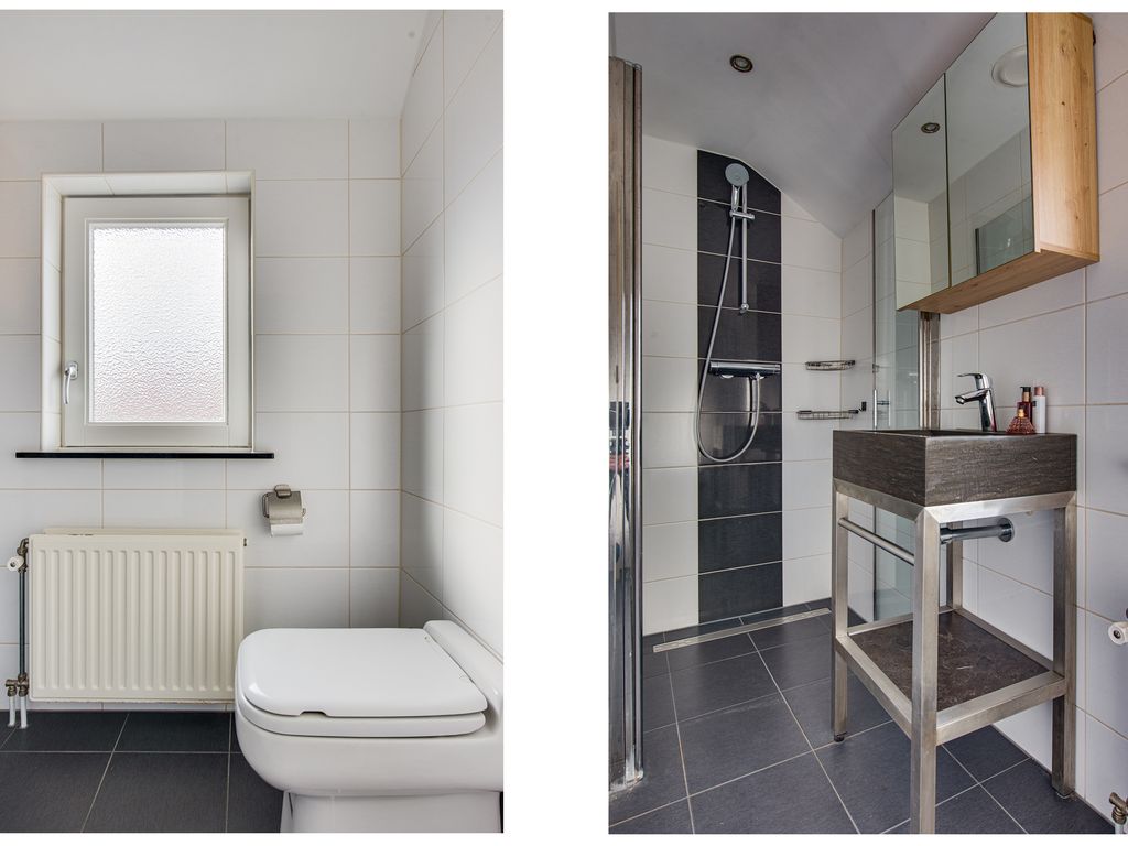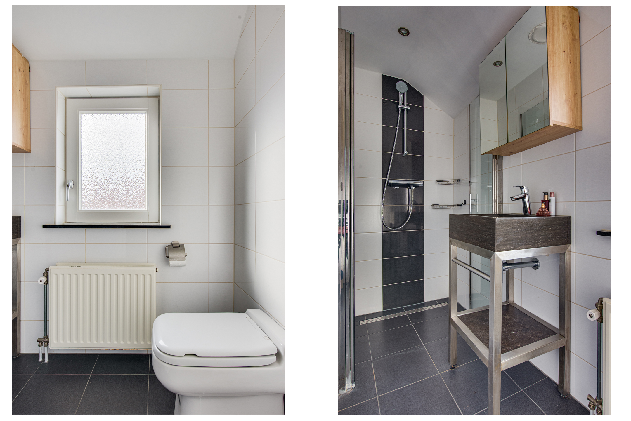 Op de eerste verdieping vind je drie slaapkamers, waarvan twee met praktische inbouwkasten. De badkamer is voorzien van een toilet, douche en wastafelmeubel. Via de overloop heb je toegang tot de vlizozolder, ideaal voor extra opbergruimte.