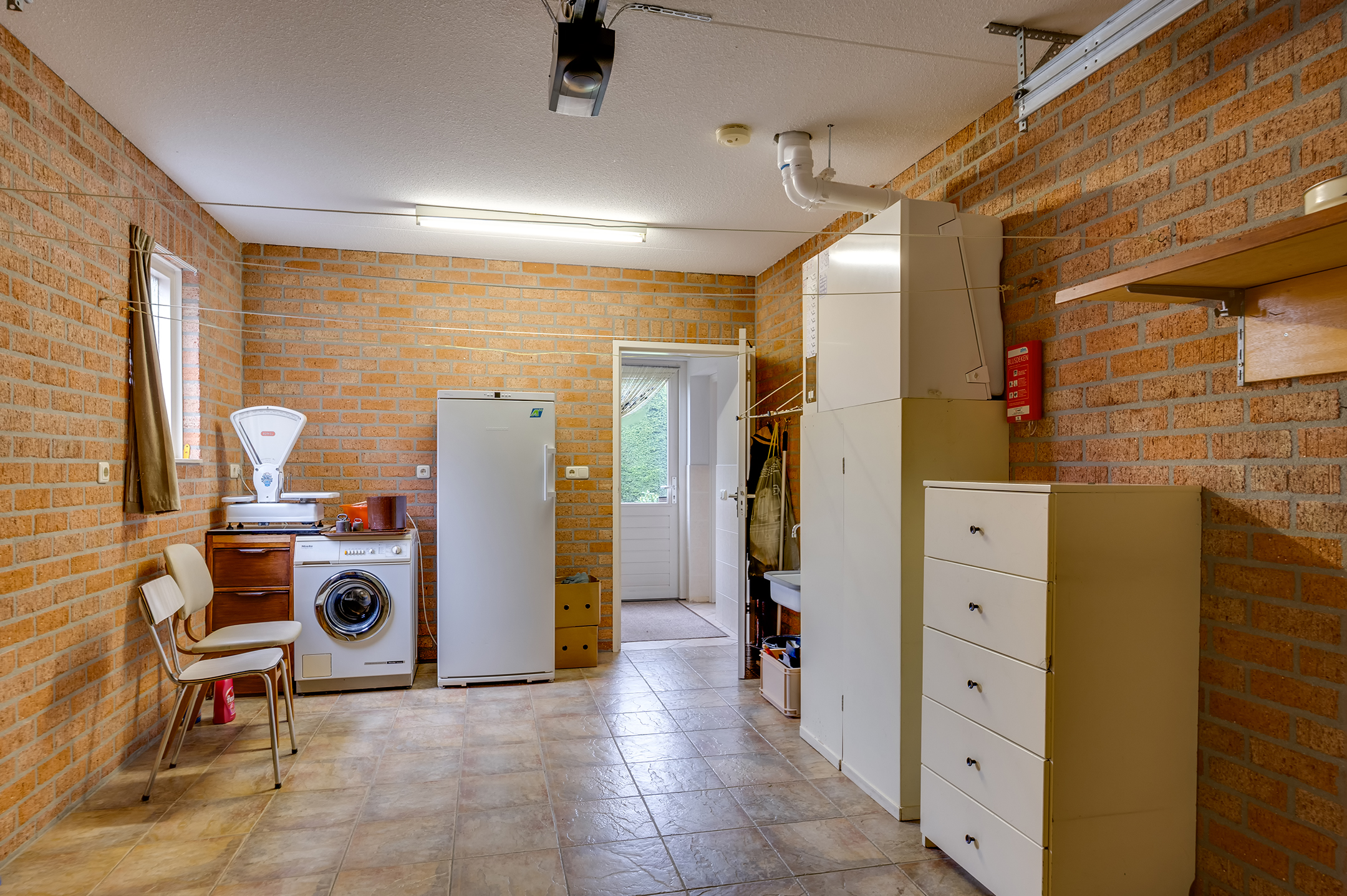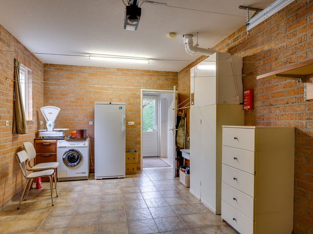 De aangebouwde garage is bereikbaar via de bijkeuken én vanaf buiten via een elektrische roldeur. De garage is volledig betegeld. Verder is deze voorzien van elektra en zijn hier de aansluitingen voor de wasmachine. Voor de garage ligt een oprit, zodat je altijd voldoende parkeergelegenheid hebt.