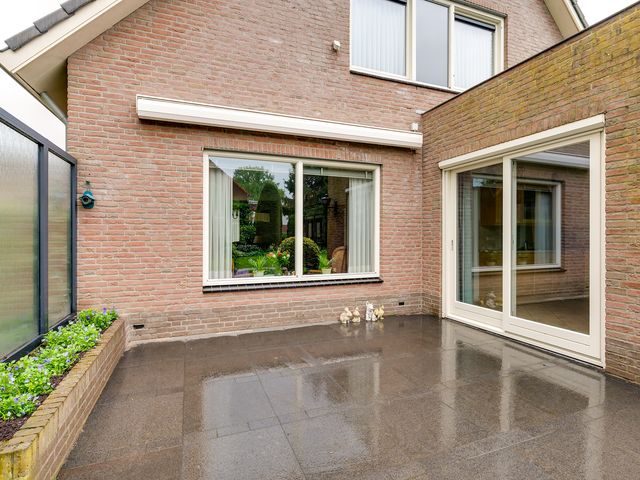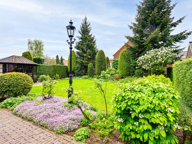 De tuin rondom de woning biedt veel privacy en is verzorgd aangelegd met een terras, gazon en beplante borders. Aan beide zijden van de woning is een toegang tot de achtertuin: via een poort en via een tuinpad. In de tuin staat een charmant houten tuinhuisje – ideaal om in het voor- en najaar lekker in te zitten en om in de winter je tuinmeubilair en gereedschap op te bergen.