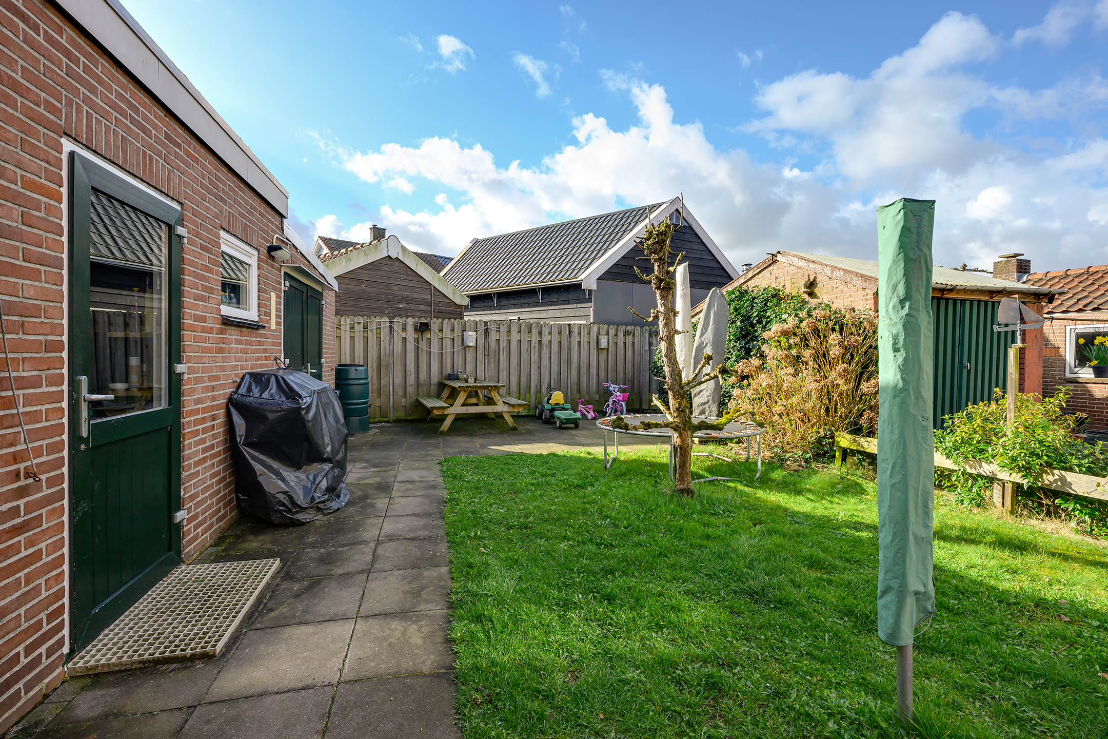 De achtertuin is absoluut een van de grote pluspunten: zonnig gelegen op het zuiden, netjes aangelegd met een terras en gazon, en heerlijk ruim. Of je nu wilt tuinieren, spelen of gewoon ontspannen – hier kan het allemaal.