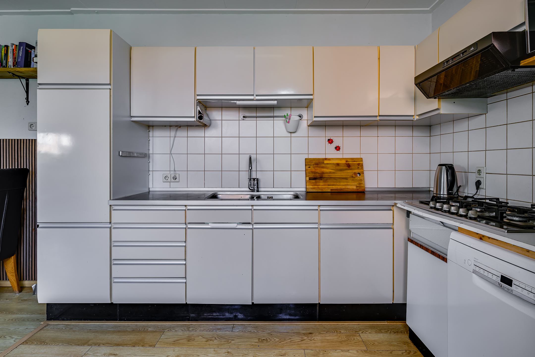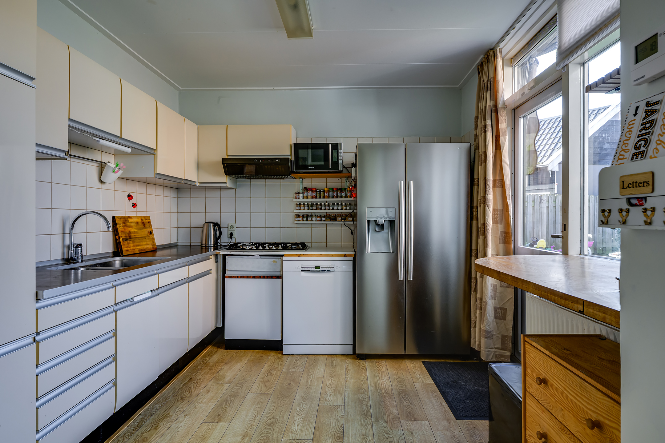De keuken is geplaatst in de aanbouw en biedt een prettige verbinding met de tuin. Hier heb je alle mogelijkheden om jouw ideale keuken te realiseren en er echt jouw plek van te maken.