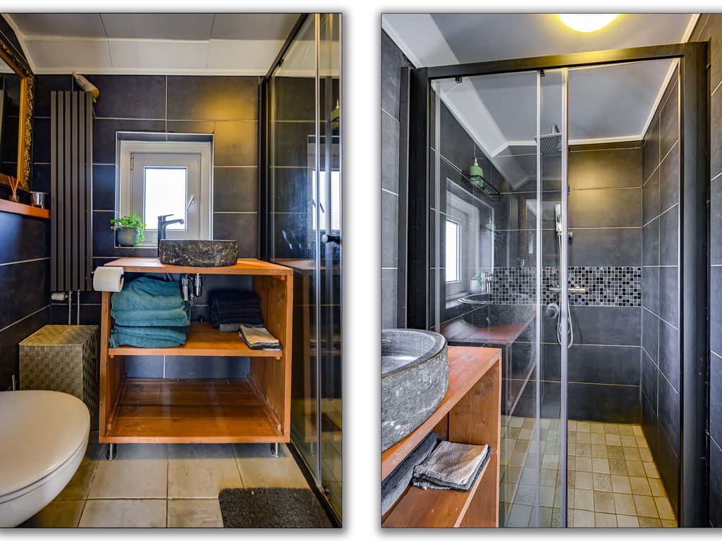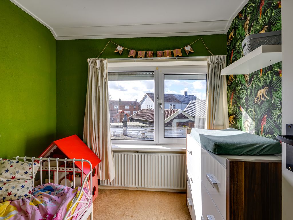 Op de eerste verdieping vind je drie fijne slaapkamers, perfect voor een gezin, thuiswerkplek of hobbyruimte. De slaapkamers aan de achterzijde zijn voorzien van rolluiken voor extra comfort. De badkamer is praktisch en compleet ingericht met een wastafelmeubel, toilet en een ruime inloopdouche.