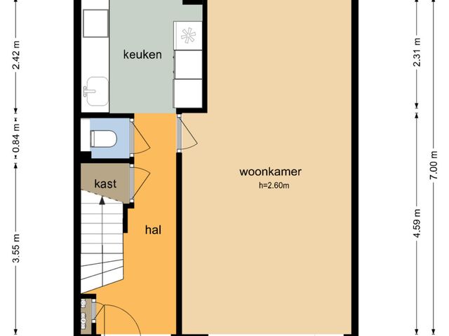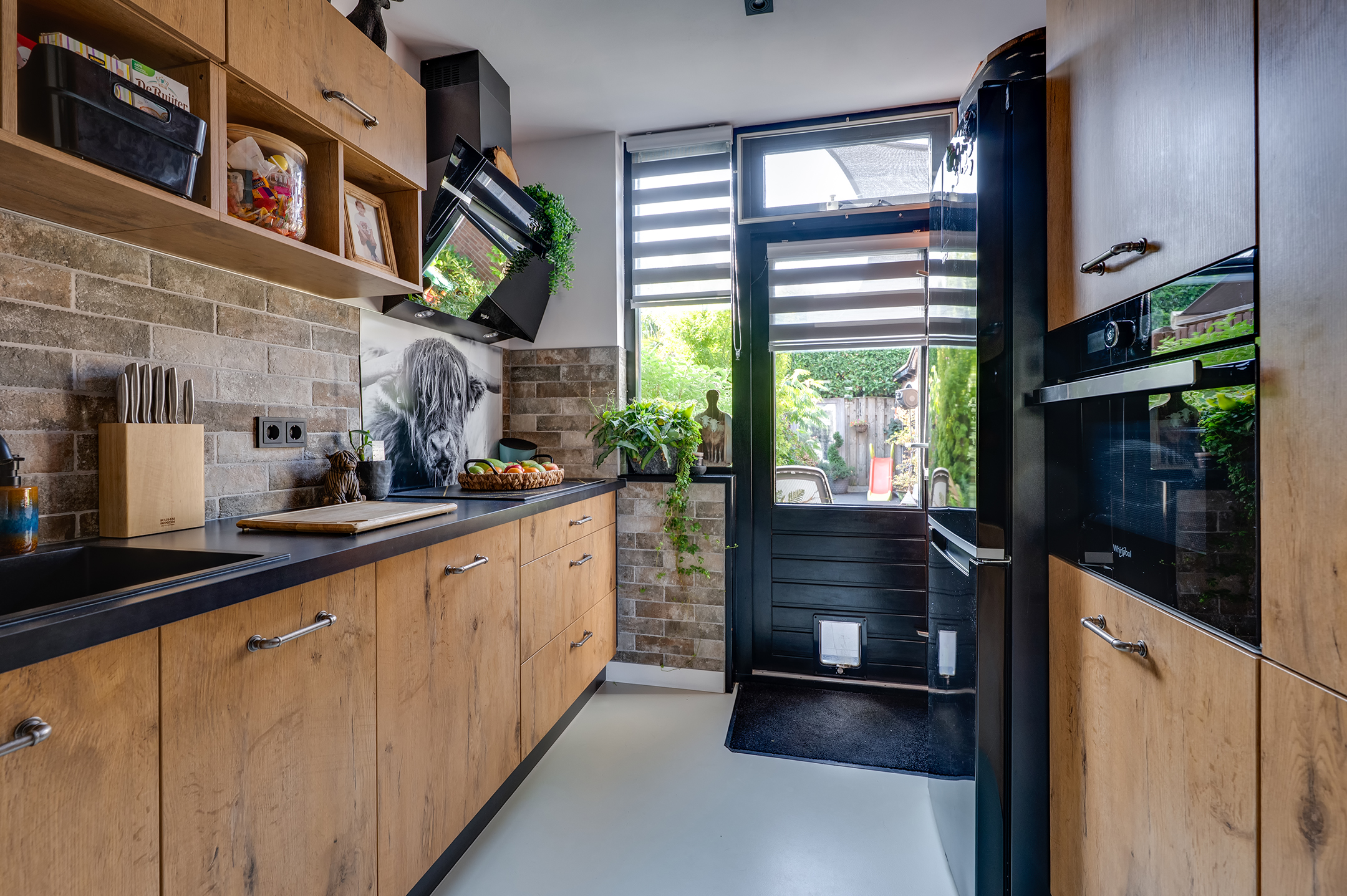 Je komt binnen via de hal, waar je meteen een handige bergkast en een toilet vindt. Vanuit hier loop je door naar de lichte woonkamer en de keuken. Dankzij de grote ramen aan de voor- en achterzijde is er volop daglicht in de woonkamer. De keuken is modern en compleet uitgerust met een 4-pits inductiekookplaat, combi-oven, vaatwasser, spoelbak en een recirculatie afzuigkap. Via de keuken heb je directe toegang tot de zonnige achtertuin; perfect voor een kop koffie in de ochtend of een gezellige barbecue in de zomer.