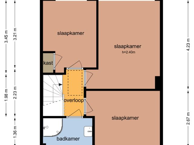 Op de verdieping vind je drie comfortabele slaapkamers; ideaal voor slapen, werken of spelen. De badkamer is netjes en voorzien van een douche, een wastafelmeubel en een handdoekradiator.