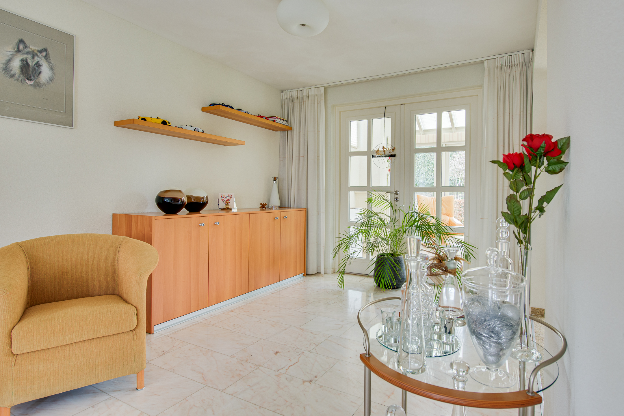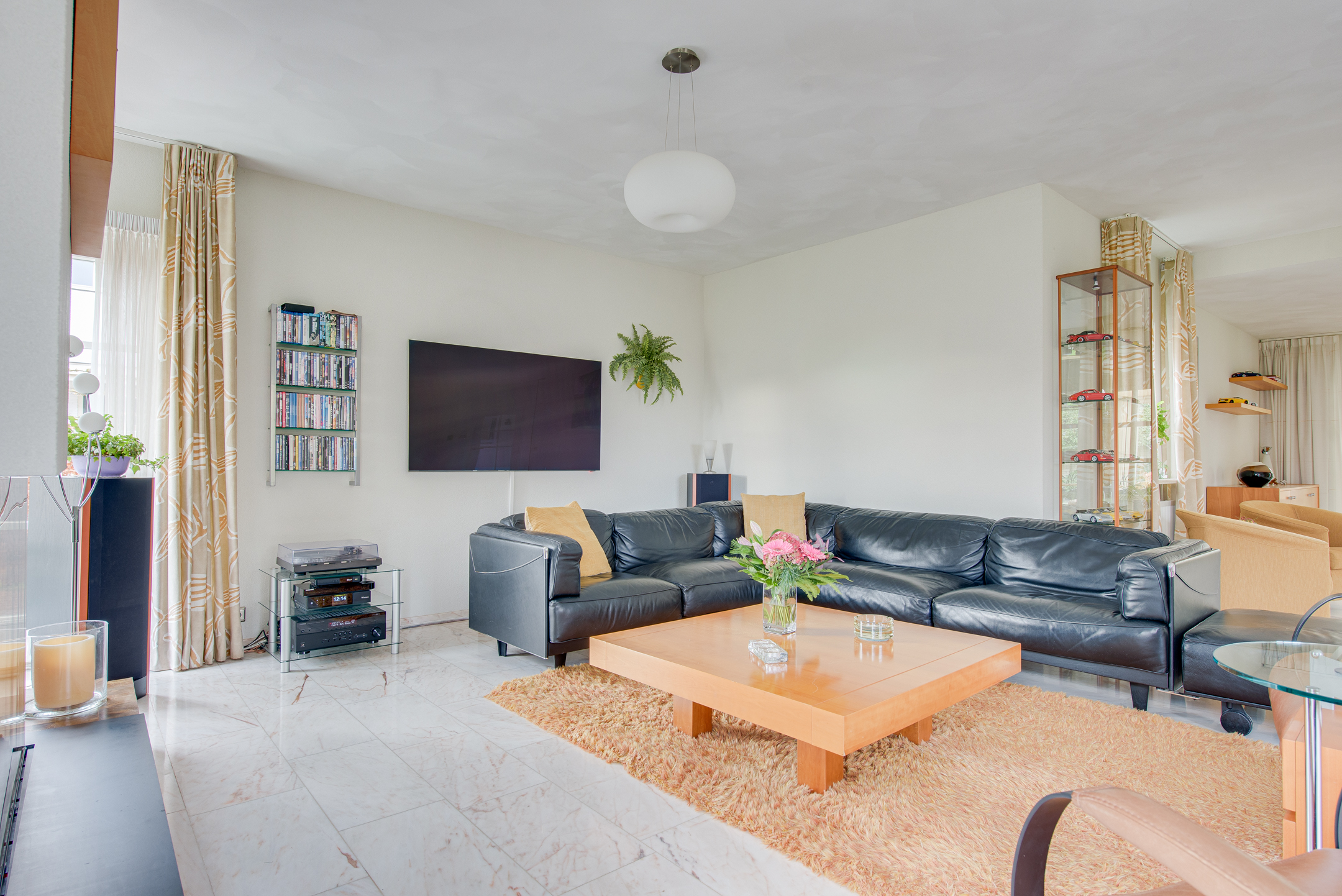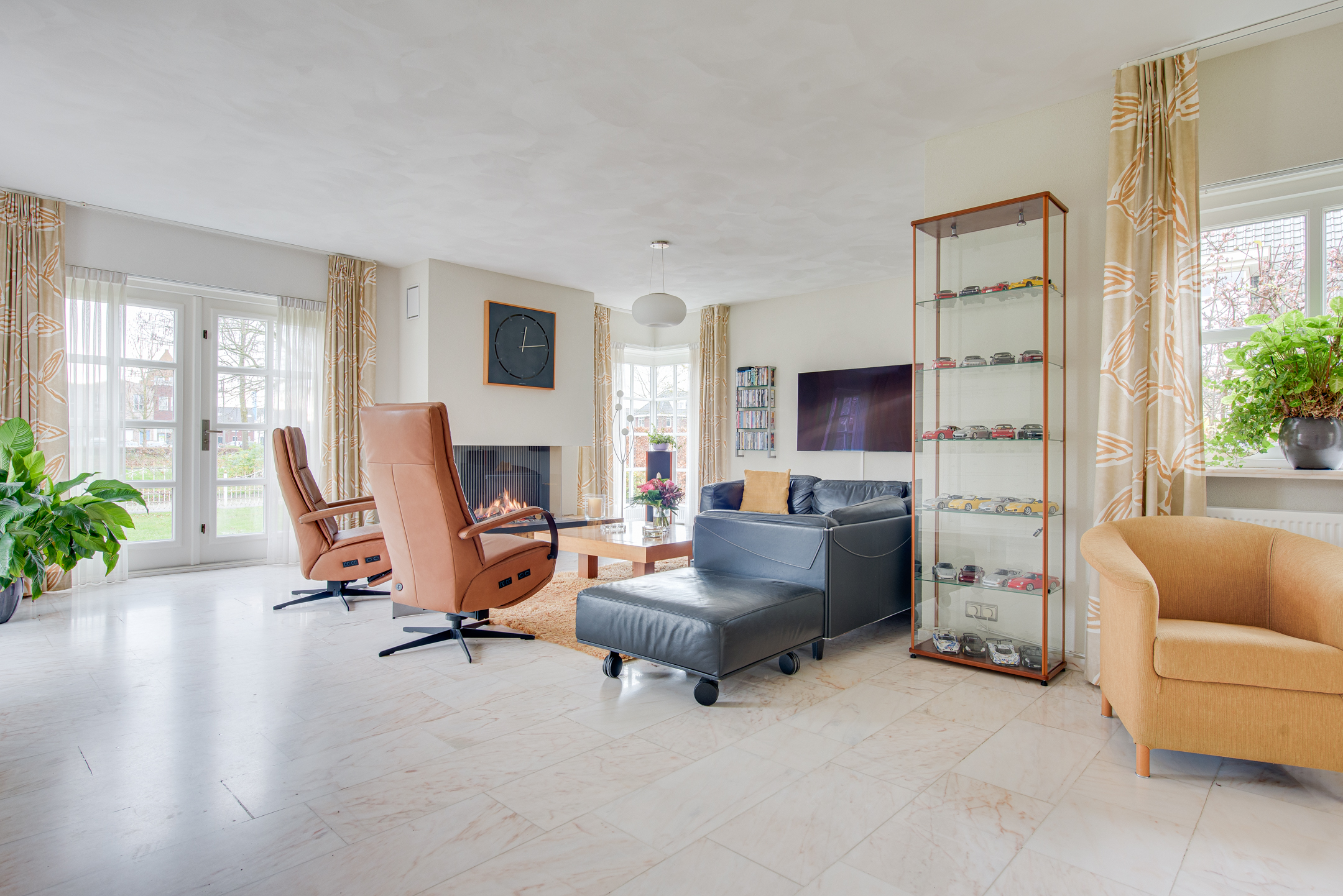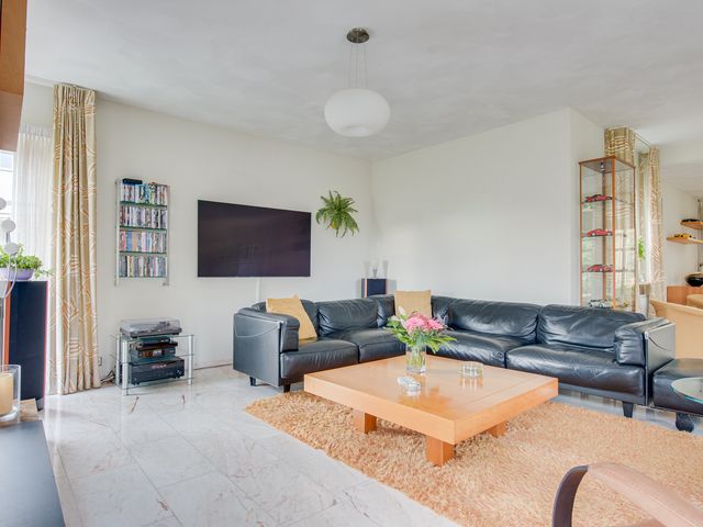 De woonkamer is heerlijk ruim en licht, met grote ramen en openslaande deuren die zorgen voor een fijne verbinding met buiten. Bij het zitgedeelte zorgt de gashaard voor extra sfeer en maakt dit een plek waar je graag verblijft. Vanuit de woonkamer kijk je uit over de straat en het nabijgelegen winkelcentrum.