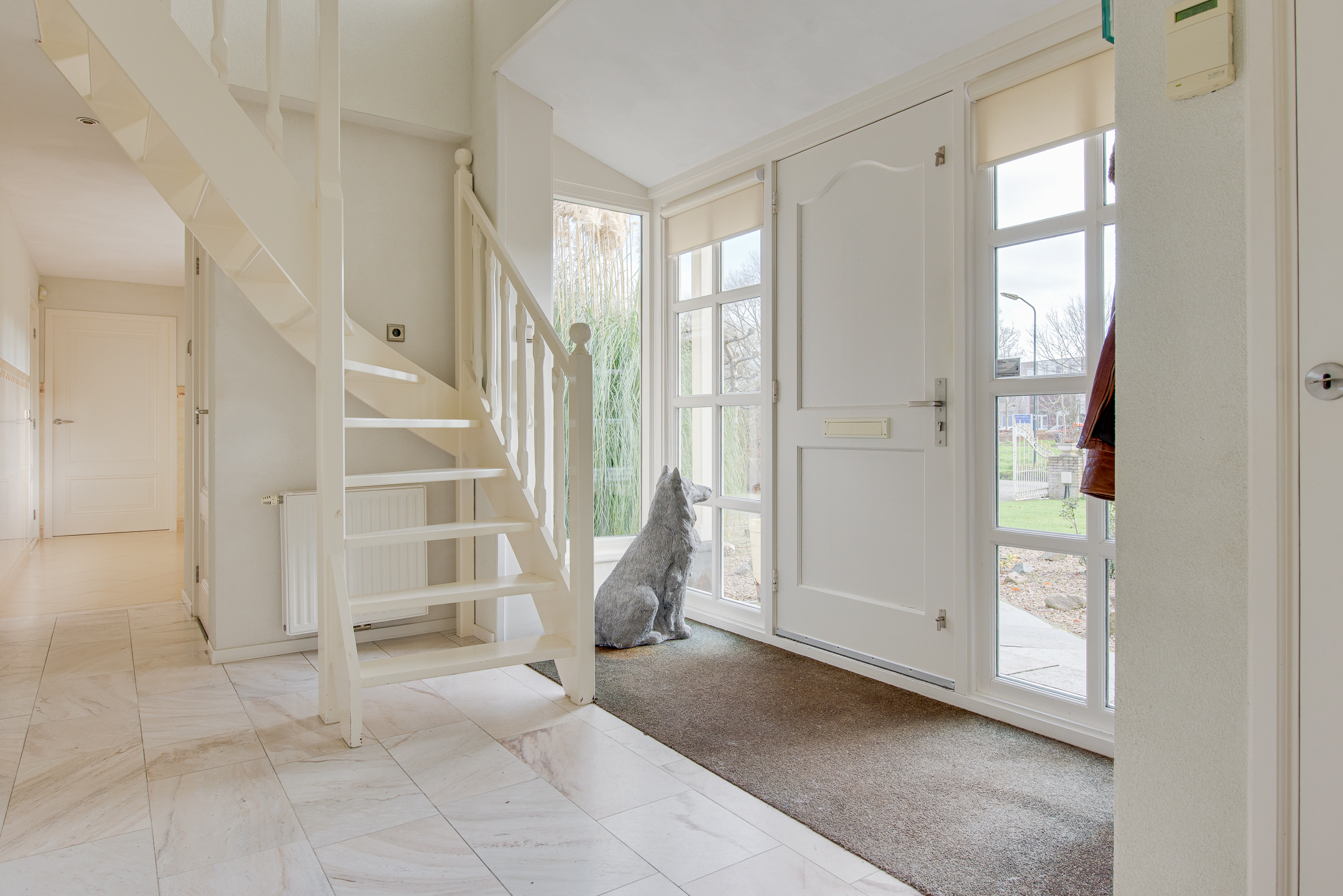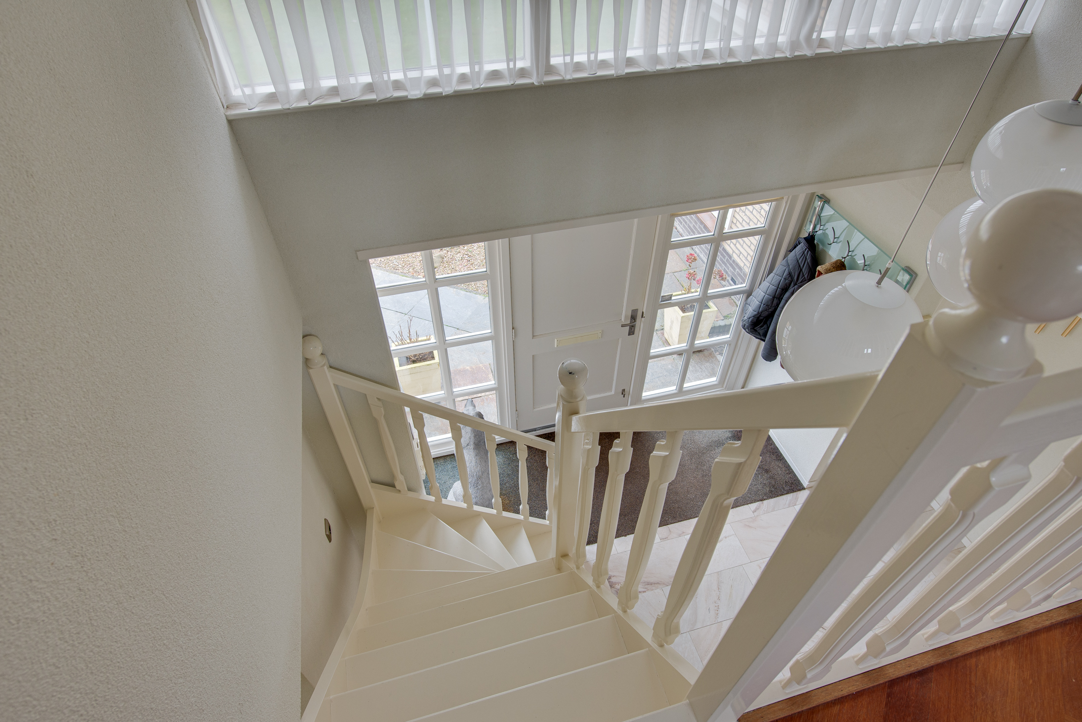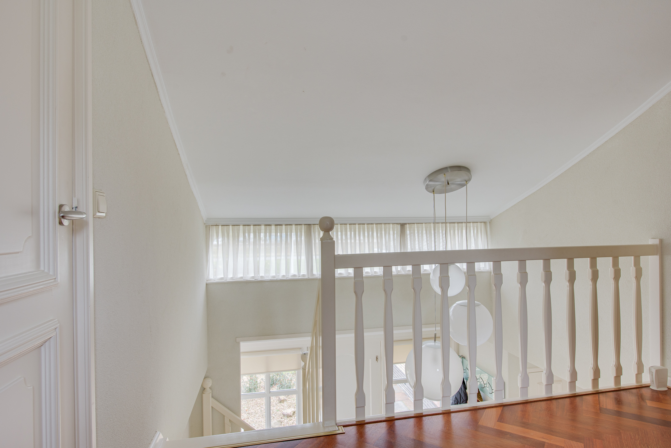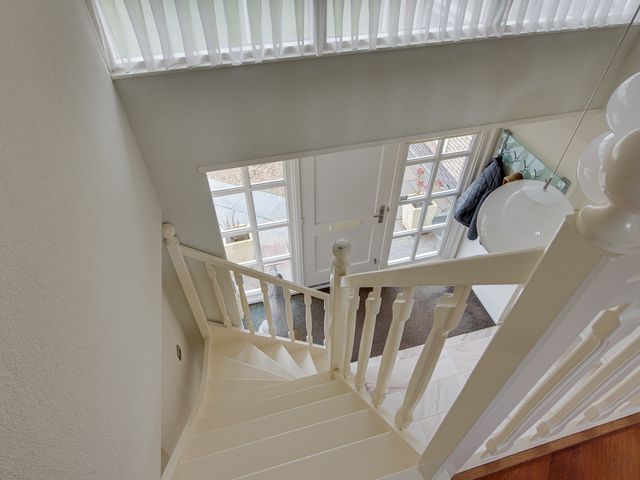 Via de ruime en lichte entree kom je in de hal, die toegang biedt tot de woonkamer, slaapkamer, bijkeuken en het toilet. De open trap met vide geeft de hal een fraai en ruimtelijk karakter.