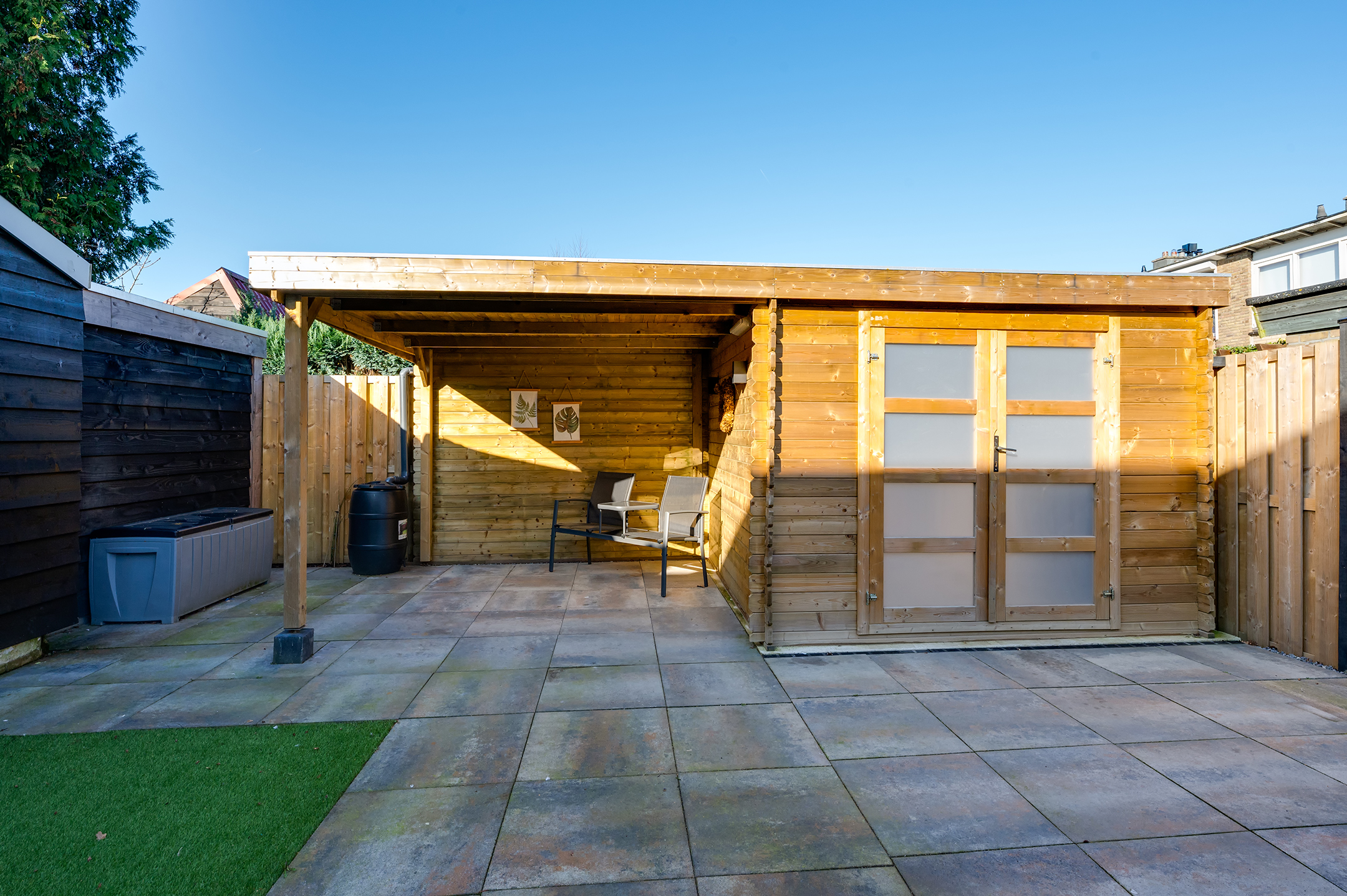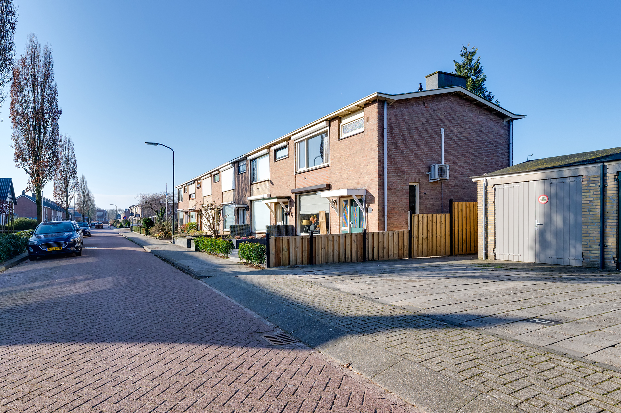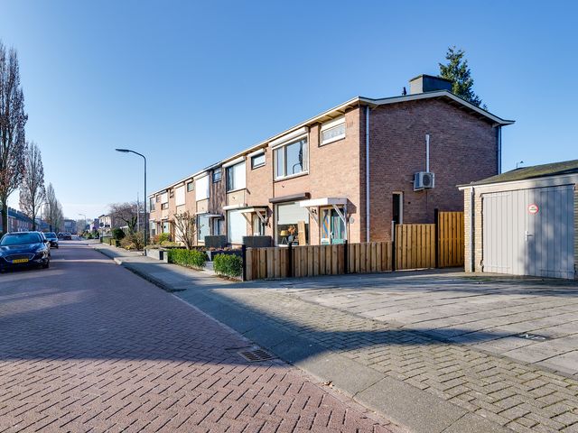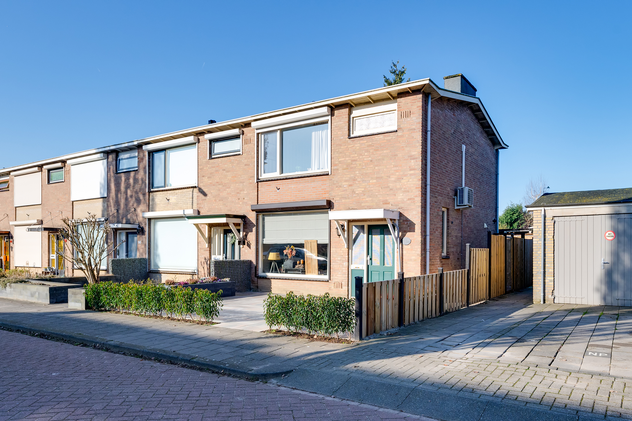 Op een geliefde locatie gelegen hoekwoning met ruim houten tuinhuis en diverse elektrische rolluiken.