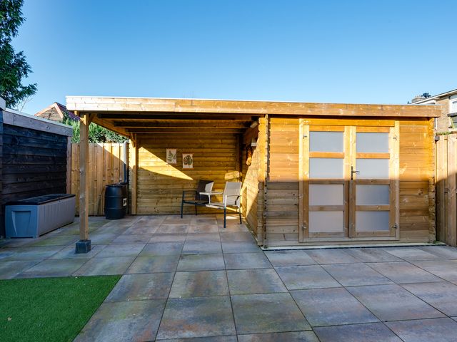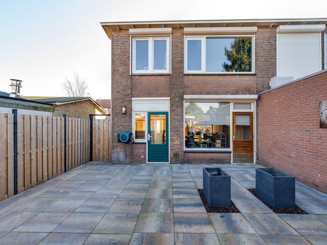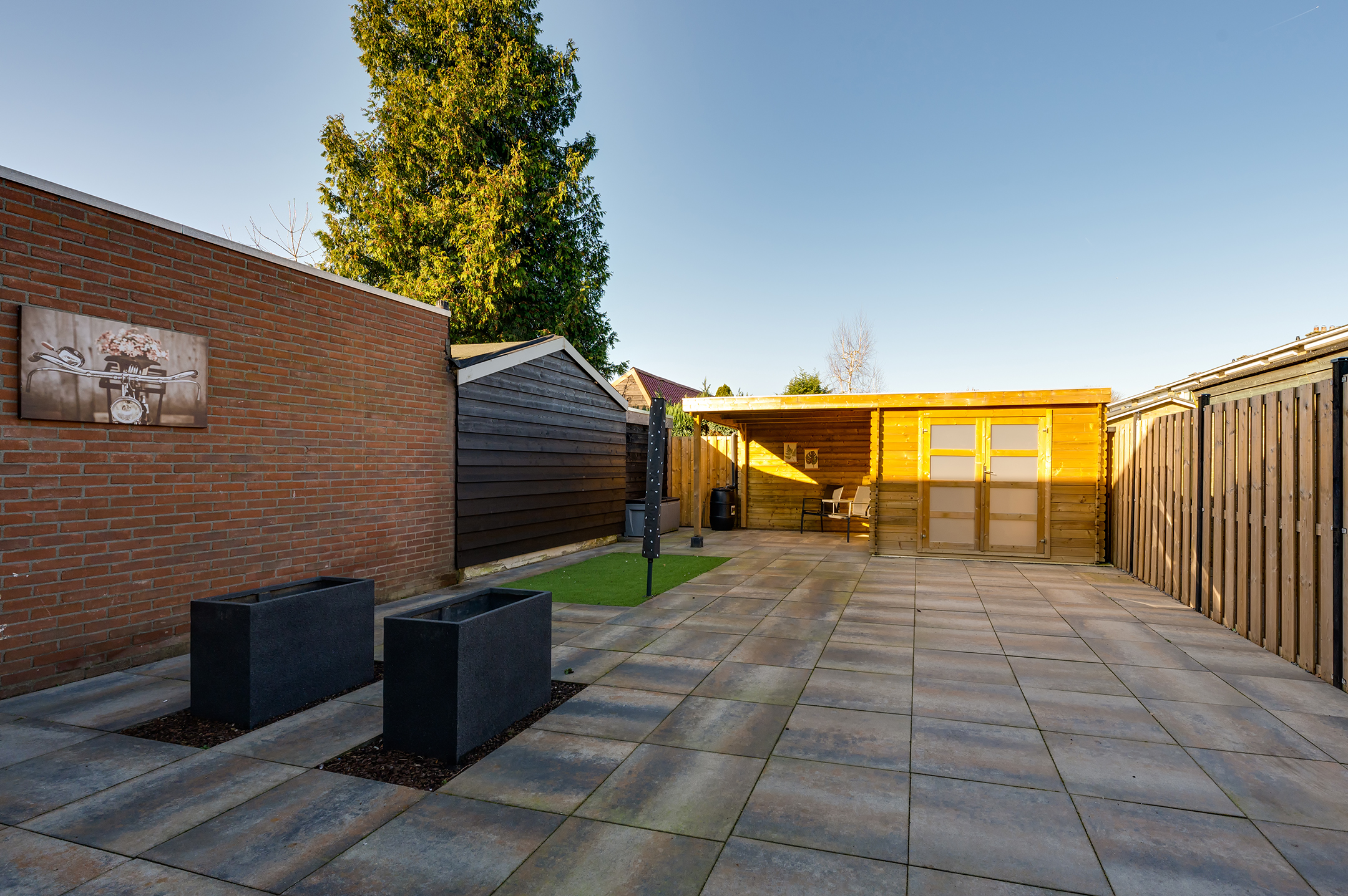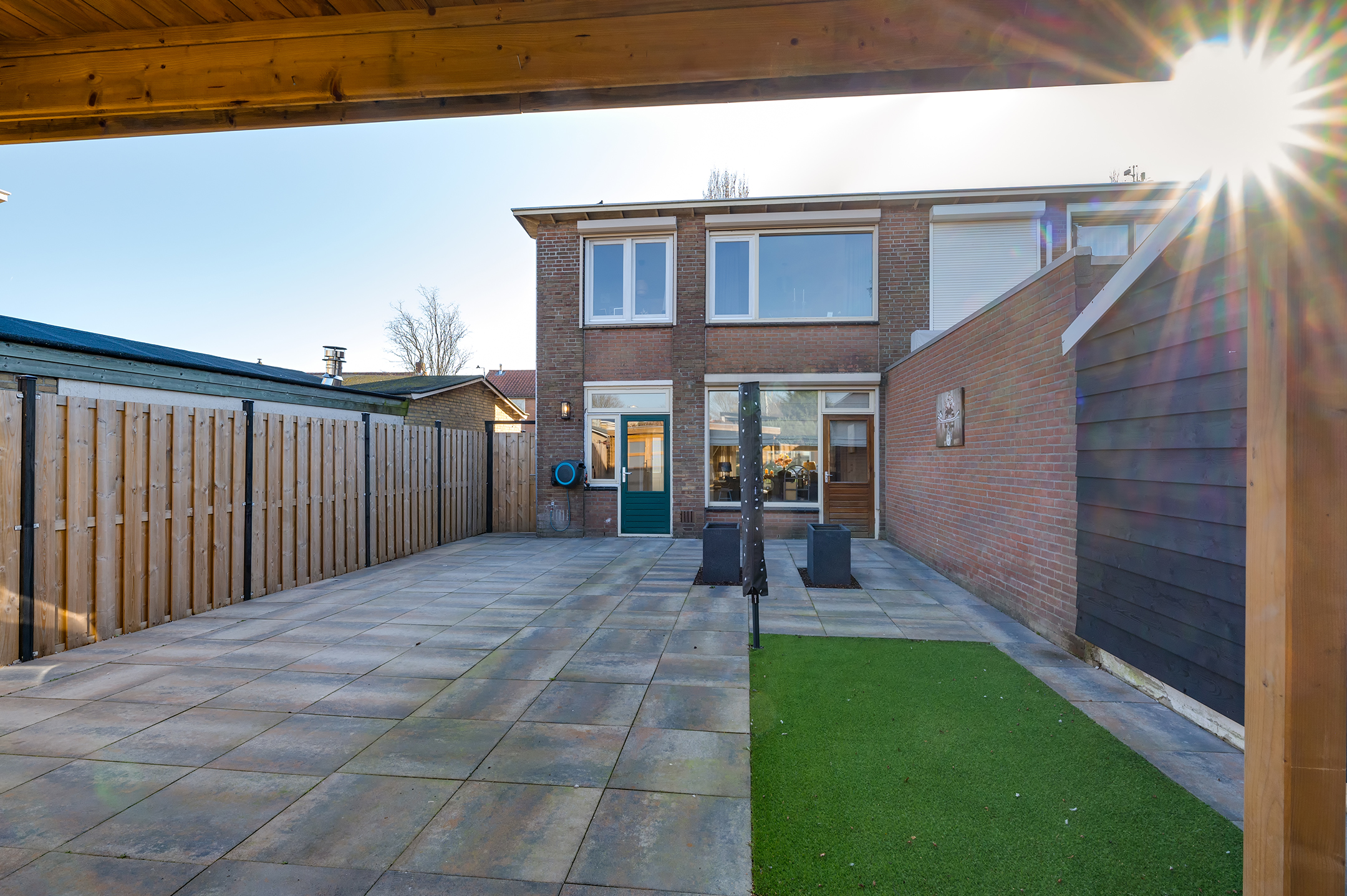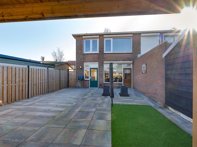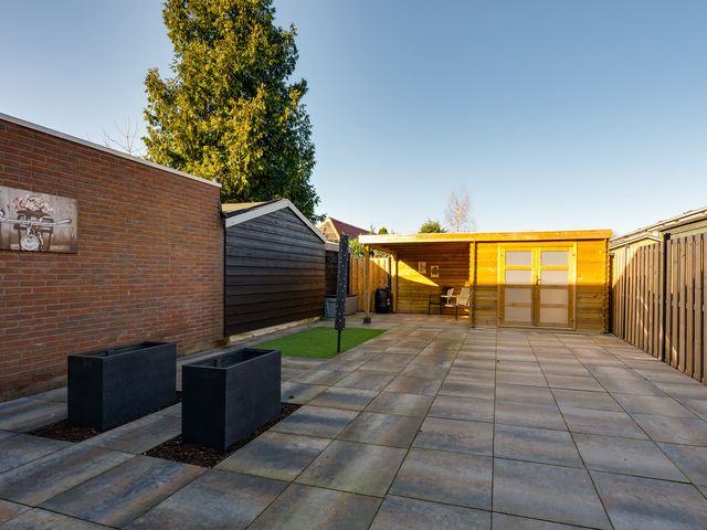 Op een geliefde locatie gelegen hoekwoning met ruim houten tuinhuis en diverse elektrische rolluiken.