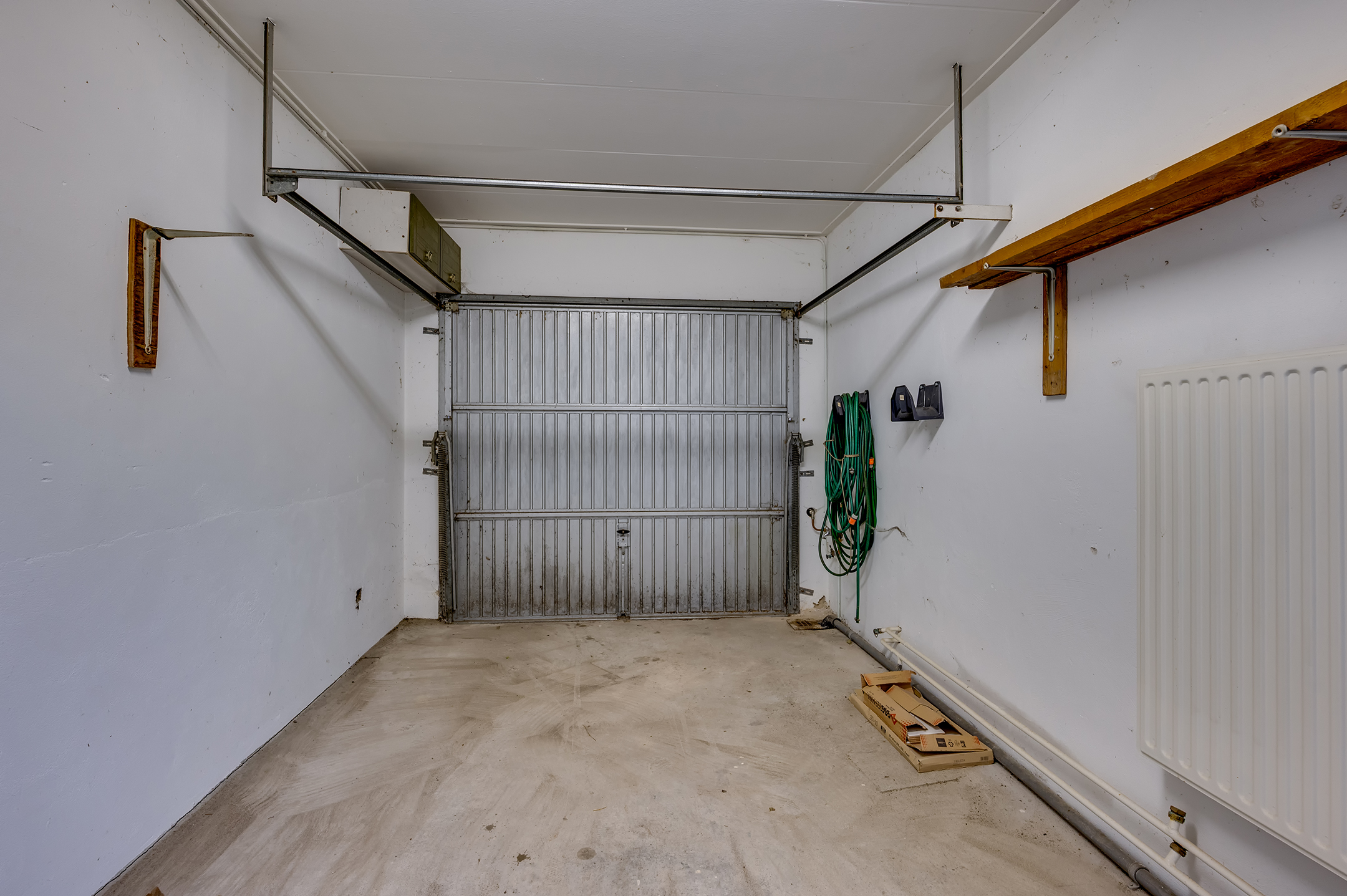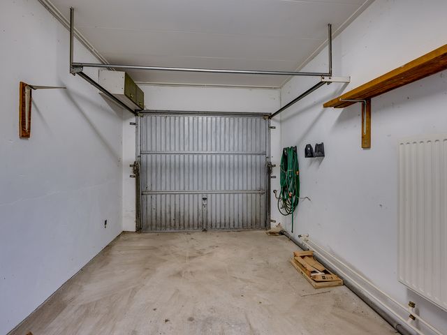 Aan de zijkant van het huis bevindt zich een oprit waar je gemakkelijk een auto kwijt kunt. De garage is direct bereikbaar.