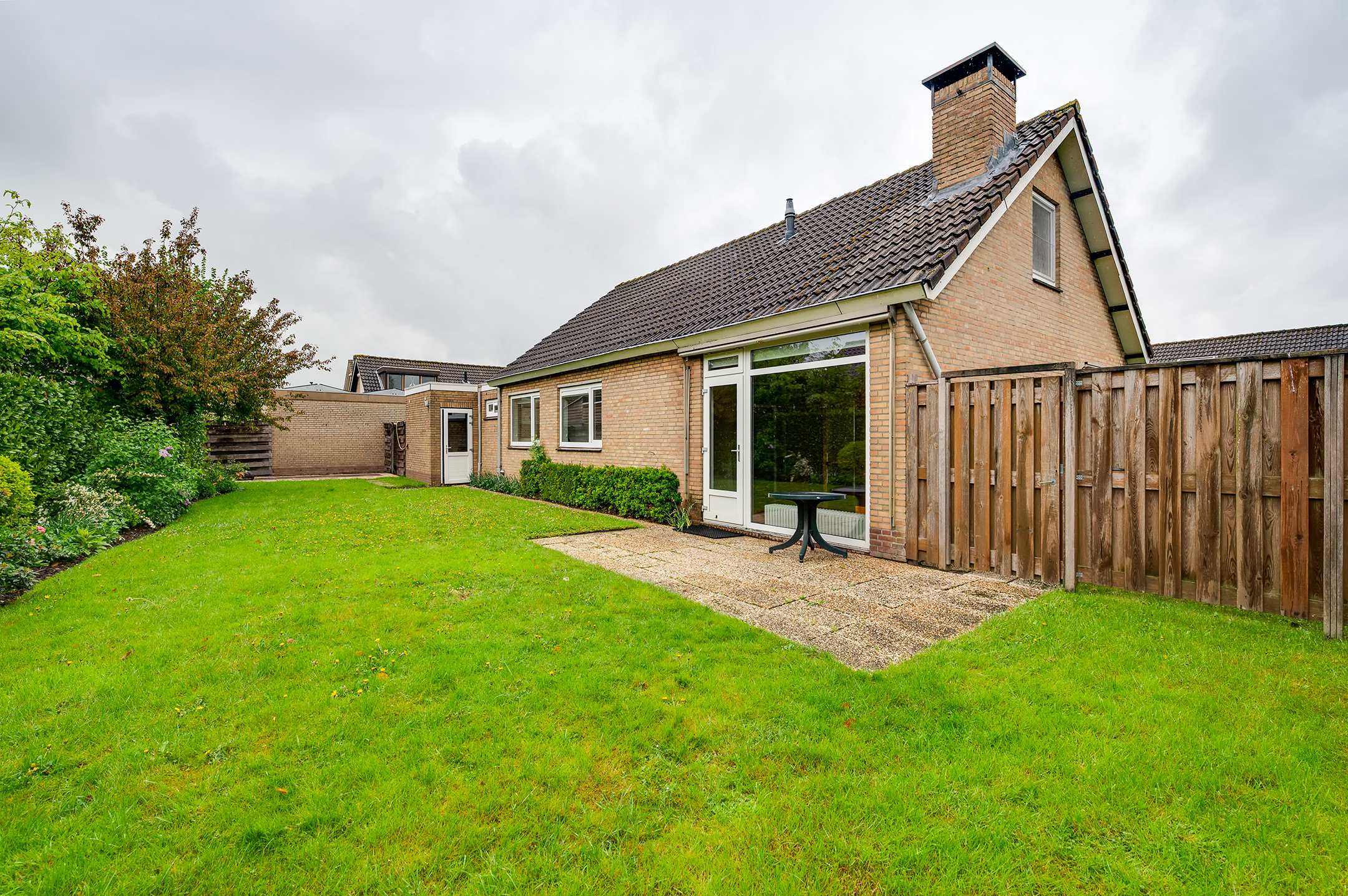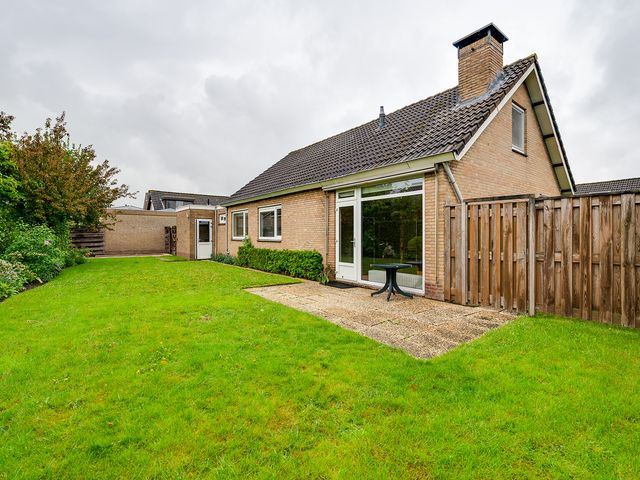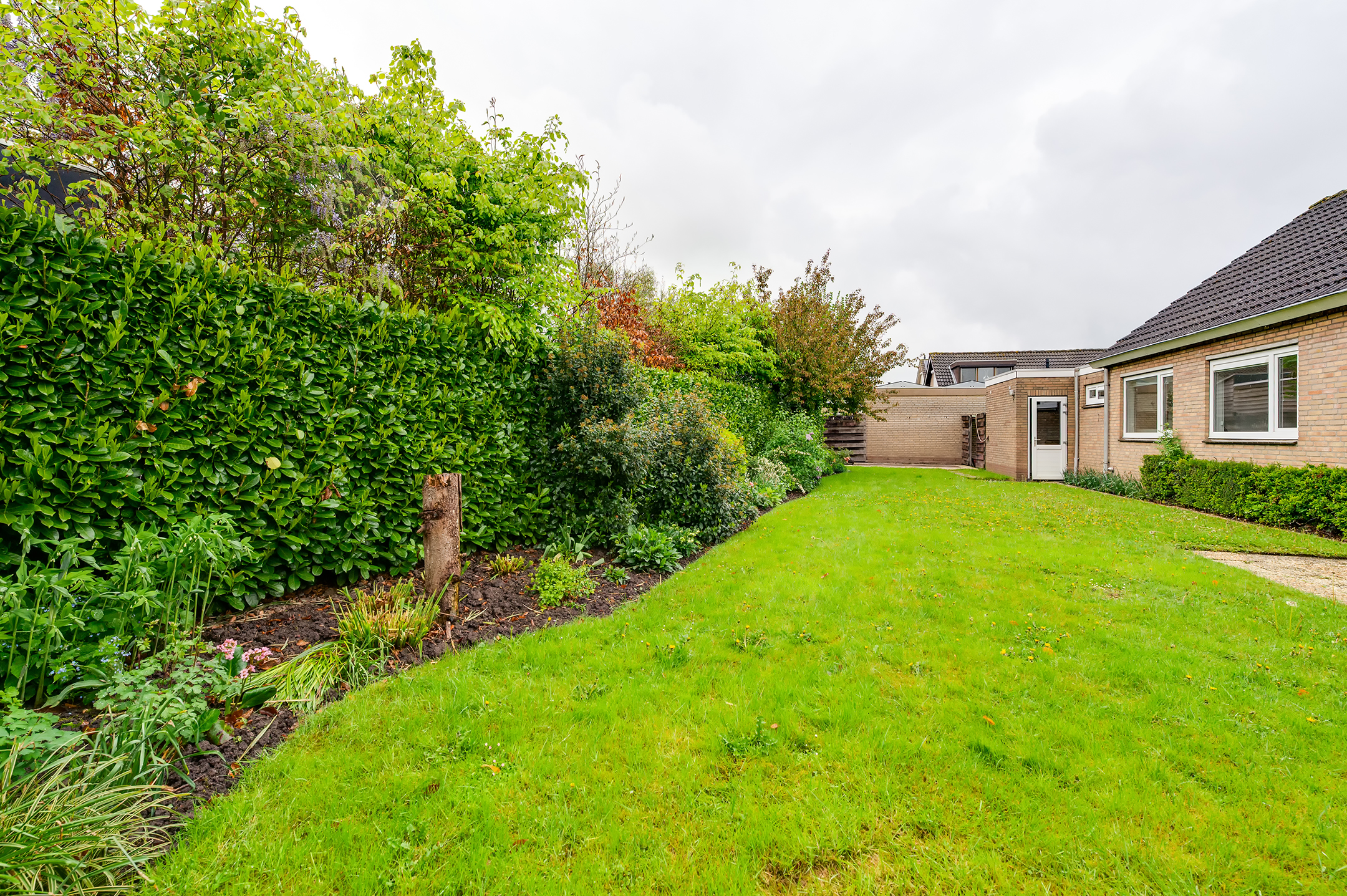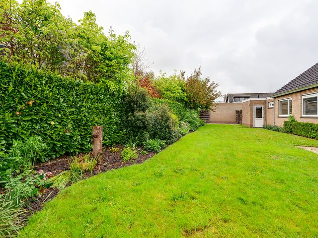 De achtertuin is bereikbaar via de achterdeur én via twee poorten aan beide zijden van de woning. De tuin is verzorgd aangelegd met een betegeld terras, een grasveld en een border met beplanting langs de achterzijde – een fijne plek om in alle rust buiten te zitten. De tuin ligt op het zuidwesten waardoor je lang van de zon kunt genieten!