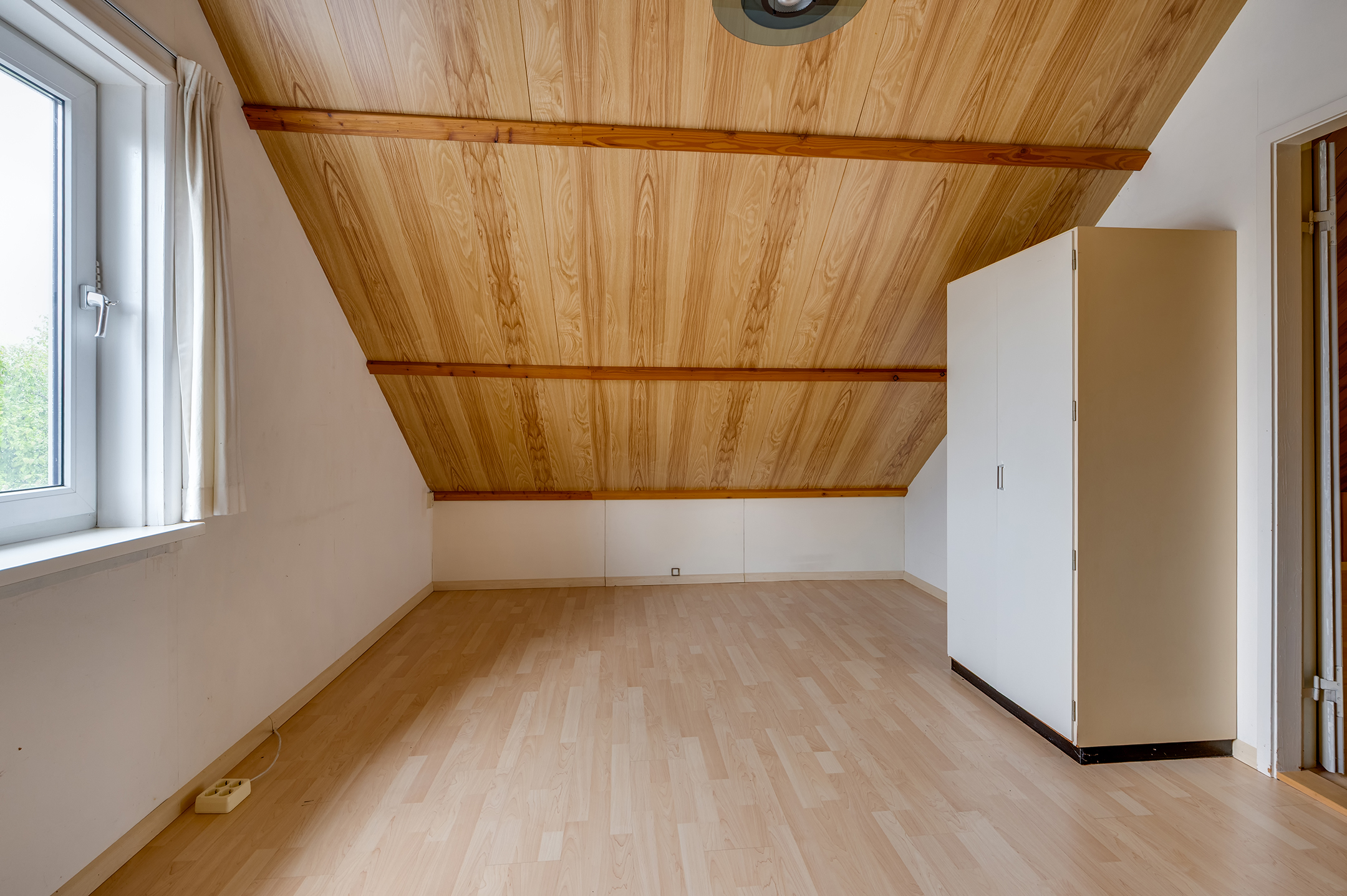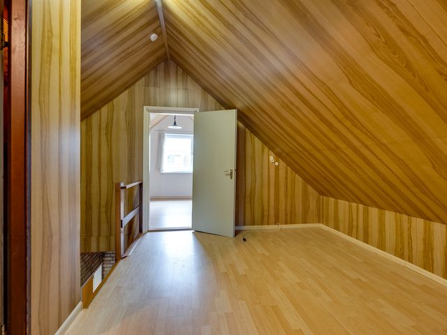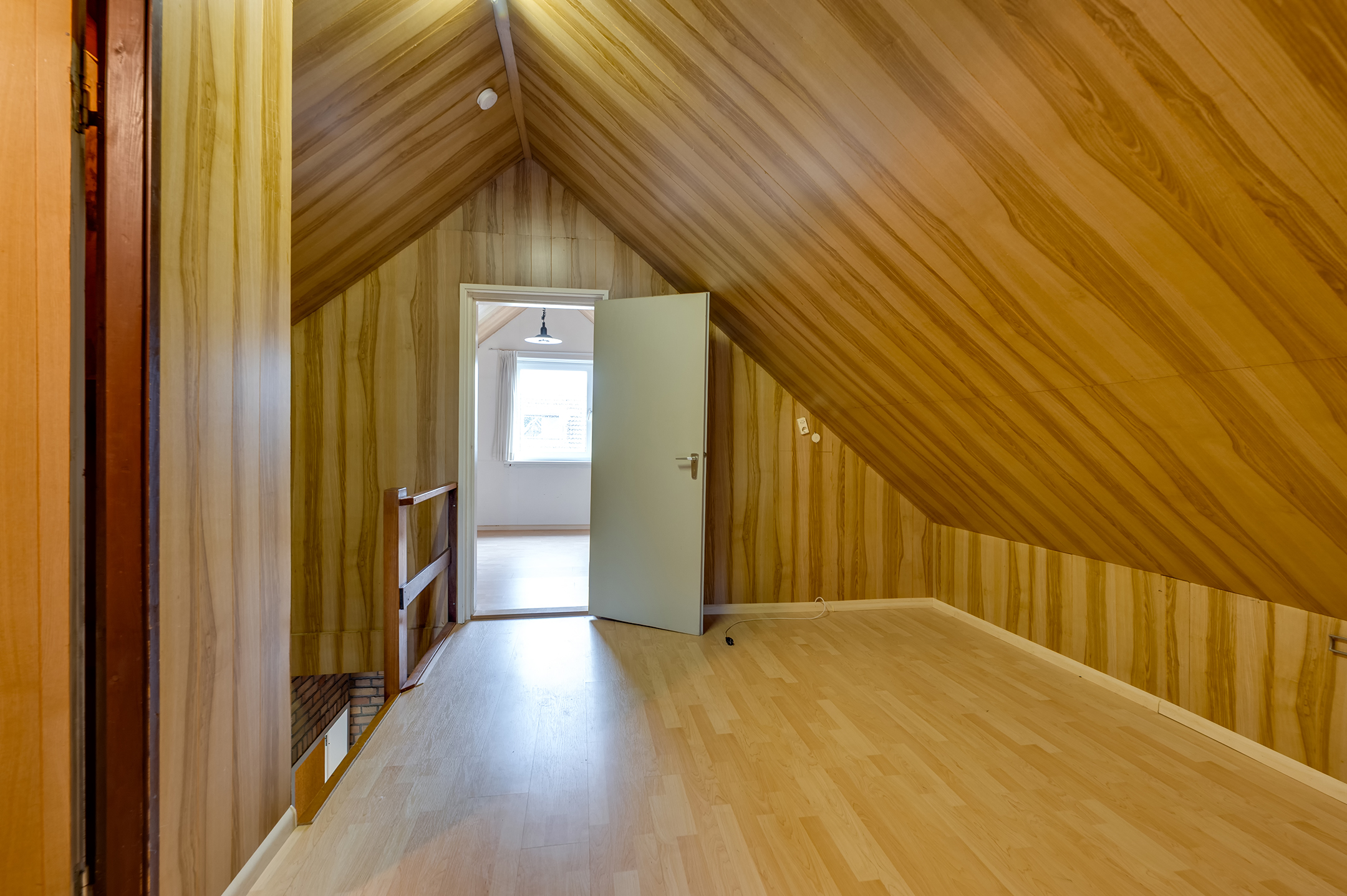 Via de trap kom je op een ruime overloop met toegang tot nog twee royale slaapkamers met schuine wanden – ideaal als extra slaap-, werk- of hobbyruimte. Ook is er een grote kast/berging aanwezig waar zich de stookruimte bevindt.