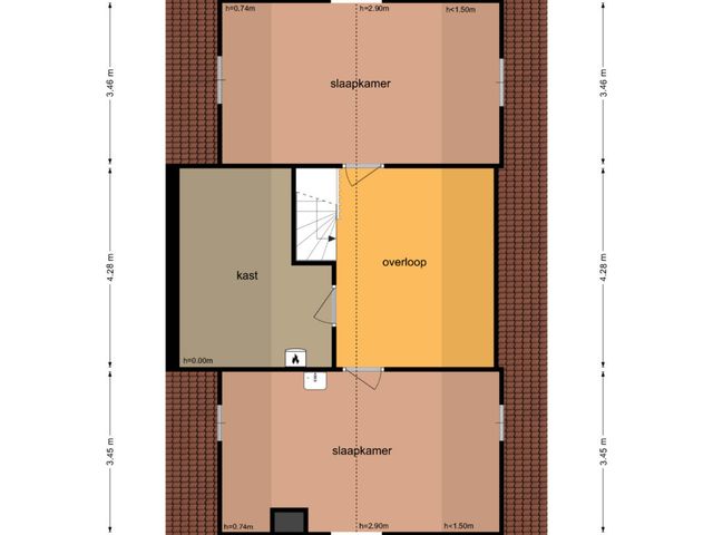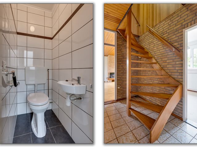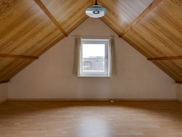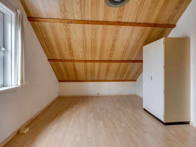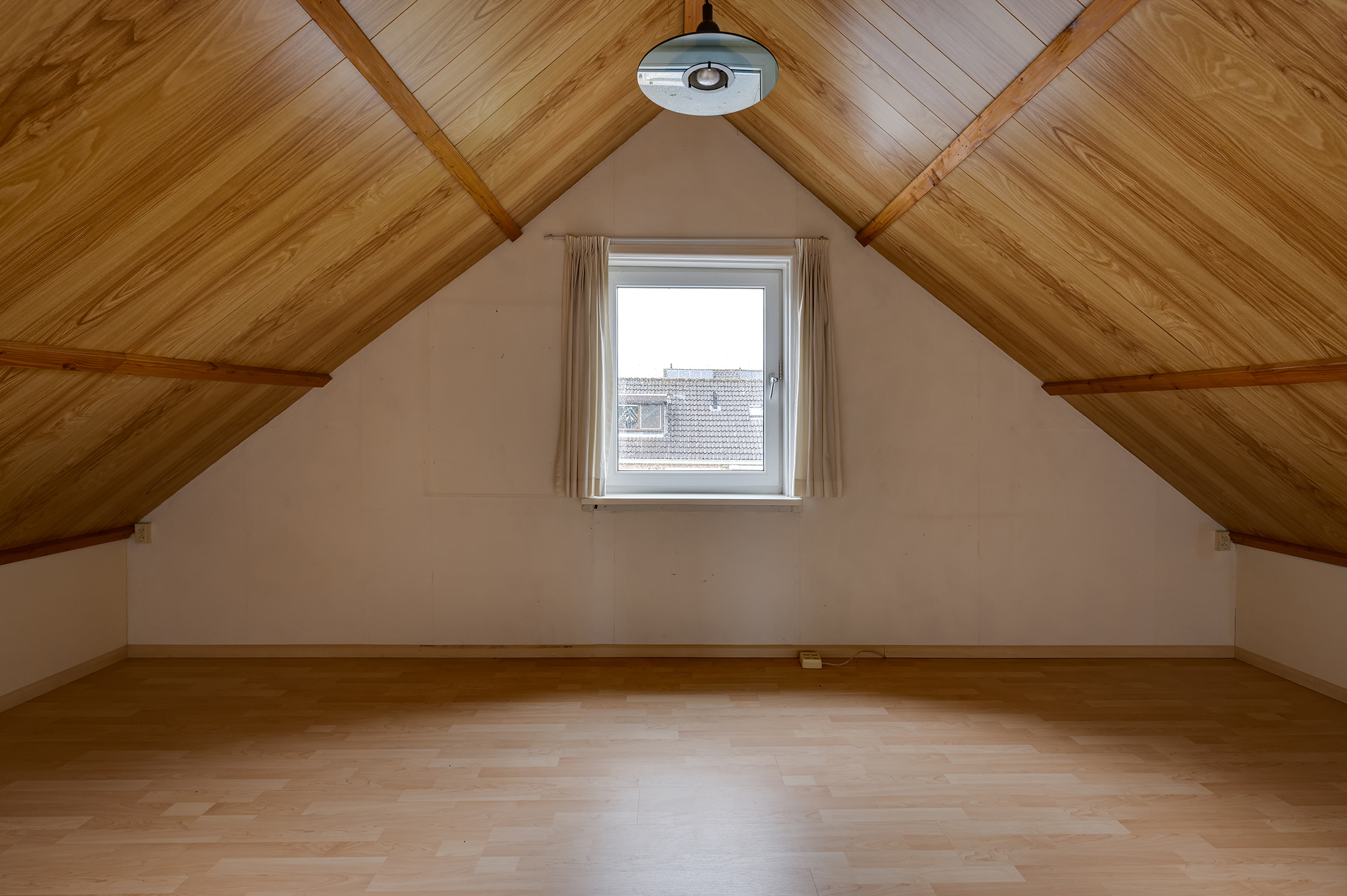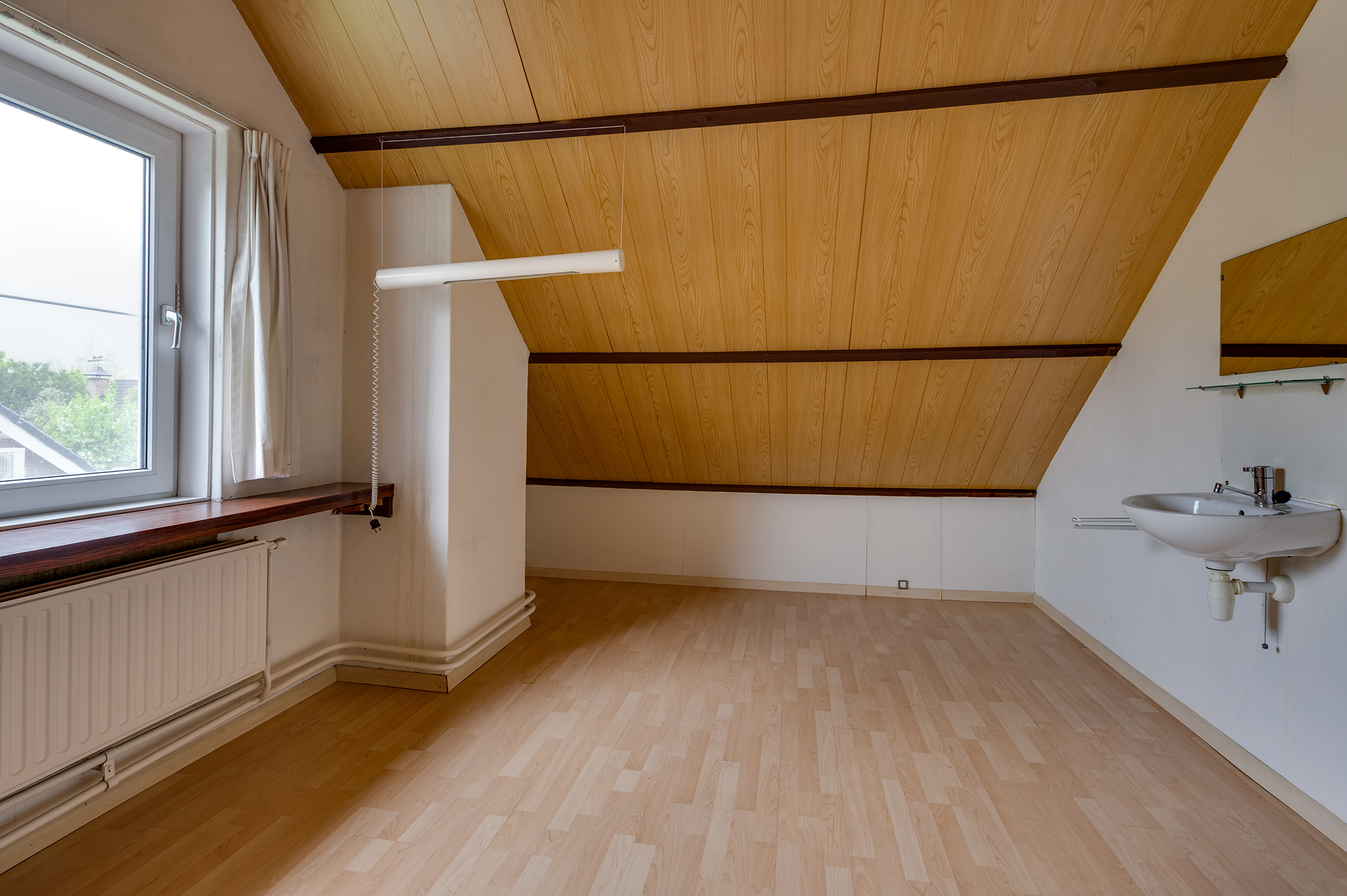 Via de trap kom je op een ruime overloop met toegang tot nog twee royale slaapkamers met schuine wanden – ideaal als extra slaap-, werk- of hobbyruimte. Ook is er een grote kast/berging aanwezig waar zich de stookruimte bevindt.