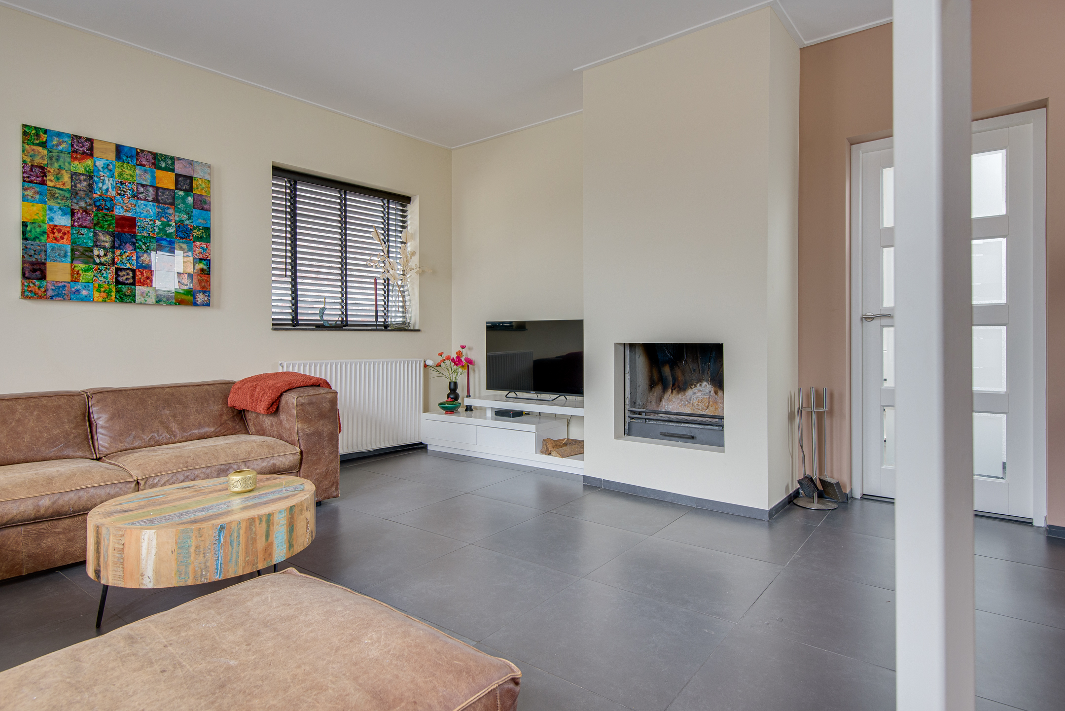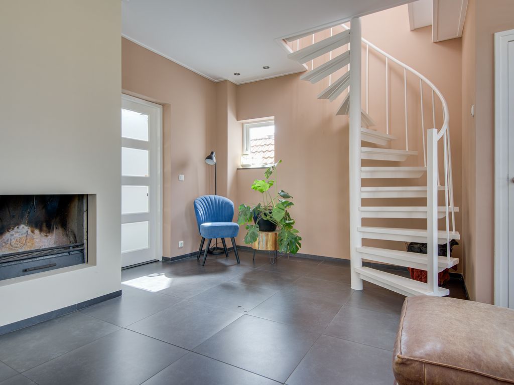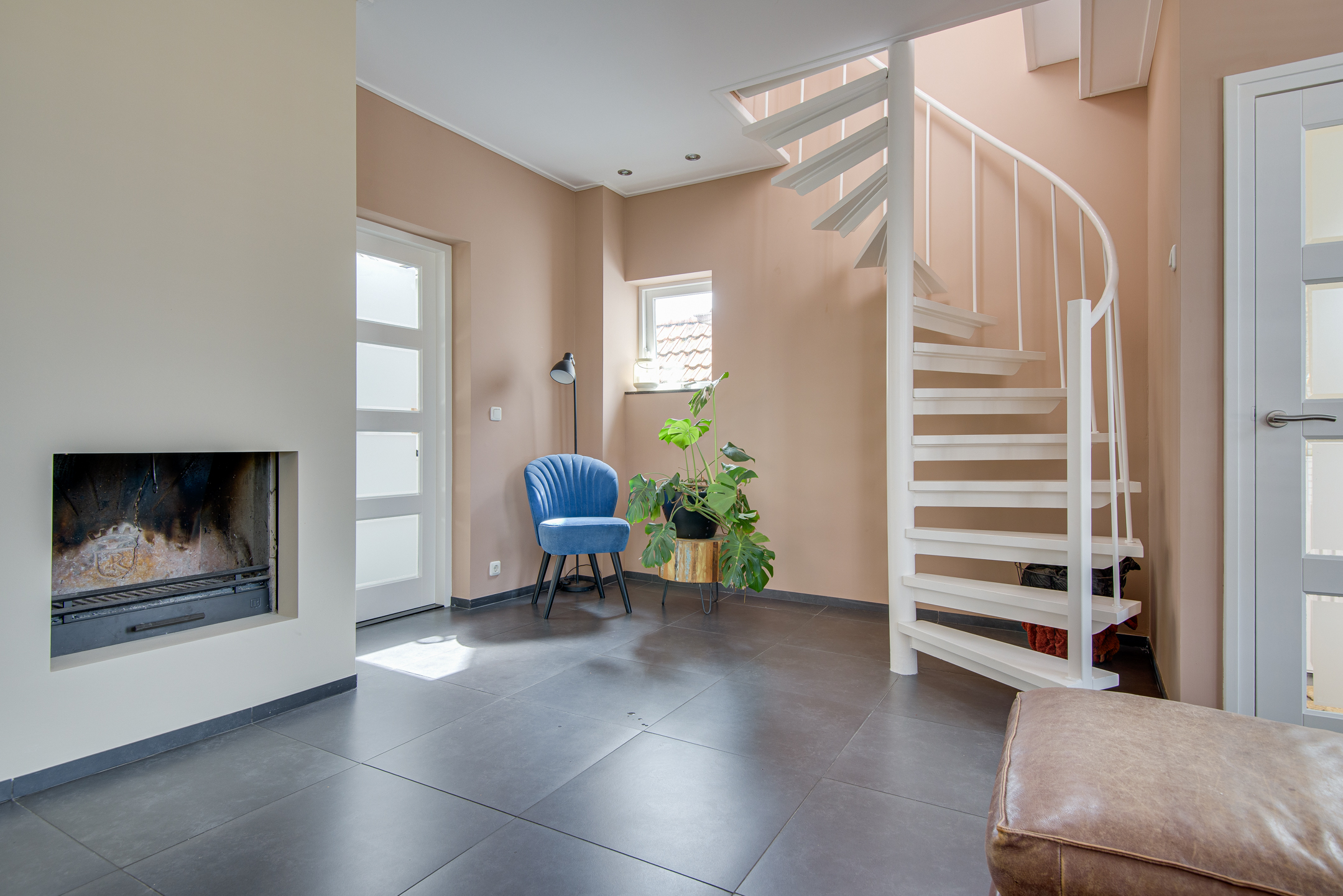 Via de voordeur stap je binnen op dijkniveau. Vanuit de hal kom je in de sfeervolle woonkamer met gezellige open haard en een spiltrap naar boven. Een warme ruimte waar je je direct thuis voelt.