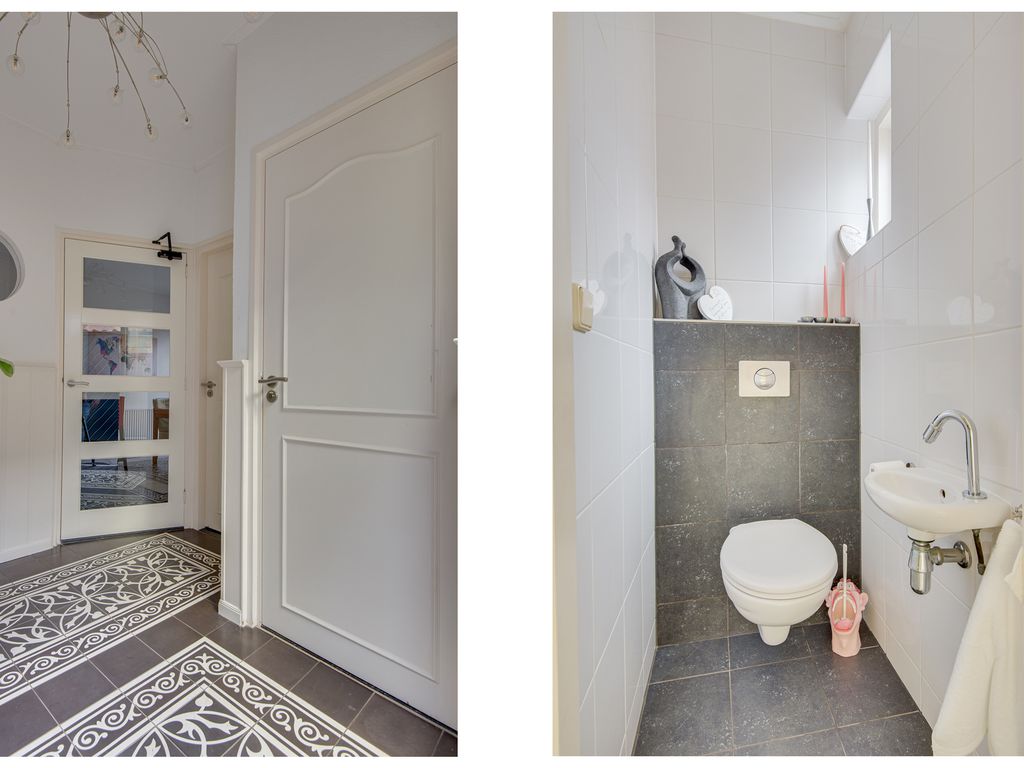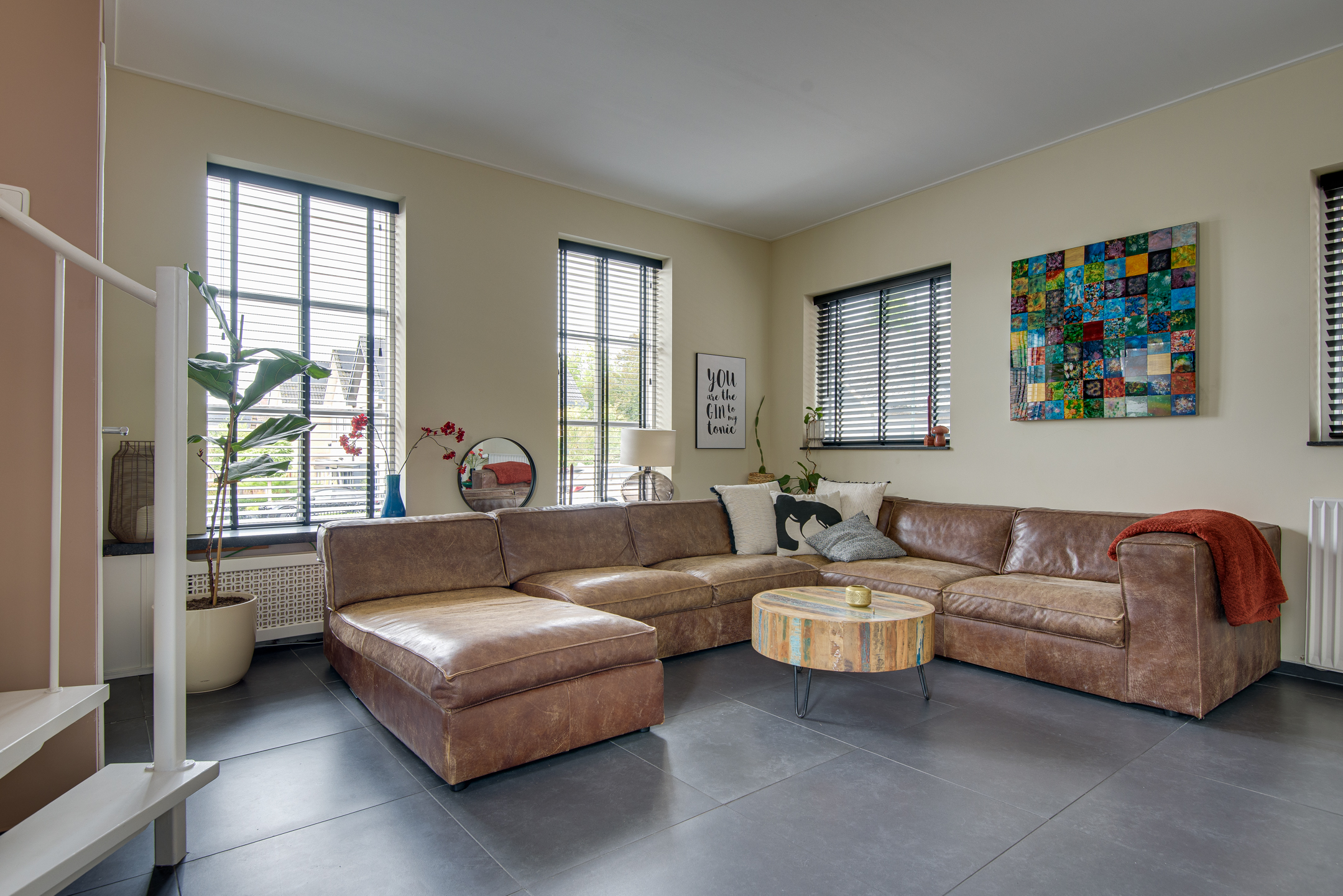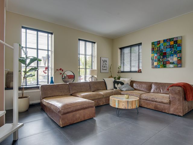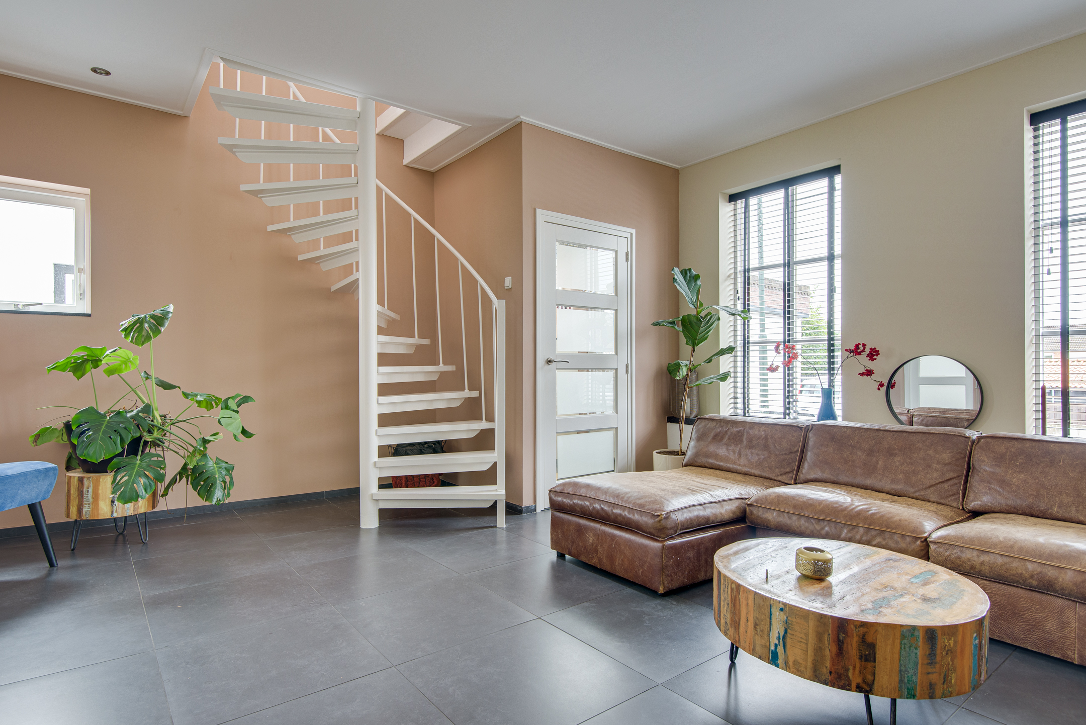 Via de voordeur stap je binnen op dijkniveau. Vanuit de hal kom je in de sfeervolle woonkamer met gezellige open haard en een spiltrap naar boven. Een warme ruimte waar je je direct thuis voelt.