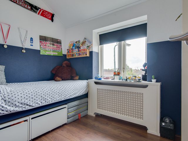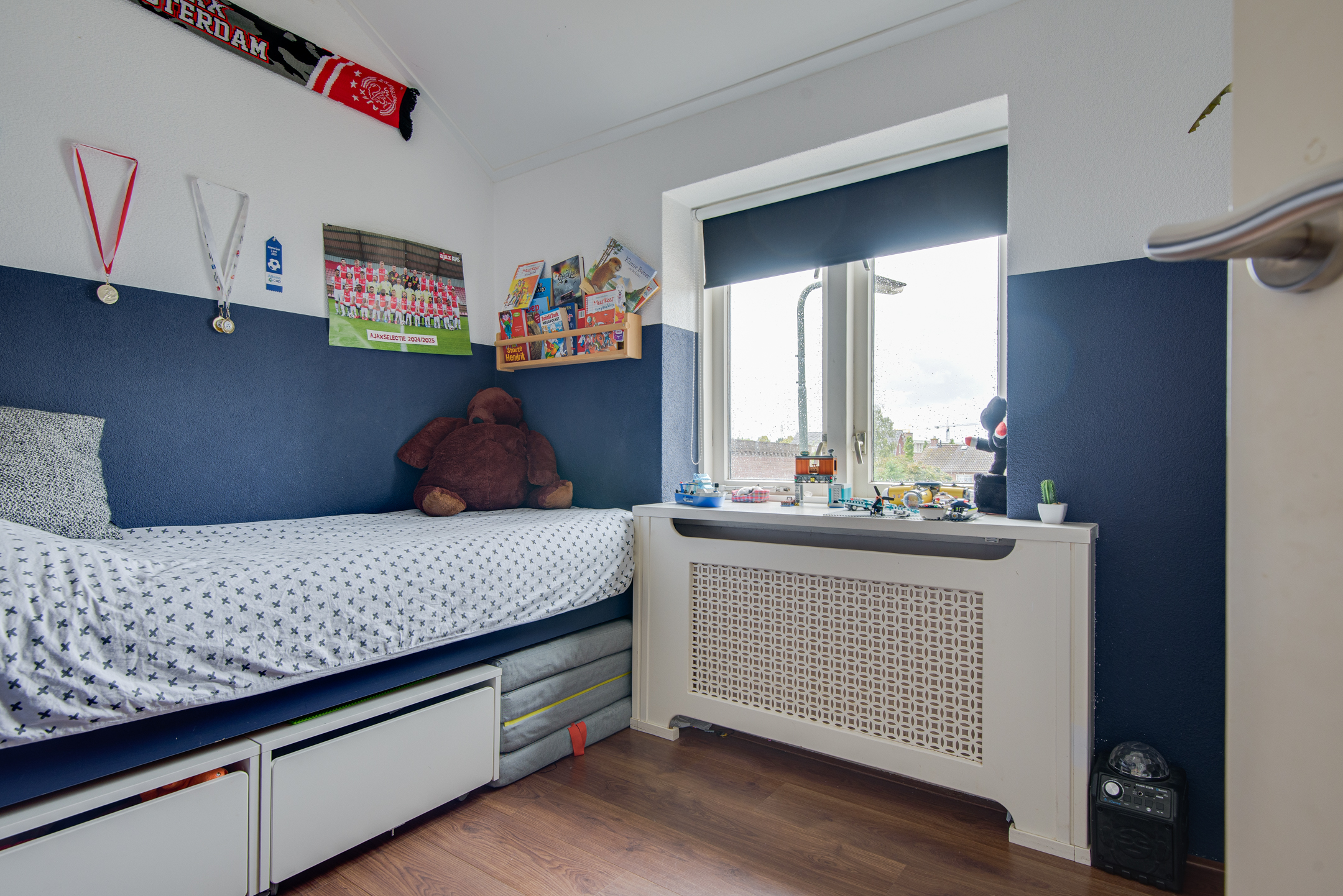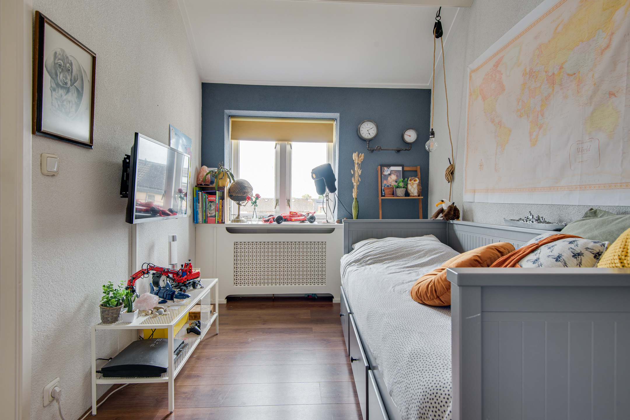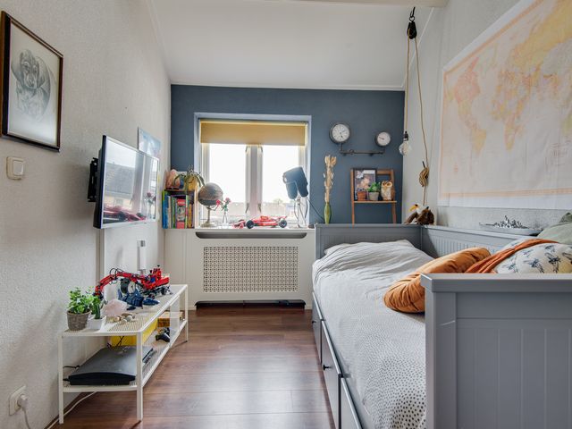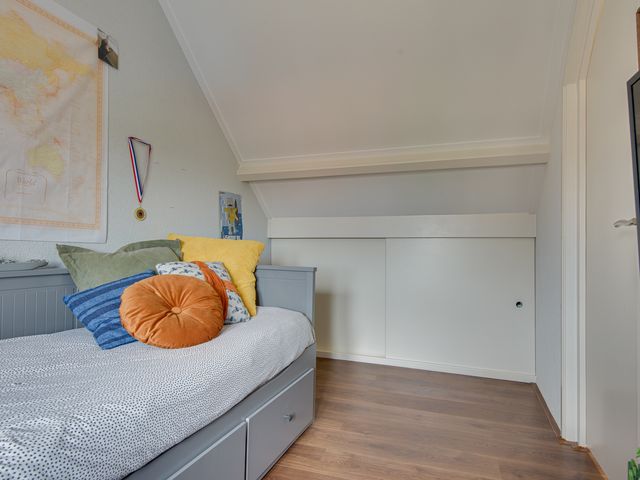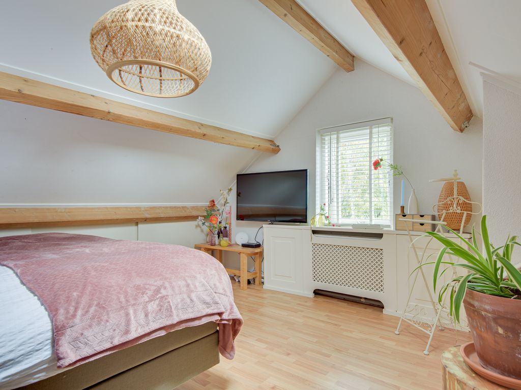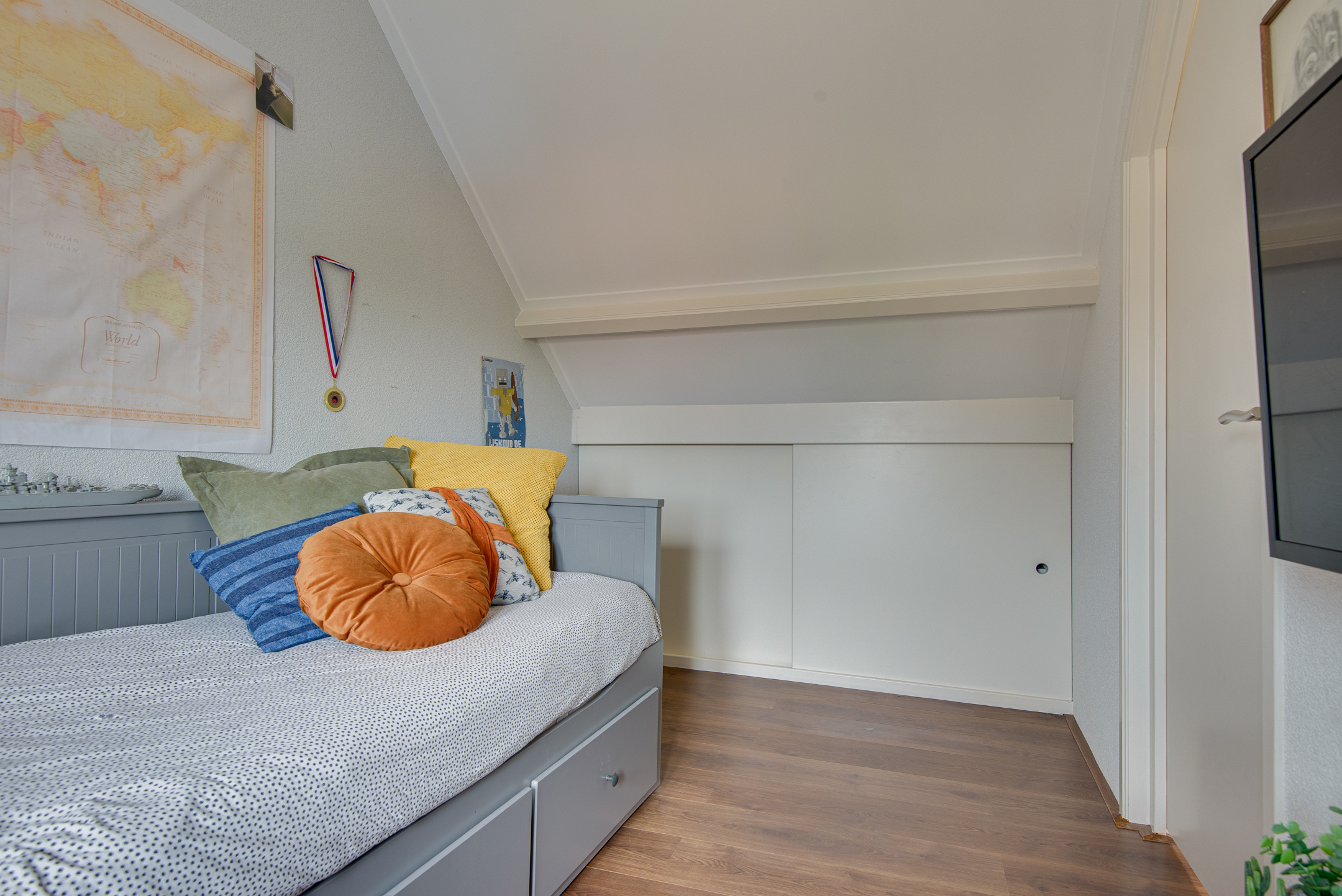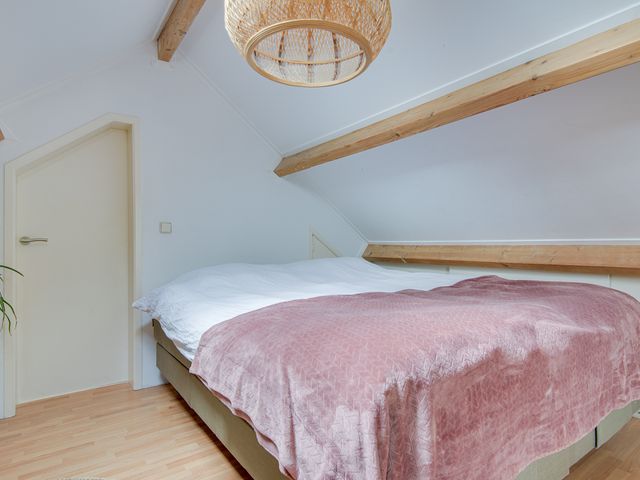 Op de deze verdieping vind je ook een royale slaapkamer. Vanaf de overloop kun je via de trap naar beneden, richting de begane grond.