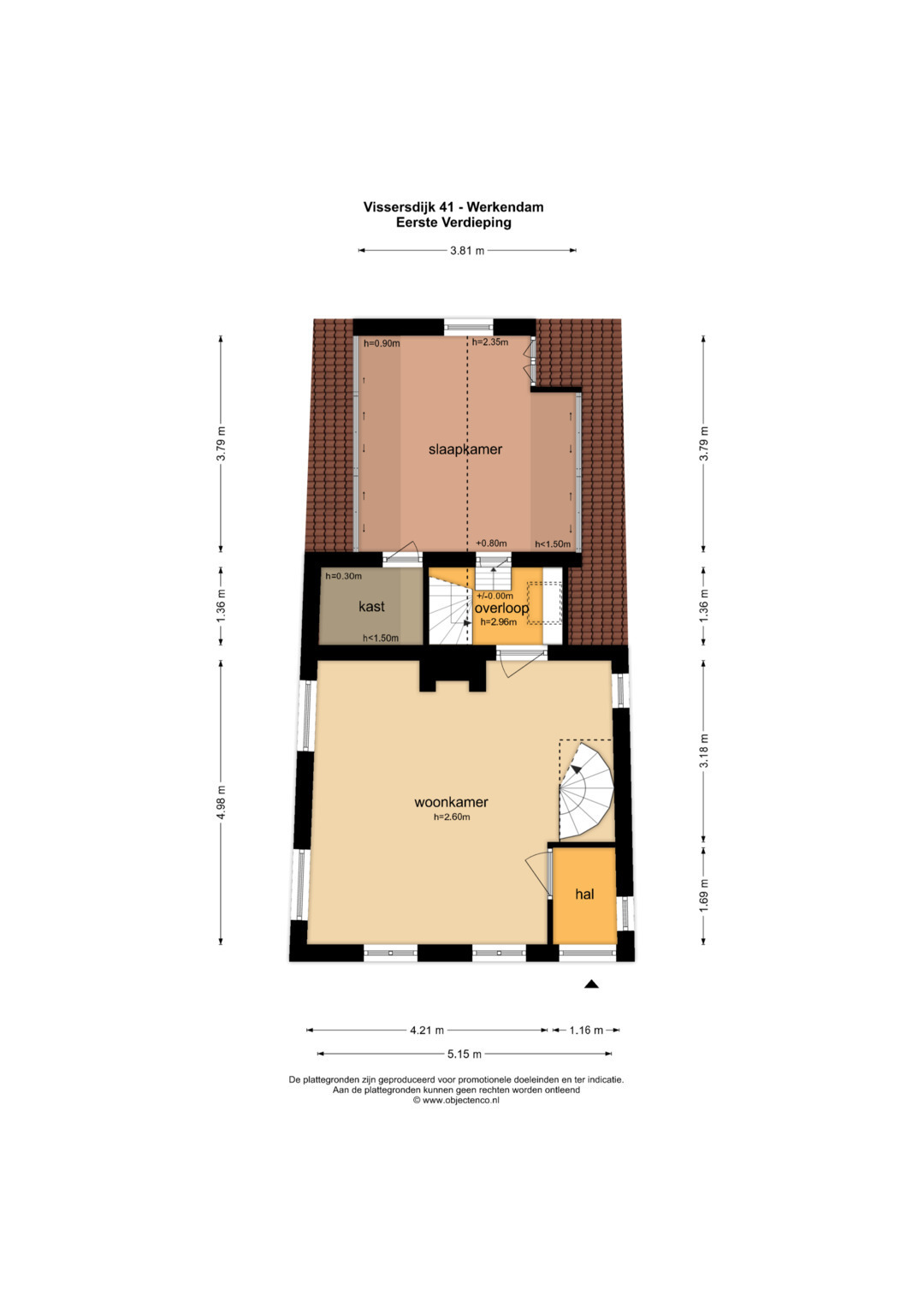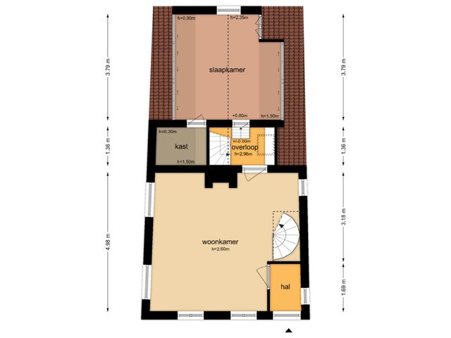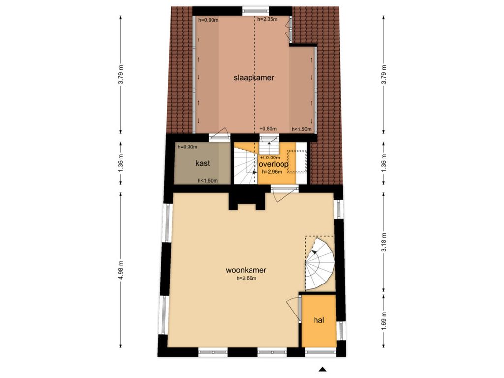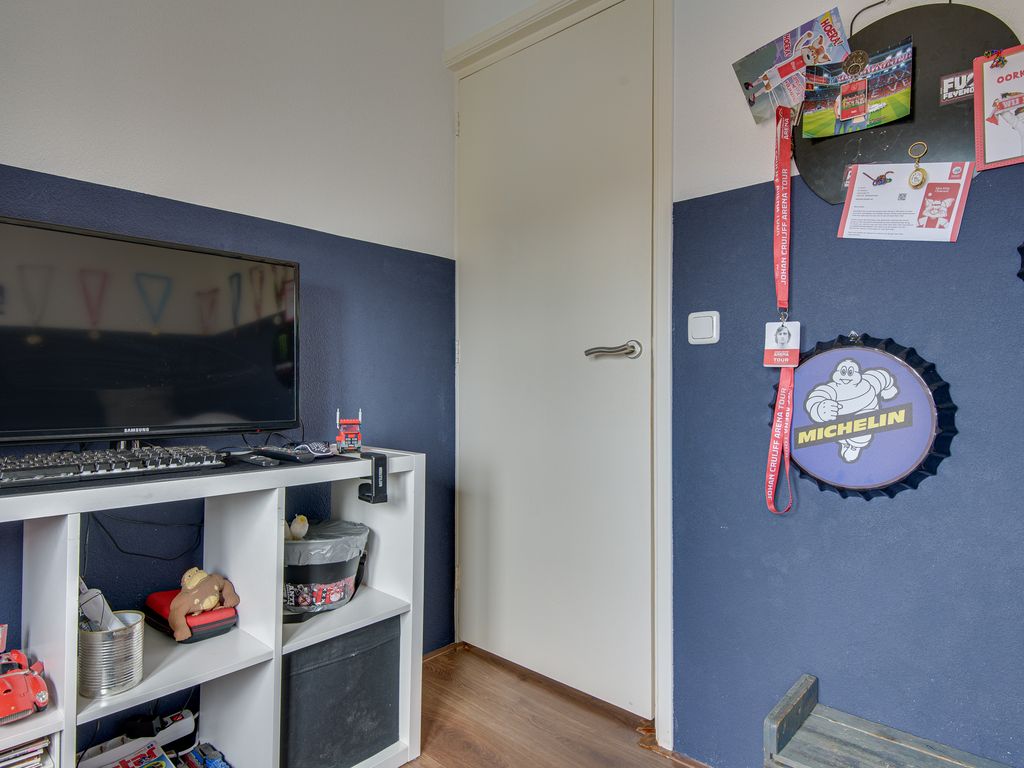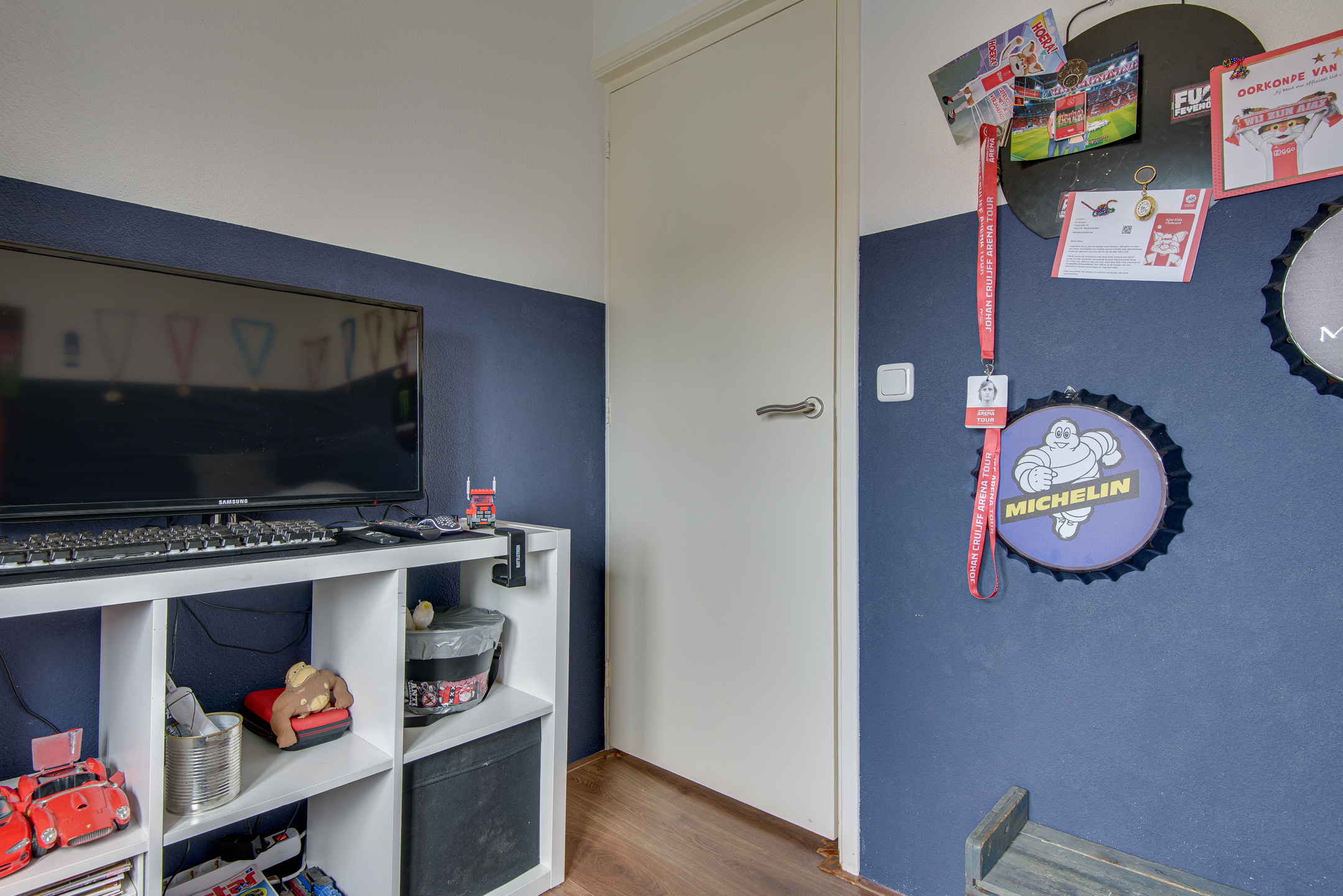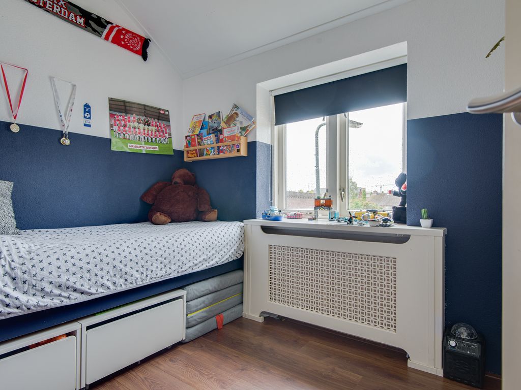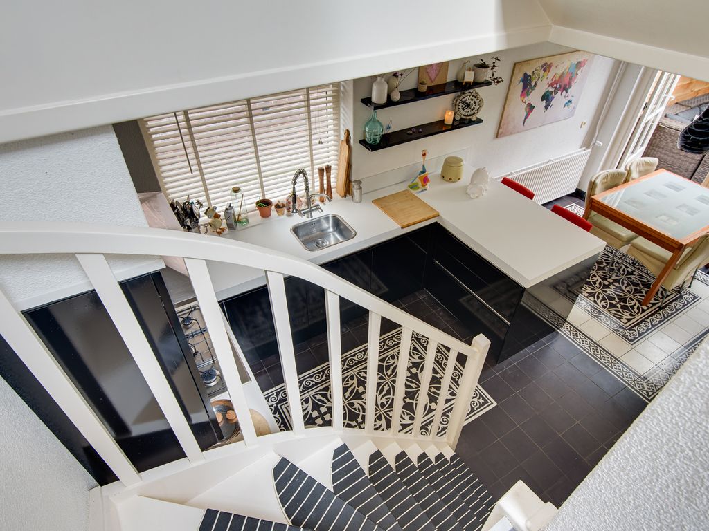 Op de deze verdieping vind je ook een royale slaapkamer. Vanaf de overloop kun je via de trap naar beneden, richting de begane grond.