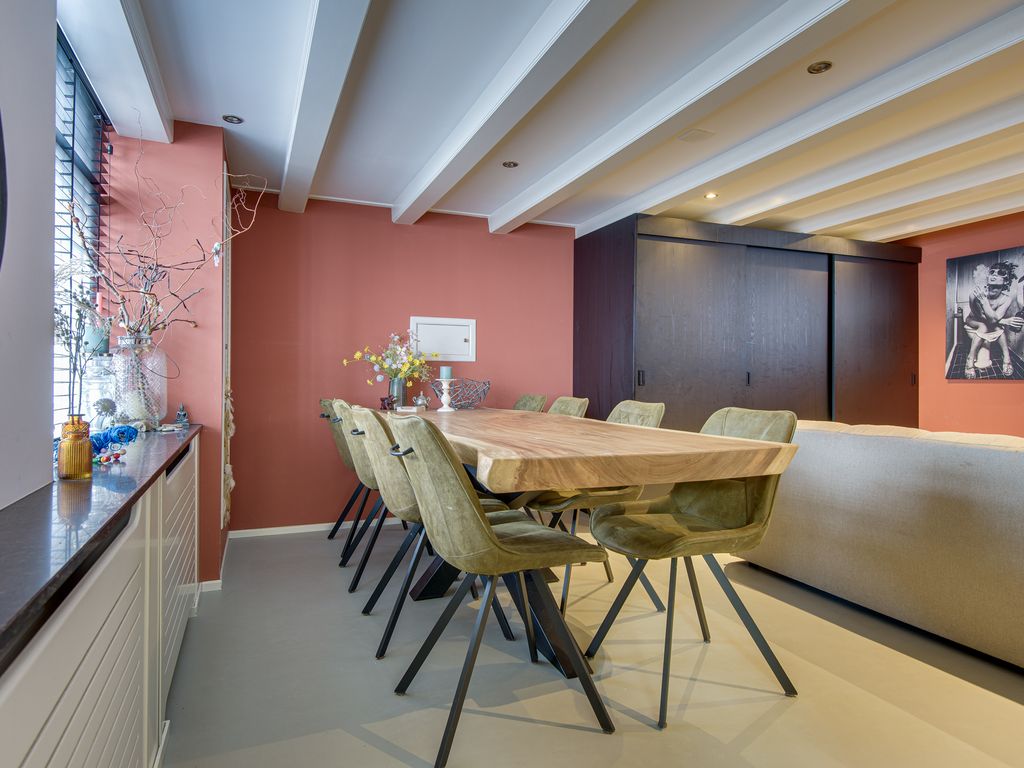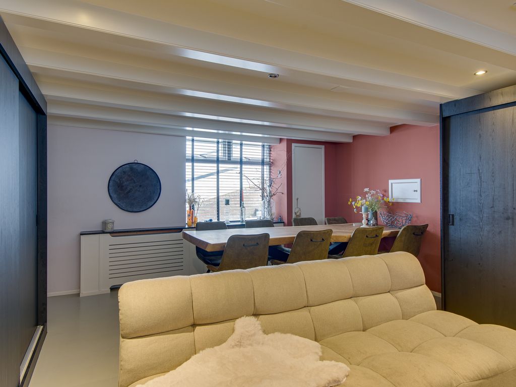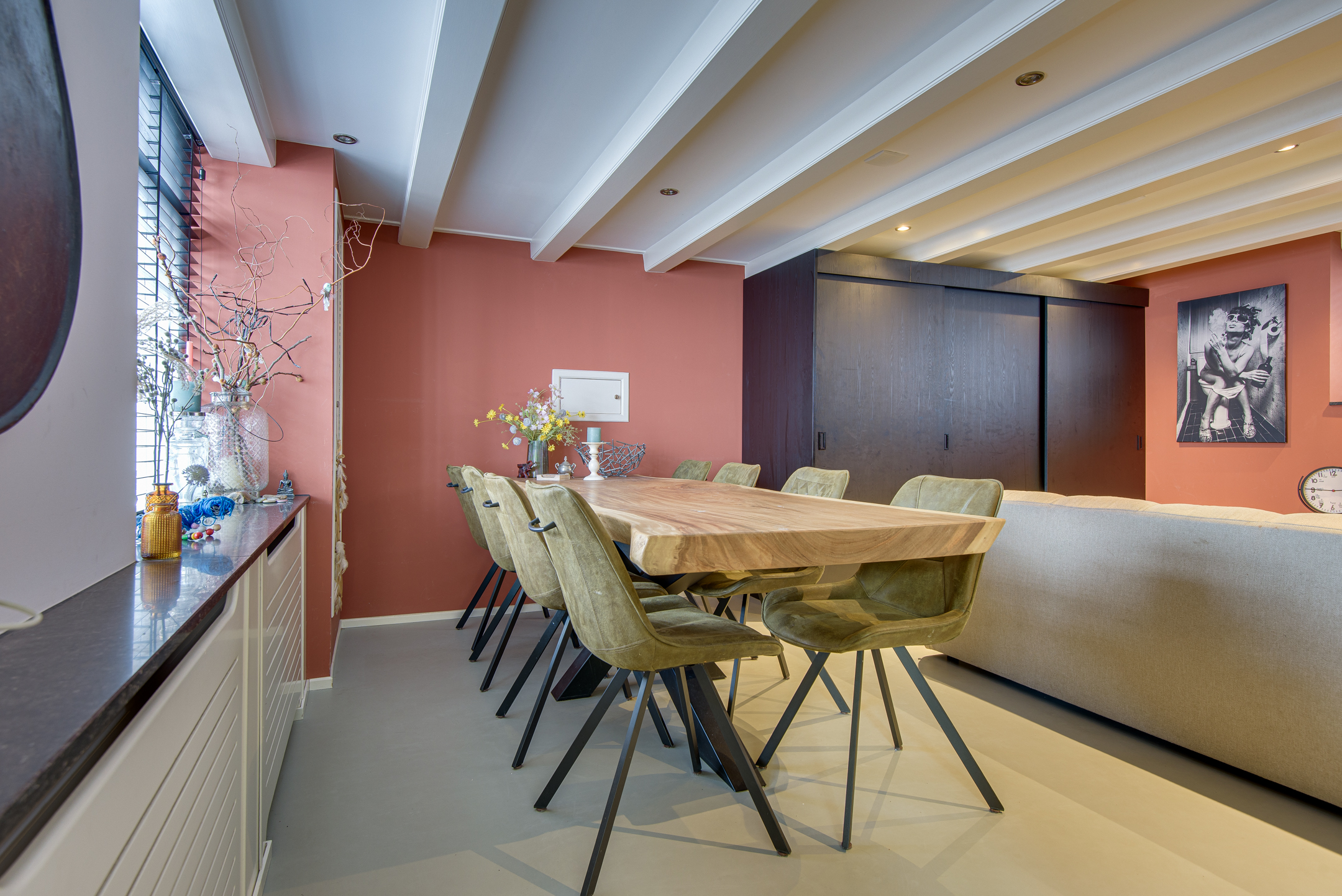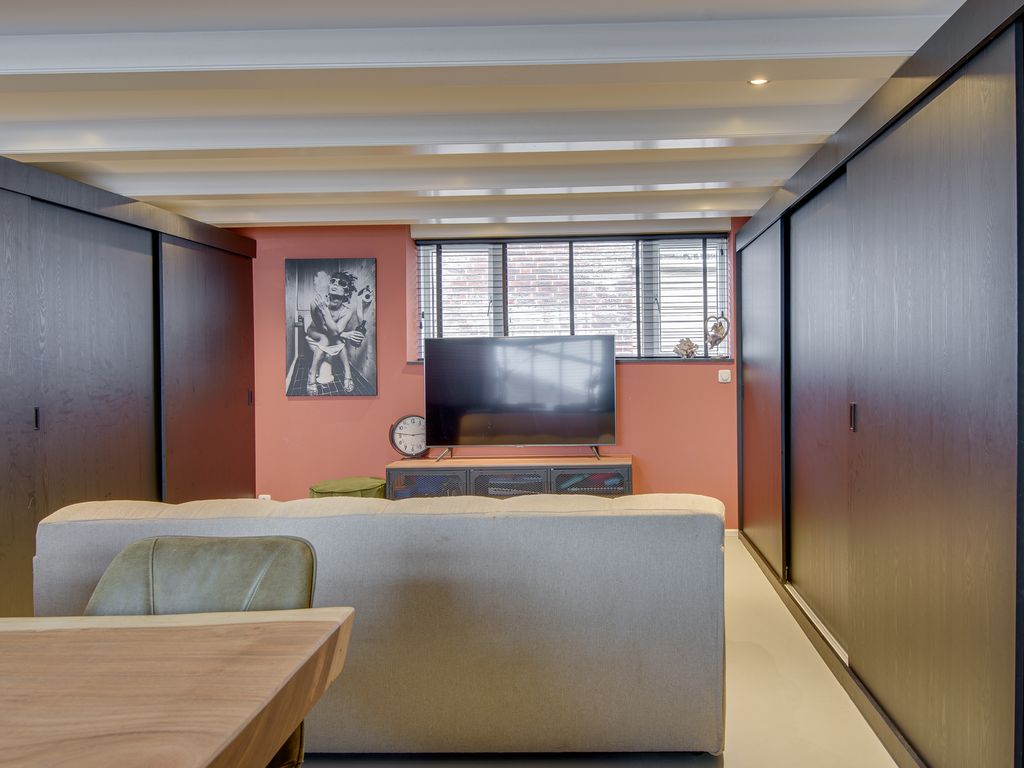 De tweede woonkamer is verrassend ruim – ideaal voor een eettafel én zithoek. Eventueel kan deze ruimte ook dienst doen als zeer ruime 4e slaapkamer. Aan beide zijden vind je grote inbouwkasten, perfect om spullen netjes op te bergen. Ook de wasmachine en droger zijn hier slim weggewerkt.