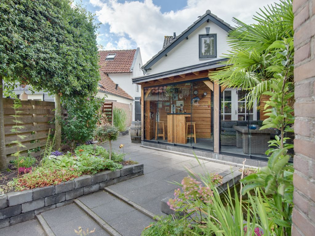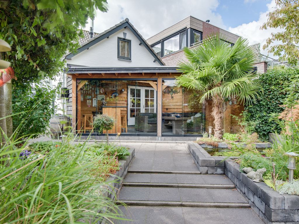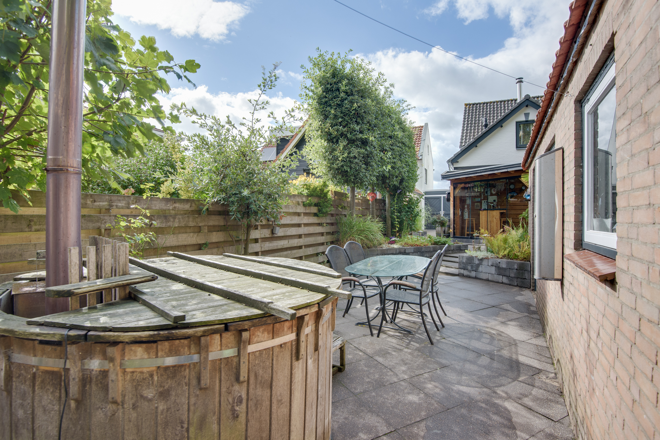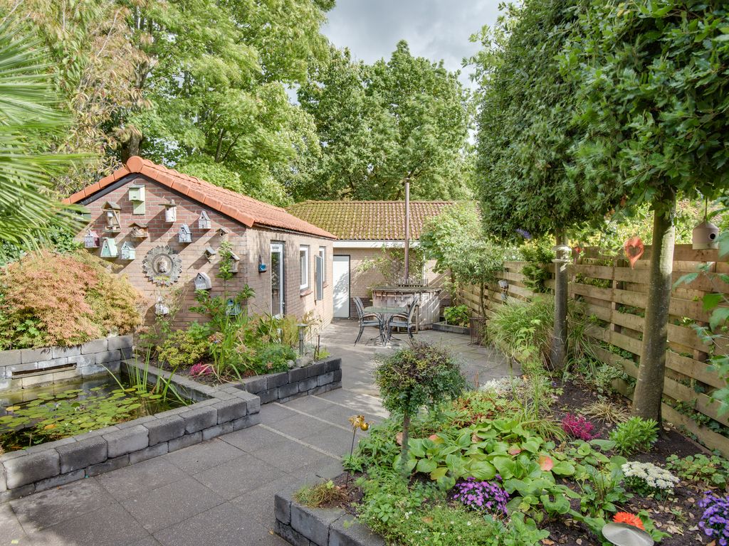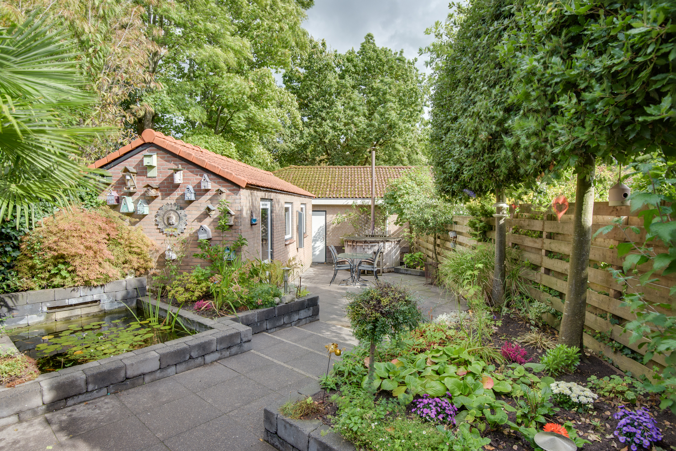 Achter het huis ligt een verzorgde tuin waar je volop kunt genieten. Er is een vijvertje, plantenbakken met groen, een zithoek, een houtopslag én als kers op de taart: een hottub! Hier kun je heerlijk ontspannen na een lange drukke dag. In de tuin staat ook een ruime schuur met inbouwkast en werkbank welke prima dienst kan doen als hobbyruimte.