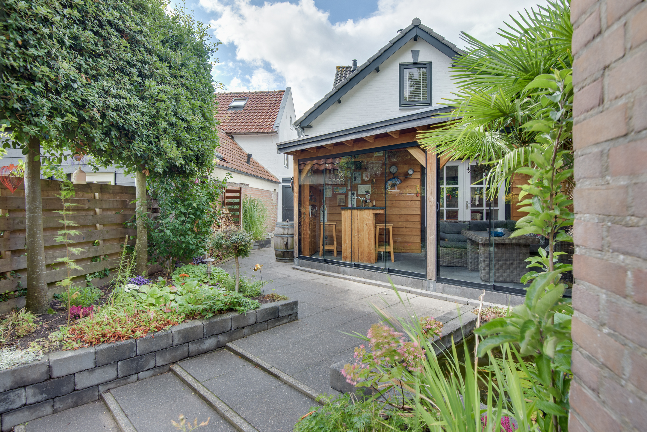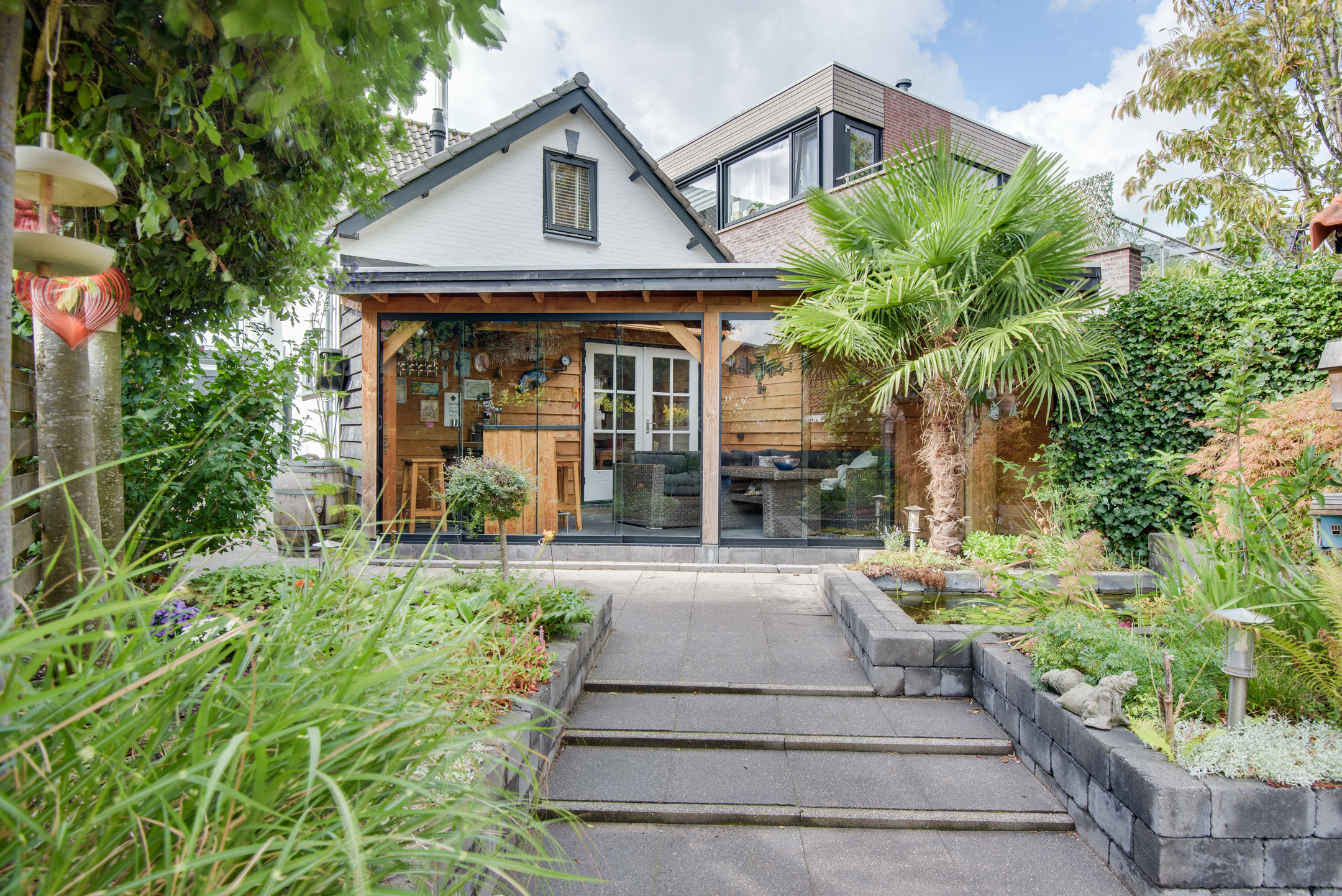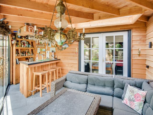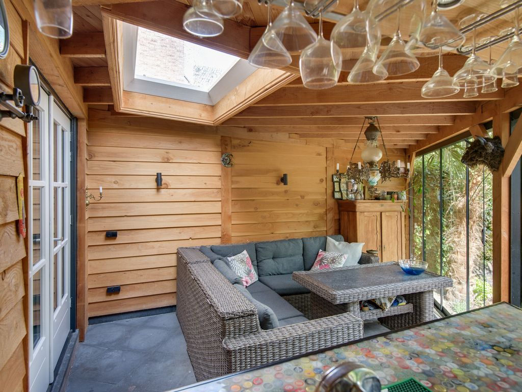 De serre is ingericht met een knusse zithoek en zelfs een bar. Een ideale plek voor gezellige avonden, zomer én winter. Op warme dagen schuif je de glazen deuren eenvoudig open en geniet je van het buitengevoel.