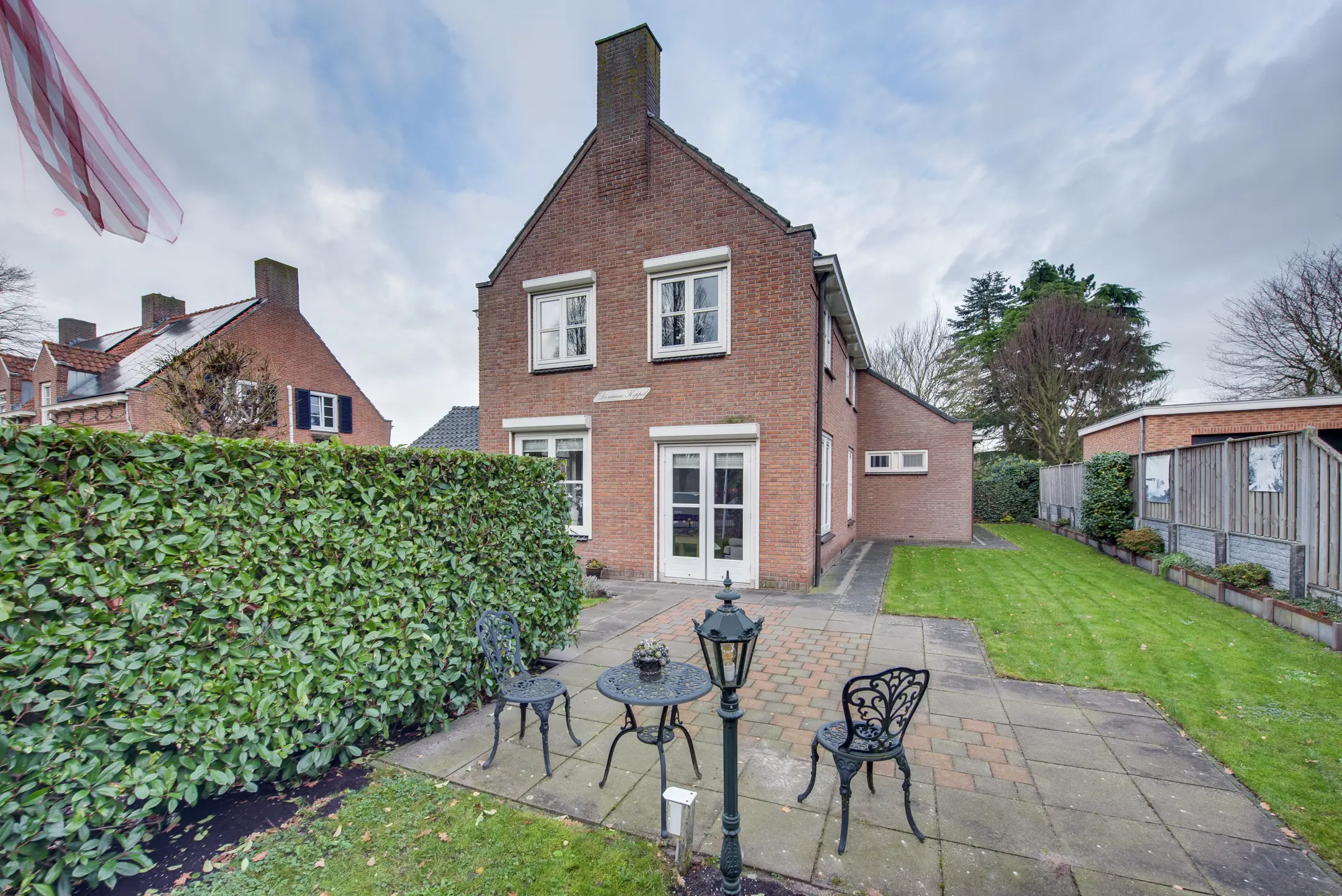 De woning springt direct in het oog dankzij haar fraaie uitstraling met openslaande deuren, ramen met roedeverdeling en een verzorgde voortuin met sierhekwerk. De verwarmde, aangebouwde garage is volledig uitgerust met water, elektra en een ruime zolder — ideaal voor hobby, opslag of werk aan huis.