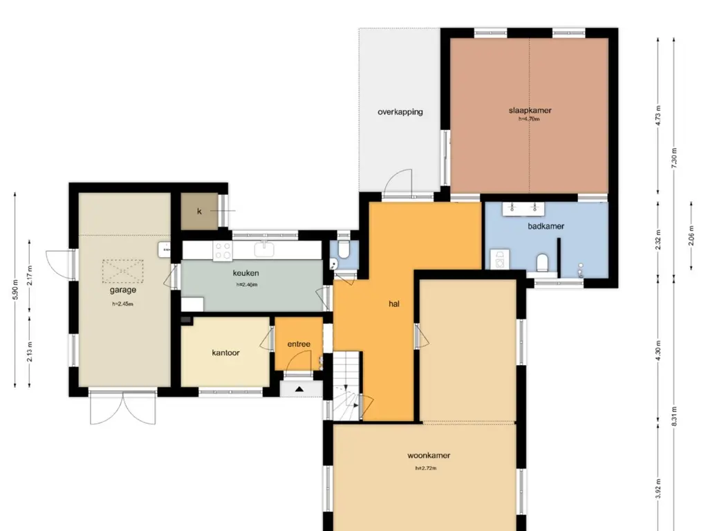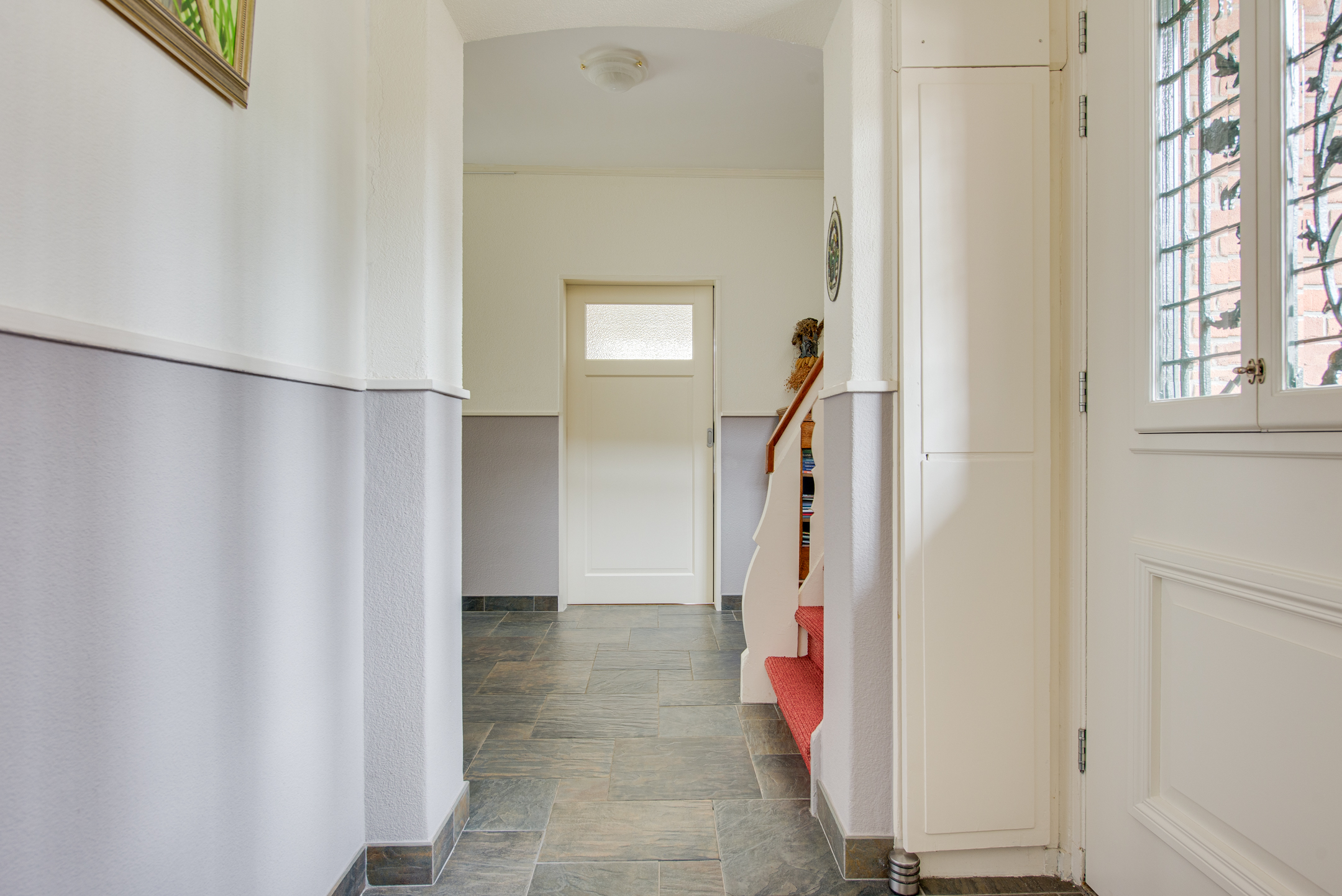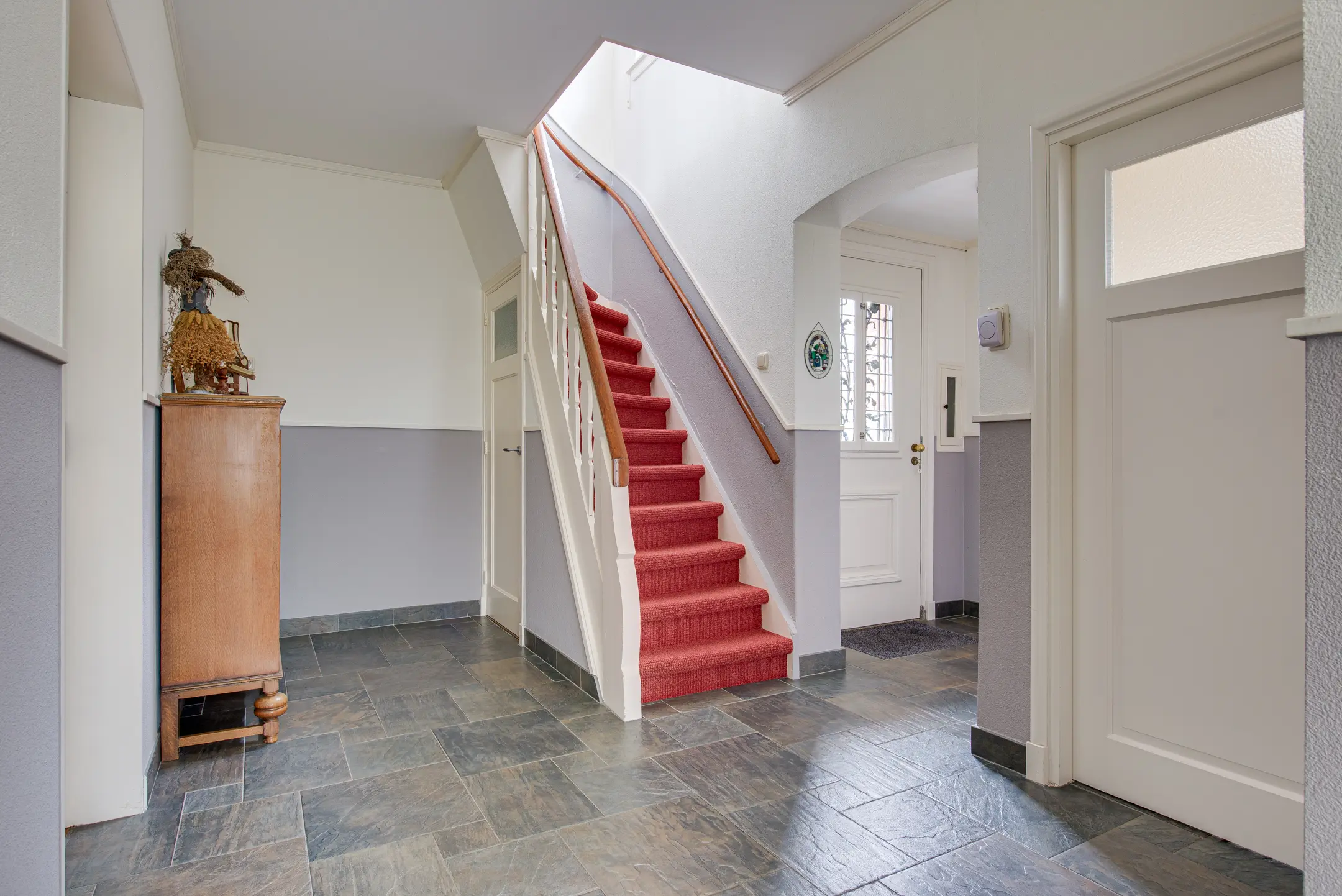 Via de overdekte entree kom je binnen in een lichte ontvangsthal, die doorloopt naar een ruime centrale hal. Aan de voorzijde bevindt zich een multifunctionele kamer, momenteel in gebruik als kantoor, maar ook zeer geschikt als slaapkamer of speelkamer.