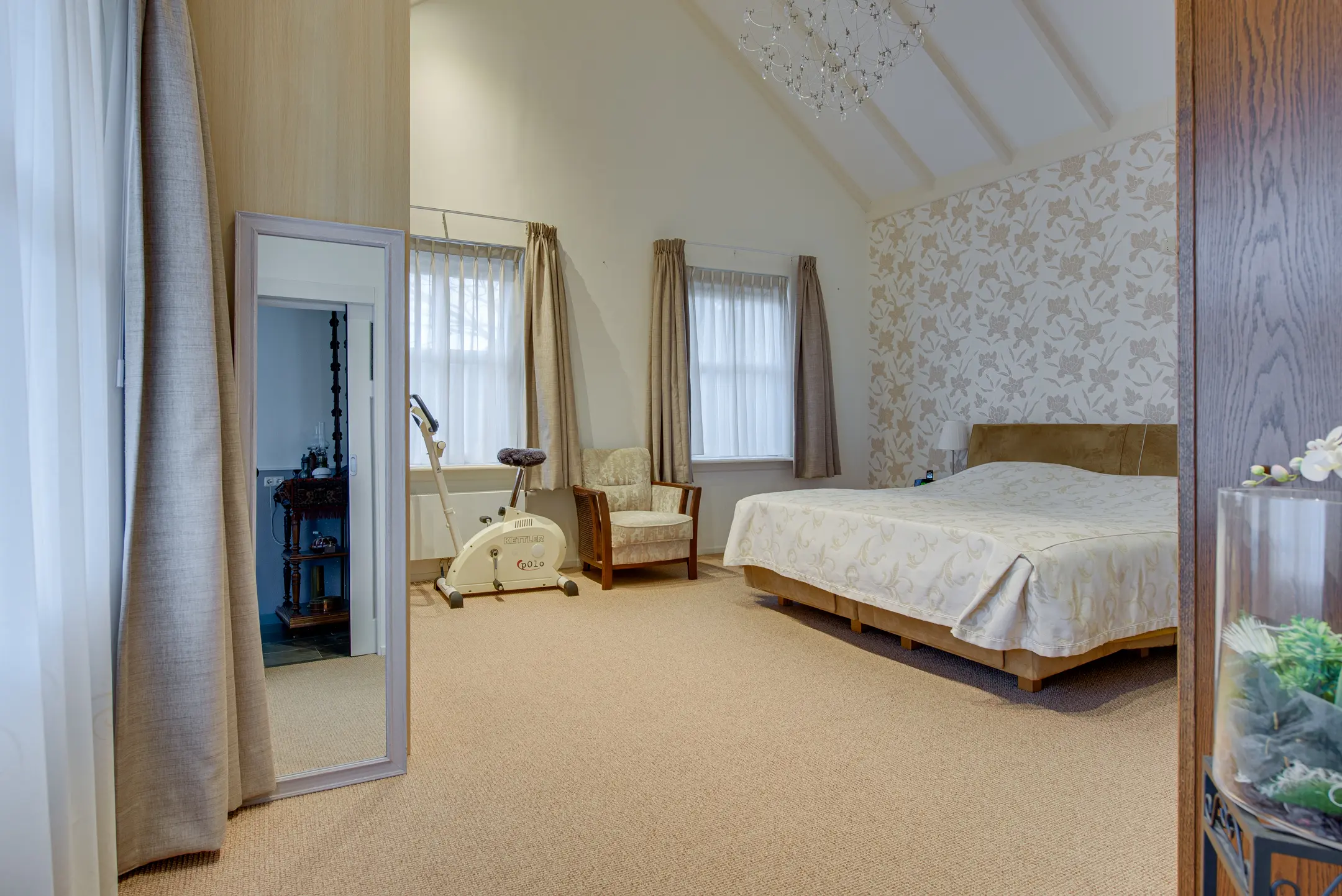 Via de vaste trap bereik je de overloop, die toegang biedt tot drie comfortabele en goed bemeten slaapkamers. Dankzij de fijne lichtinval zijn dit prettige ruimtes die zich uitstekend lenen als slaap-, kinder- of logeerkamer, maar ook als hobby- of werkruimte.