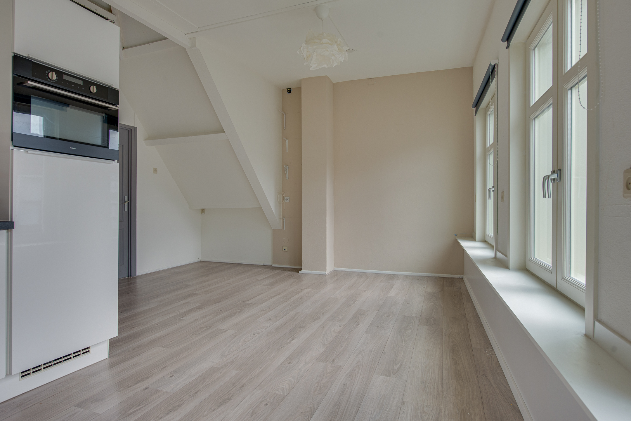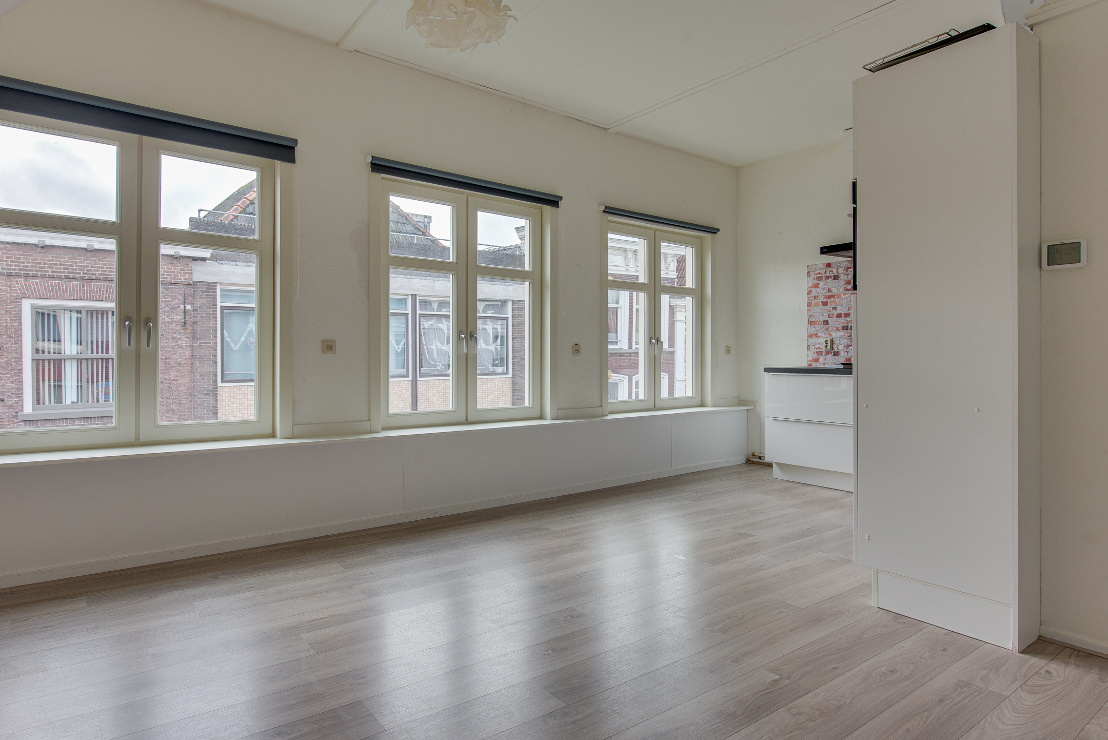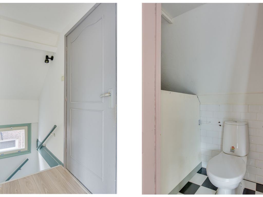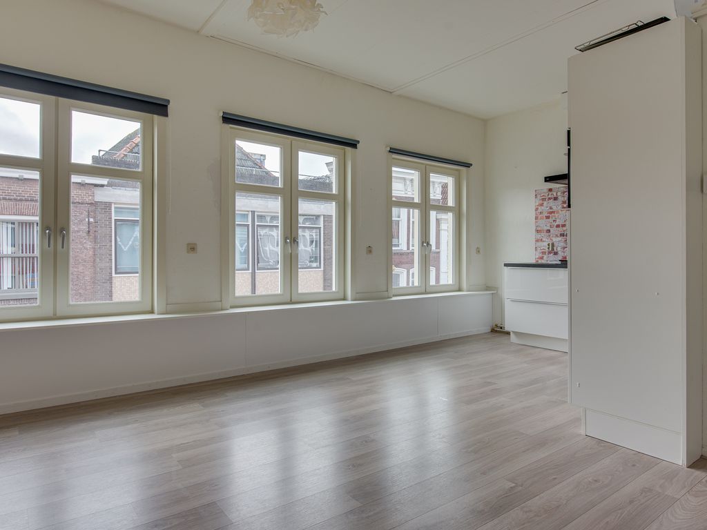 Je komt binnen via de entree aan de voorzijde van het pand. De trap brengt je naar de verdieping waar het appartement zich bevindt. In de hal vind je direct het toilet. De sfeervolle woonkamer heeft drie grote ramen aan de voorzijde, die een prachtig uitzicht bieden over de Westwagenstraat, de Gasthuisstraat en zelfs op de Gorcumse toren!