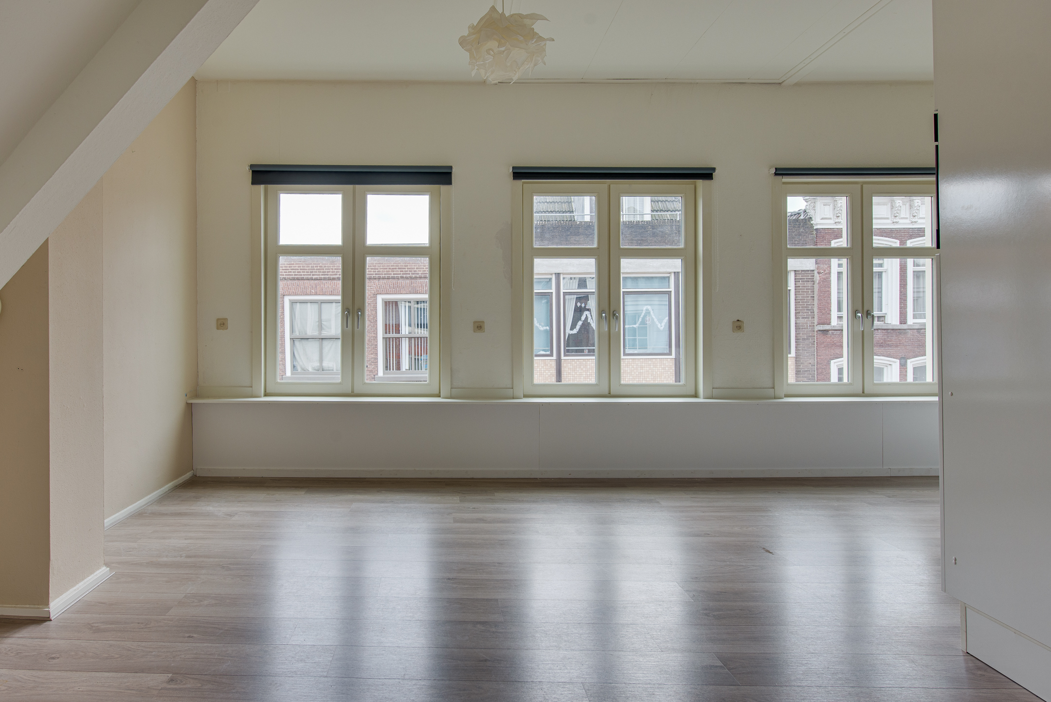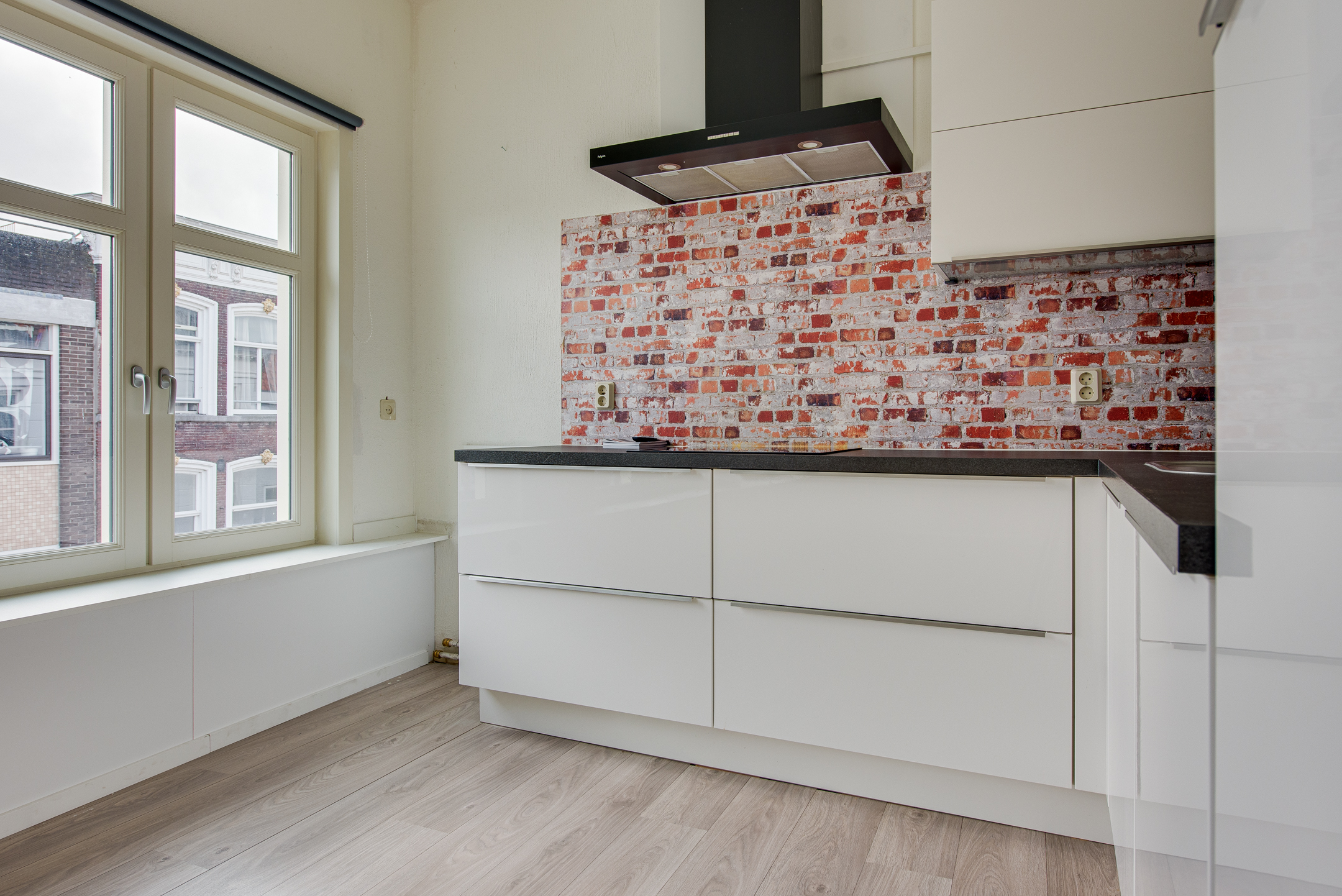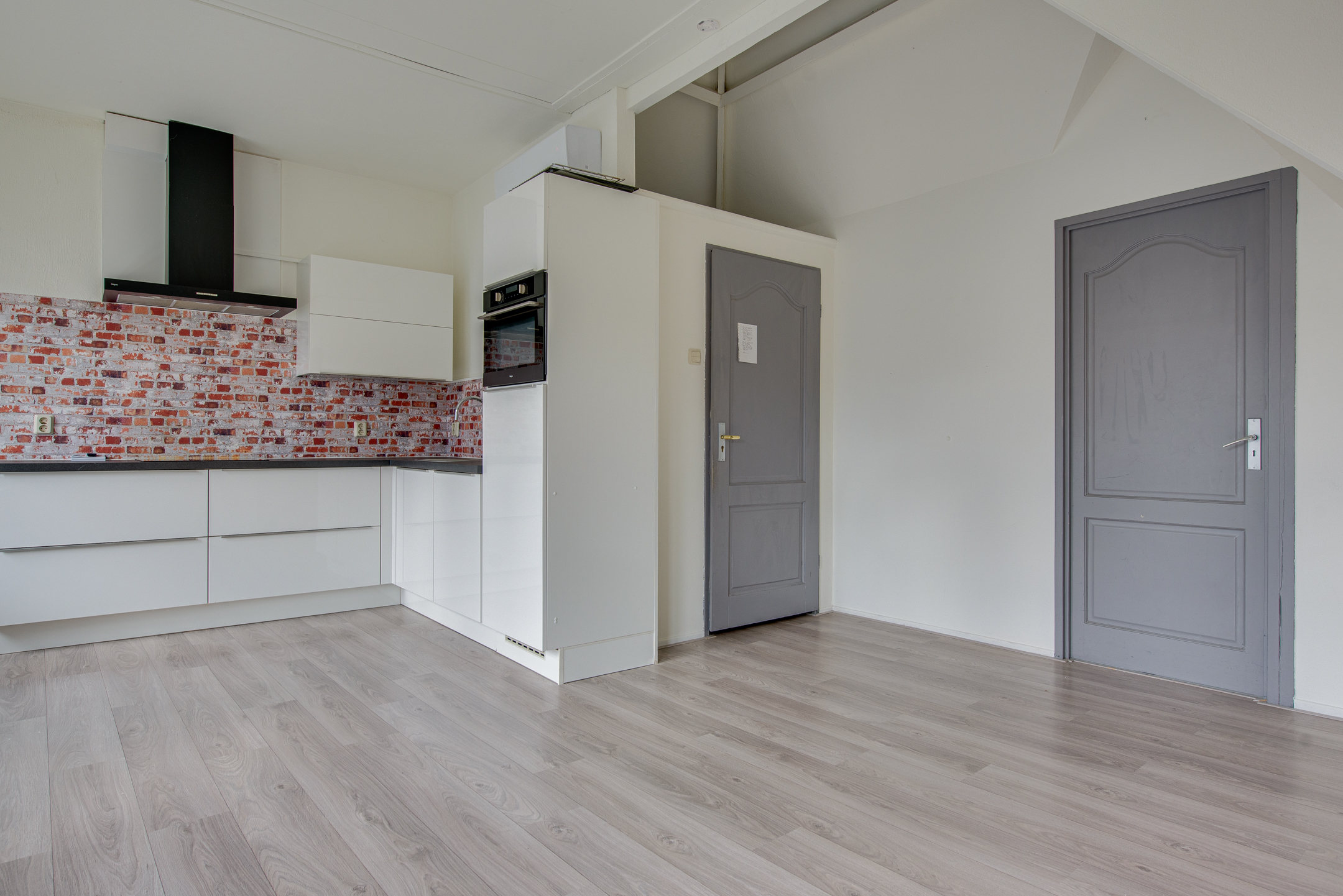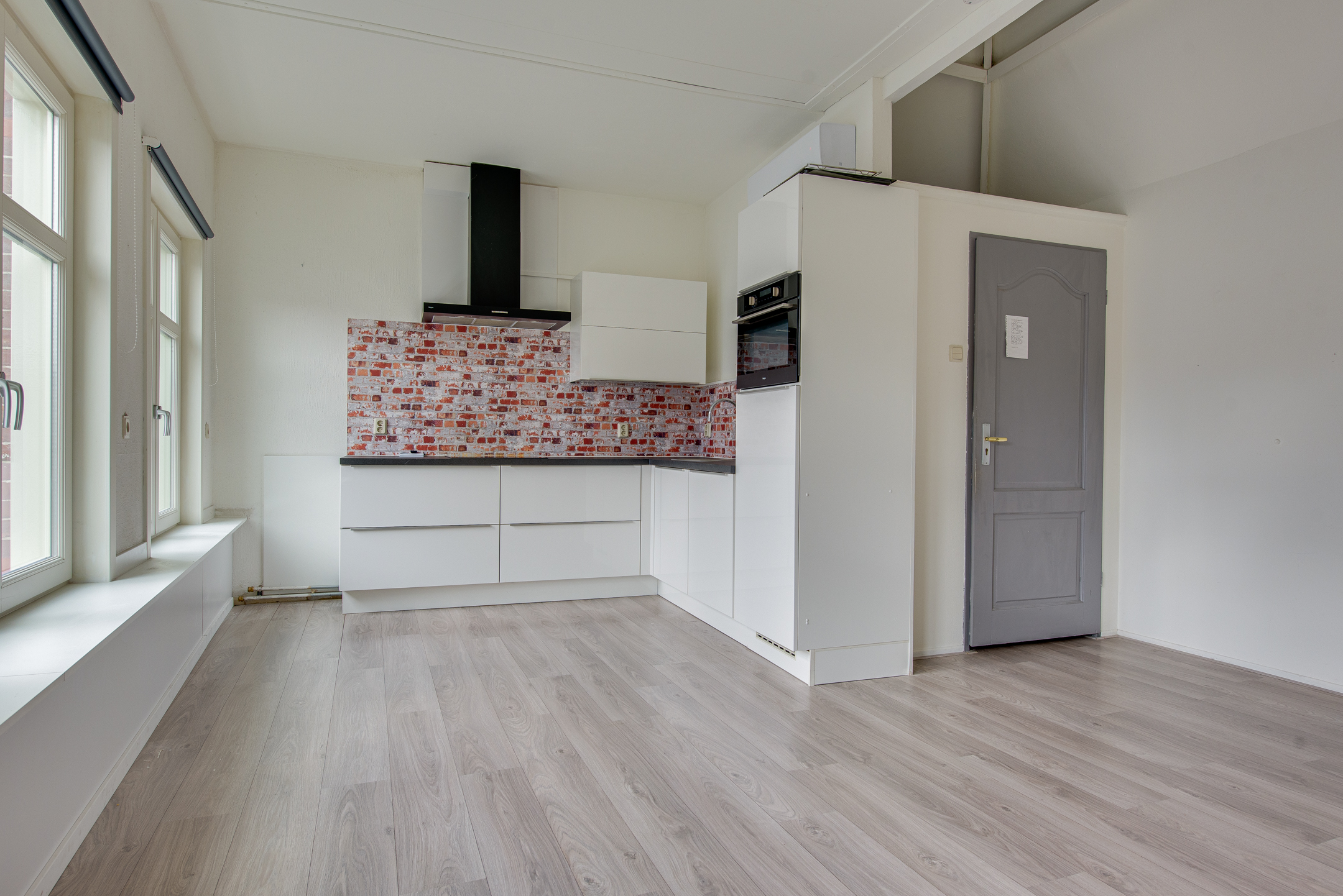 Je komt binnen via de entree aan de voorzijde van het pand. De trap brengt je naar de verdieping waar het appartement zich bevindt. In de hal vind je direct het toilet. De sfeervolle woonkamer heeft drie grote ramen aan de voorzijde, die een prachtig uitzicht bieden over de Westwagenstraat, de Gasthuisstraat en zelfs op de Gorcumse toren!