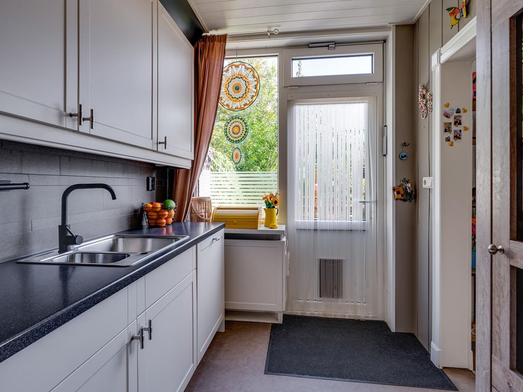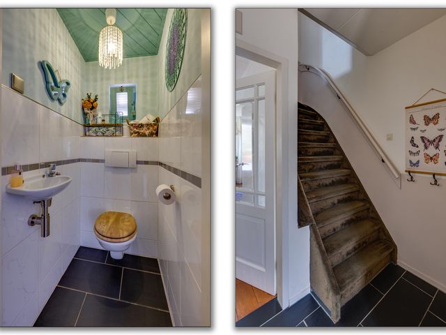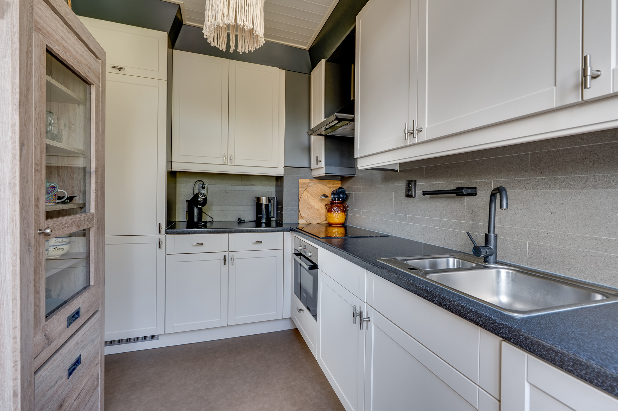 Je komt binnen in een ruime hal met toilet, meterkast en trapopgang. De woonkamer is heerlijk licht dankzij het grote raam aan de voorzijde en wordt extra gezellig gemaakt door de pelletkachel. In de praktische trapkast is een waterontharder geplaatst. Aan de achterzijde vind je de eetkamer en een halfopen keuken in hoekopstelling. Deze is compleet uitgerust met o.a. een inductiekookplaat, combi-oven, vaatwasser, koel-vriescombi en een handige close-in boiler. Vanuit de keuken loop je zo de tuin in!