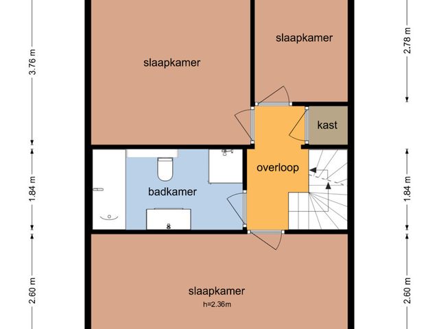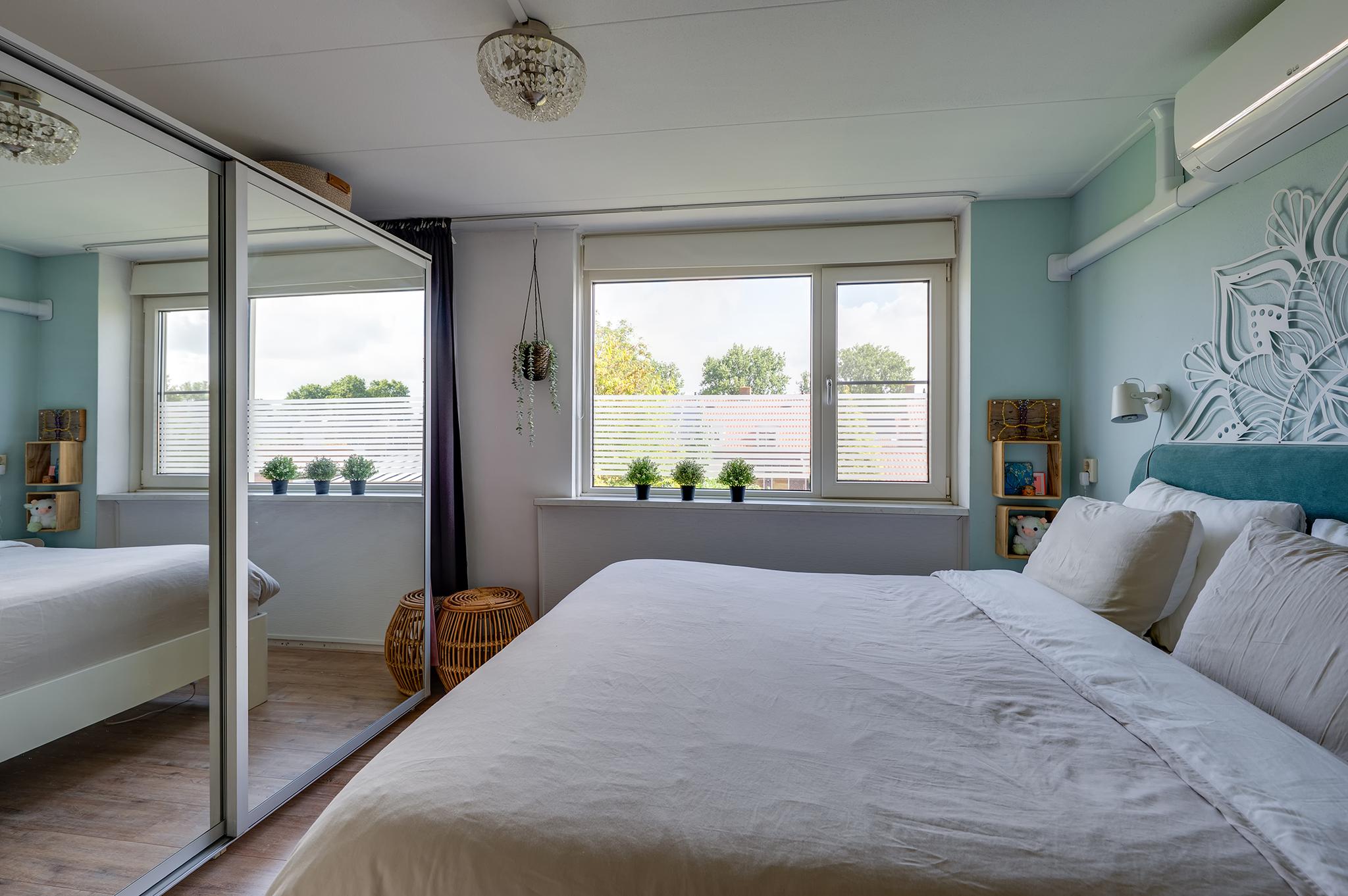 Op deze verdieping zijn drie fijne slaapkamers te vinden, waarvan twee met inverters die zorgen voor verkoeling in de zomer én warmte in de winter. De ramen van de slaapkamer aan de voorzijde zijn voorzien van rolluiken. De badkamer is van alle gemakken voorzien: een ligbad, aparte douche, toilet en wastafelmeubel. Leuk detail is de instelbare veelkleurige verlichting in de badkamer!