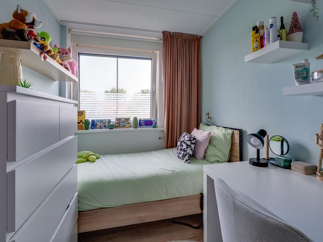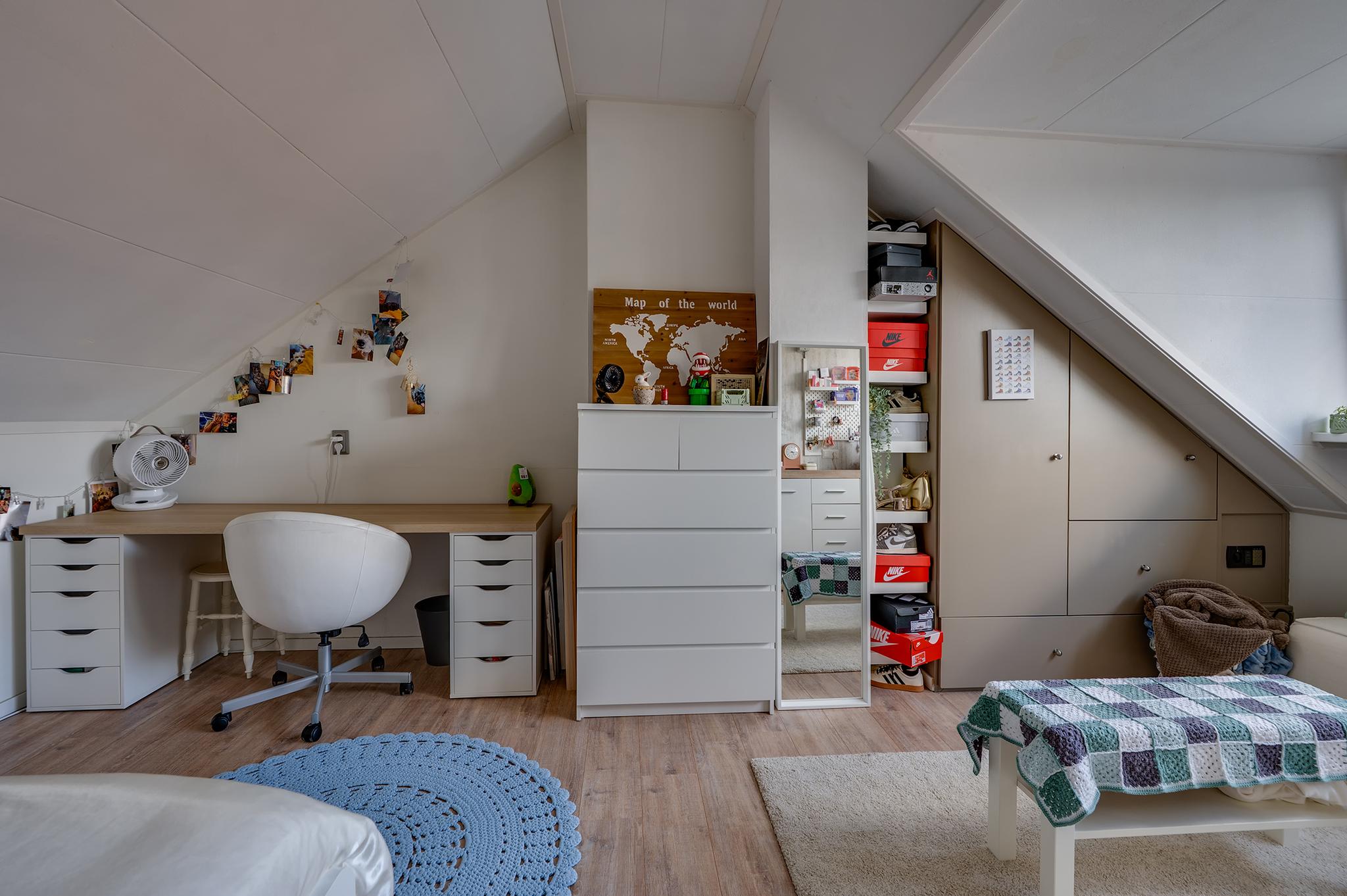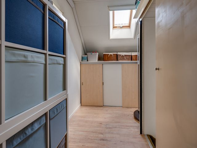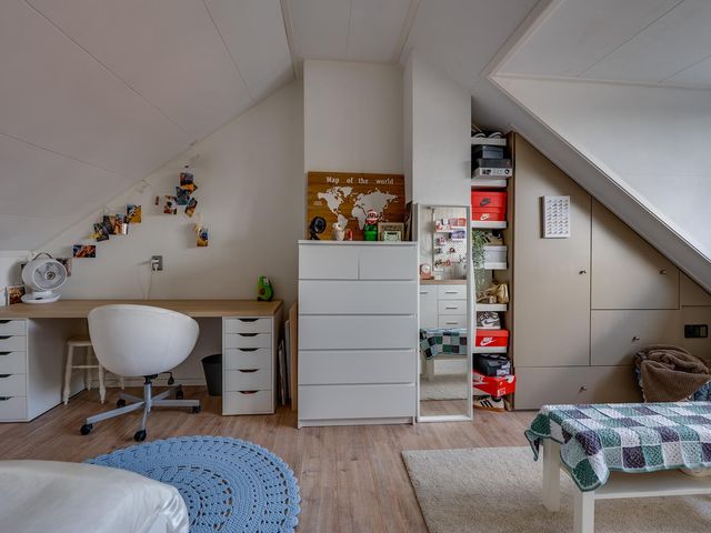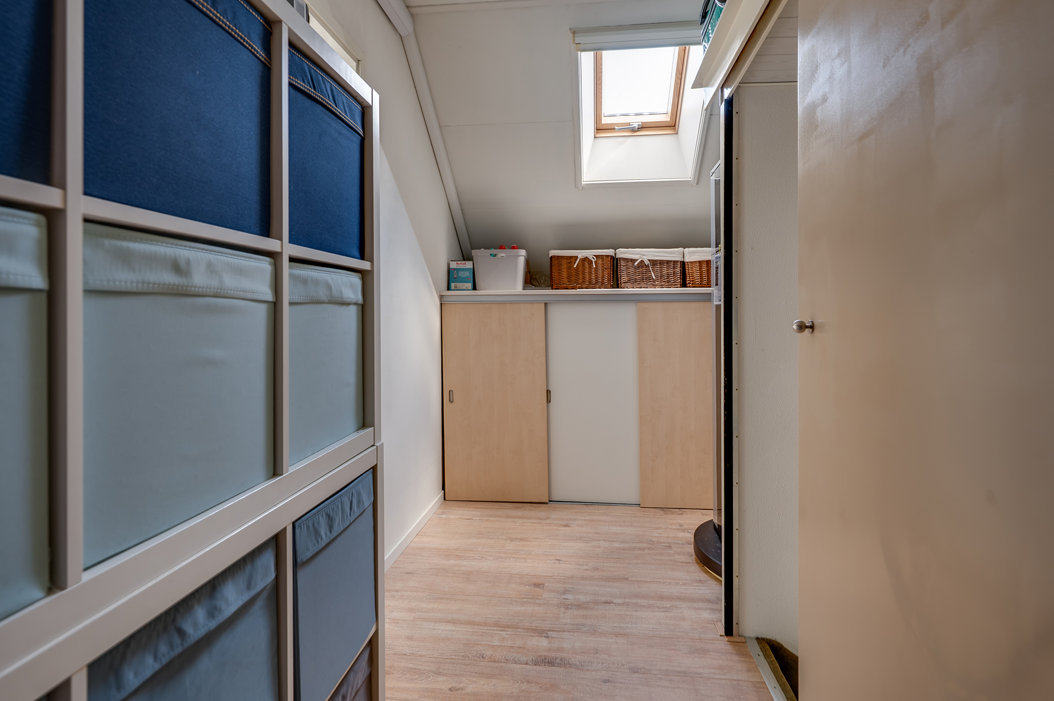 Op zolder vind je een ruime voorzolder met veel bergruimte en een afgesloten kast met de wasmachineopstelling. De vierde slaapkamer is royaal en dankzij de dakkapel (met ingebouwd rolluik) is er veel lichtinval.