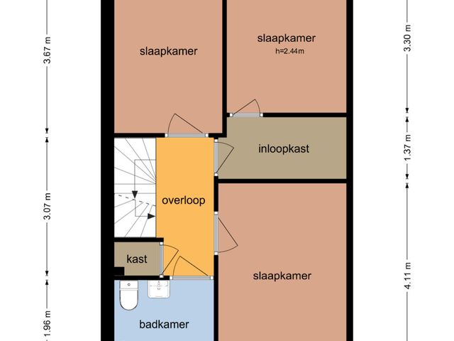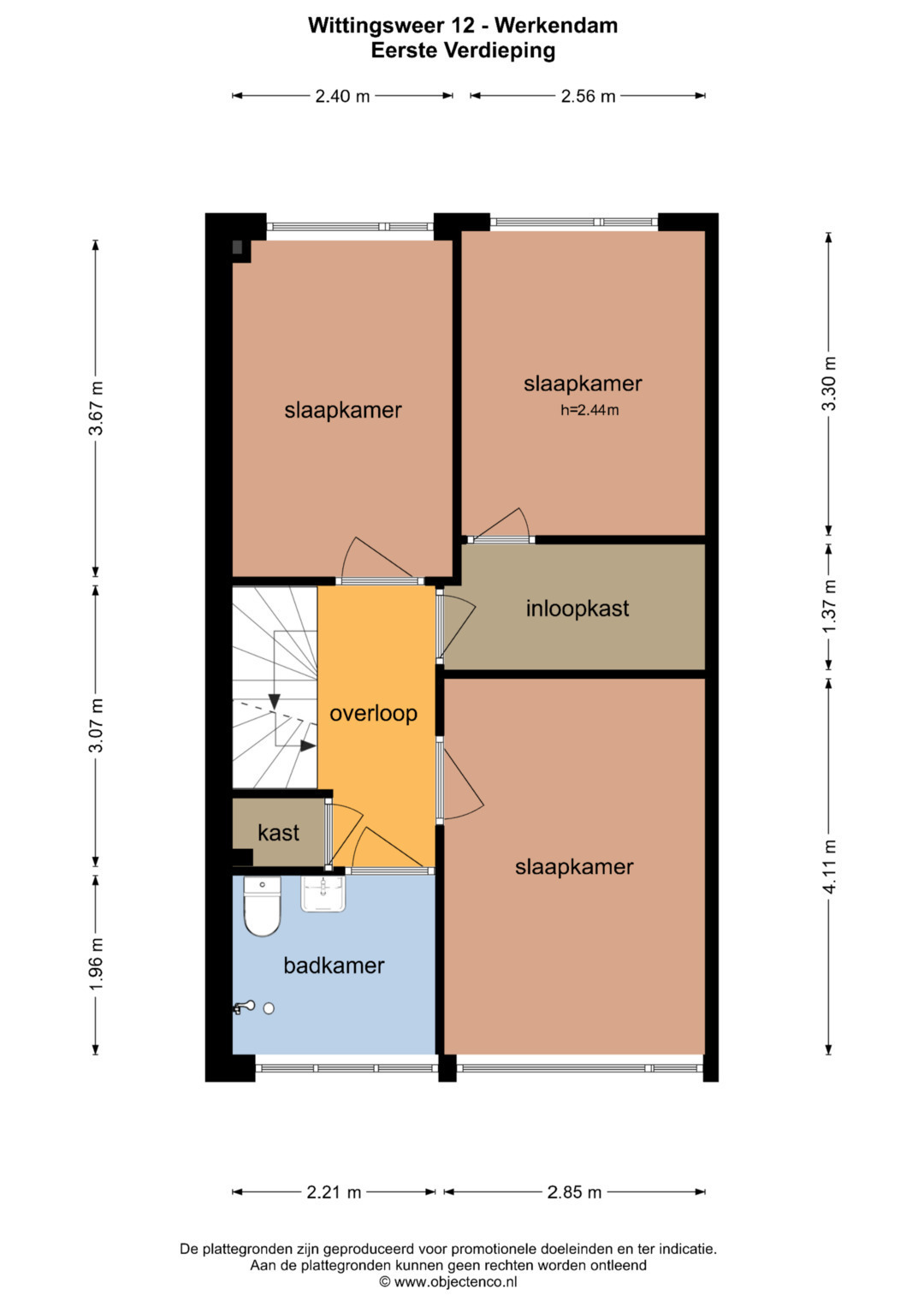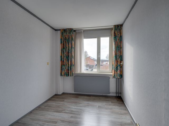 Op de eerste verdieping zijn drie slaapkamers, de badkamer en de overloop met vaste kast. Ook zie je op de overloop de vaste trap naar de tweede verdieping en op bijna de hele verdieping ligt een laminaatvloer. Slaapkamer 1 is voorzien van een laminaatvloer en kunststof kozijnen met dubbelglas en een rolluik. Slaapkamer 2 is voorzien van zeil, een aparte kleedkamer met laminaatvloer en kunststof kozijnen met dubbel glas en een rolluik. Slaapkamer 3 is voorzien van een laminaatvloer en houten kozijnen met dubbel glas. De geheel betegelde badkamer is voorzien van een inloop douche, staand 2e toilet, wastafel en houten kozijnen met dubbel glas.